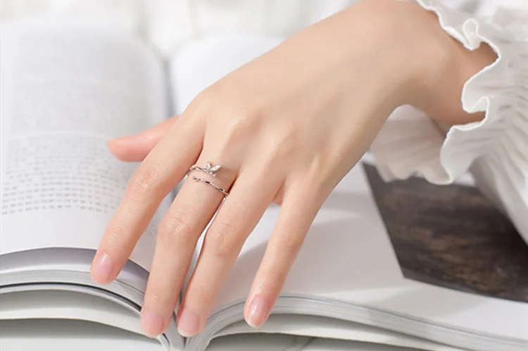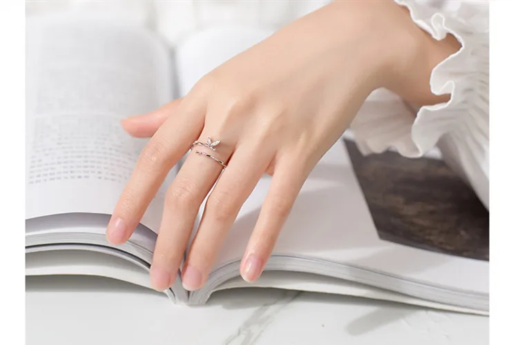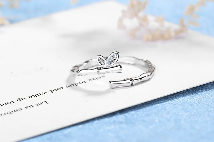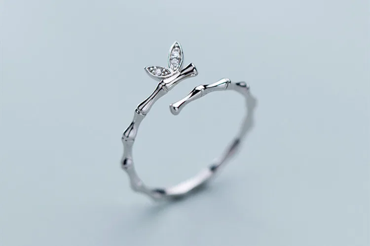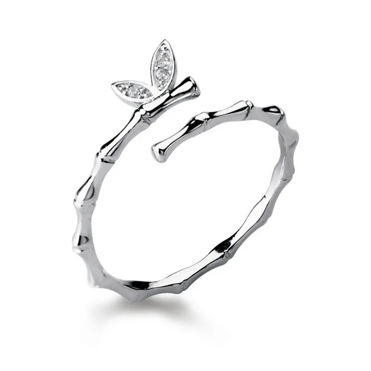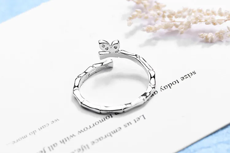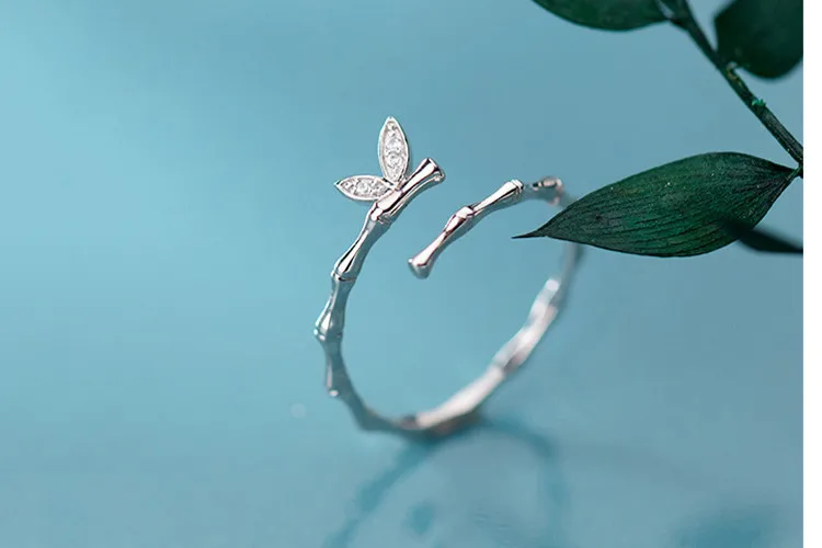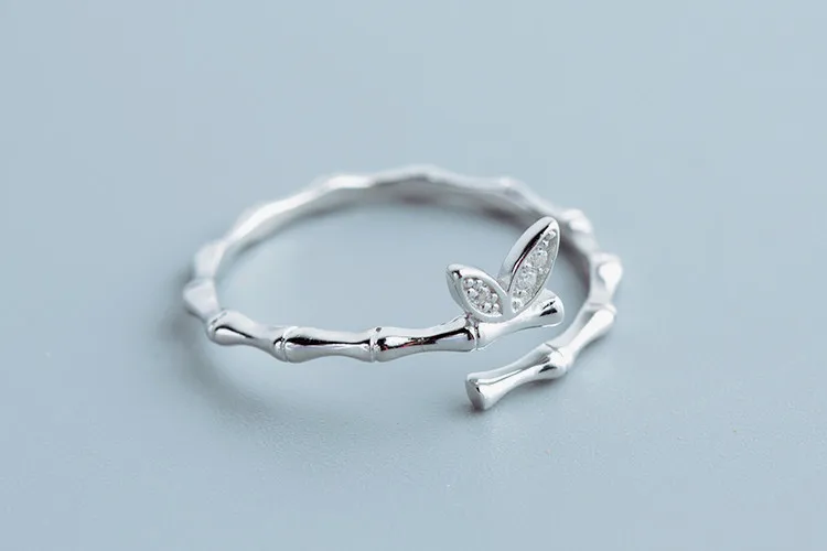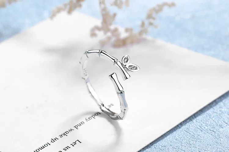 Victoria’s Vogue New Style Temperament Butterfly 925 Sterling Silver Jewelry Personality Fresh Bamboo Crystal Opening Rings