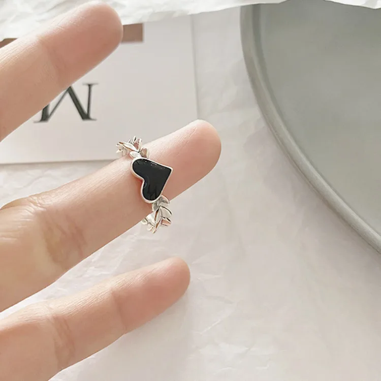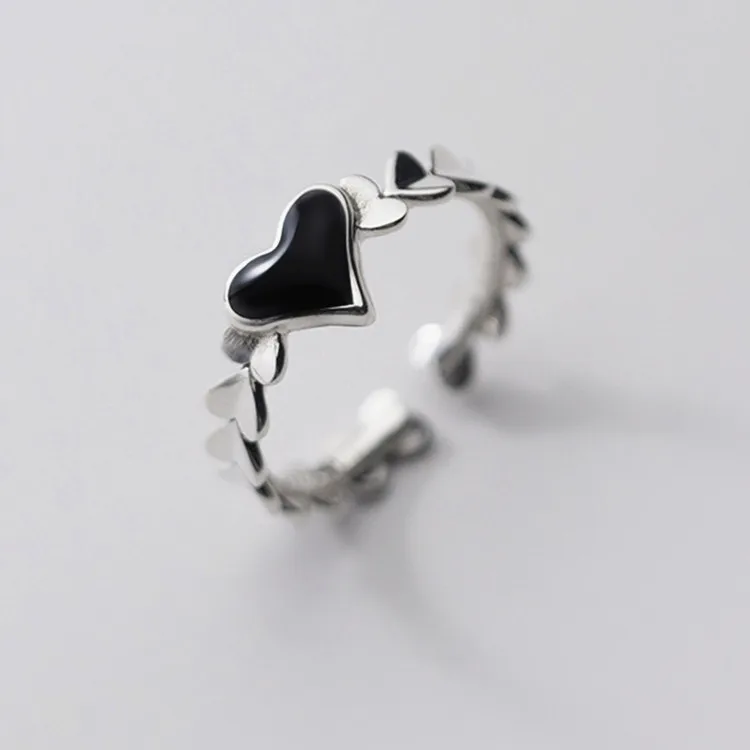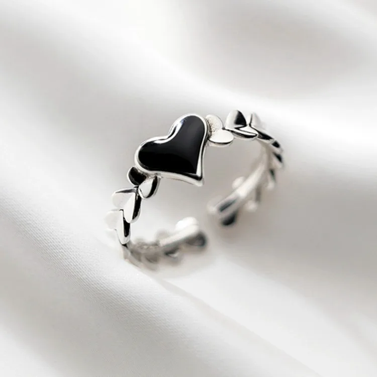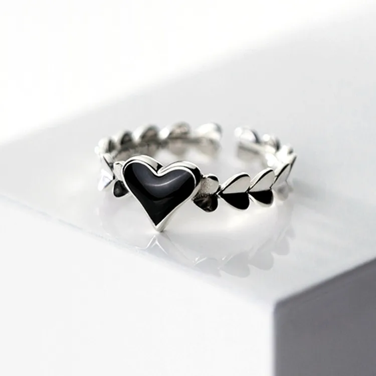 victoria’s vogue New Sweet Epoxy Black Love 925 Sterling Silver Jewelry Temperament Cute Heart Shape Fashion Opening Rings