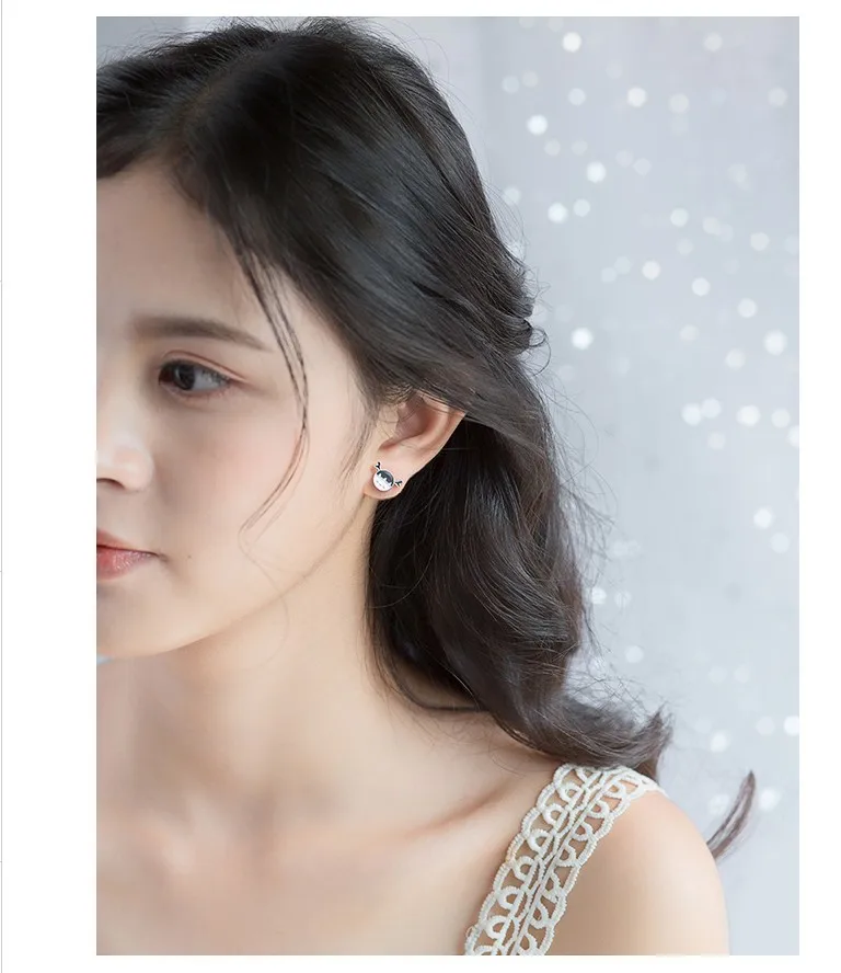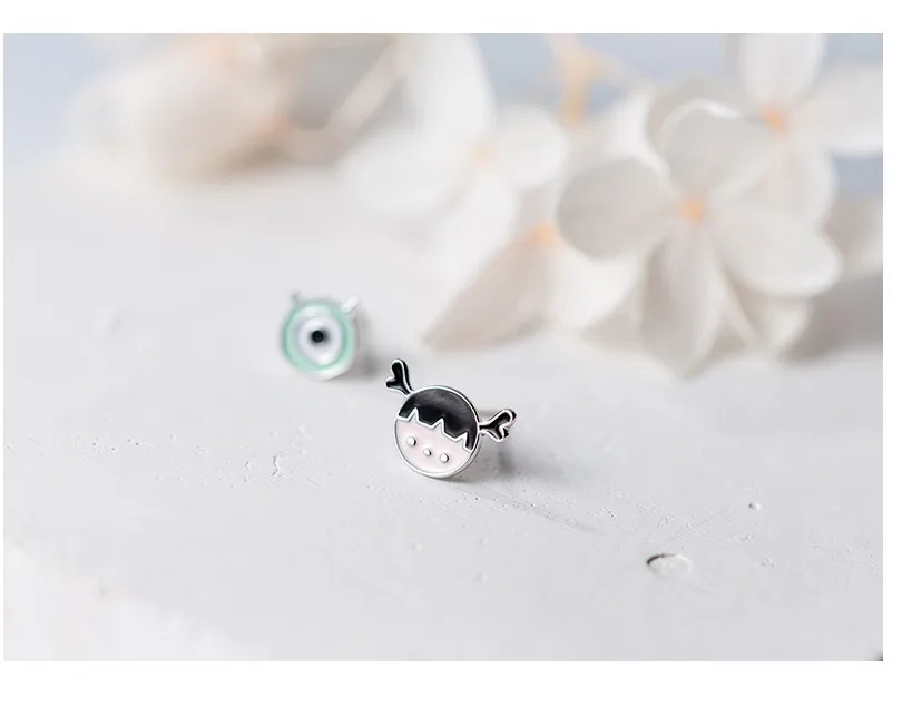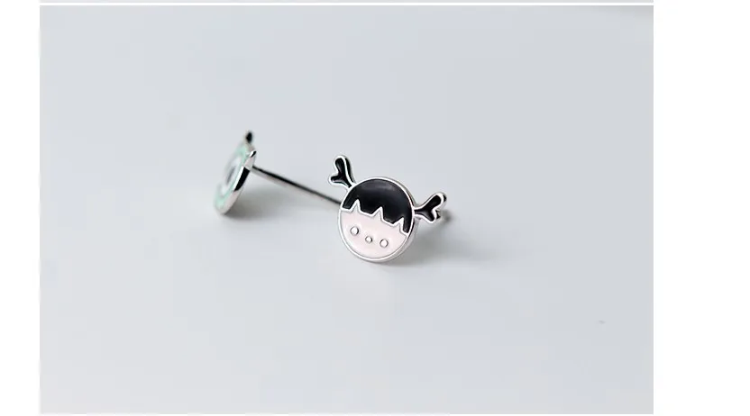 Victoria’s Vogue New Temperament Beautiful Fashion 925 Sterling Silver Not Allergic Asymmetric Cartoon Girl Round Face Women Stud Earrings