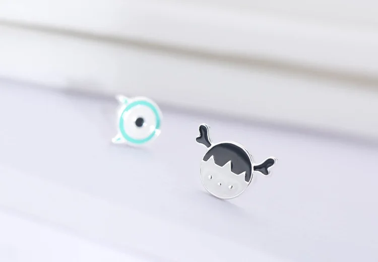 Victoria’s Vogue New Temperament Beautiful Fashion 925 Sterling Silver Not Allergic Asymmetric Cartoon Girl Round Face Women Stud Earrings