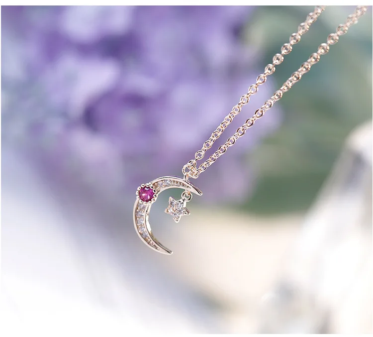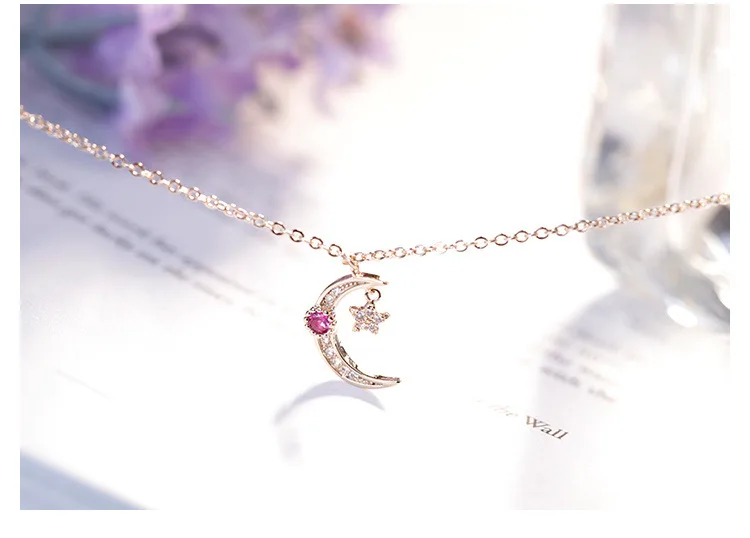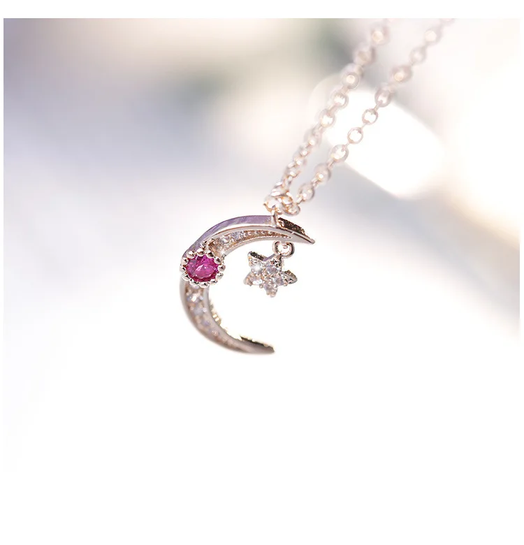 Victoria’s Vogue New Temperament Moon And Star 925 Sterling Silver Jewelry Not Allergic Rose Gold White And Pink Crystal Women Necklaces