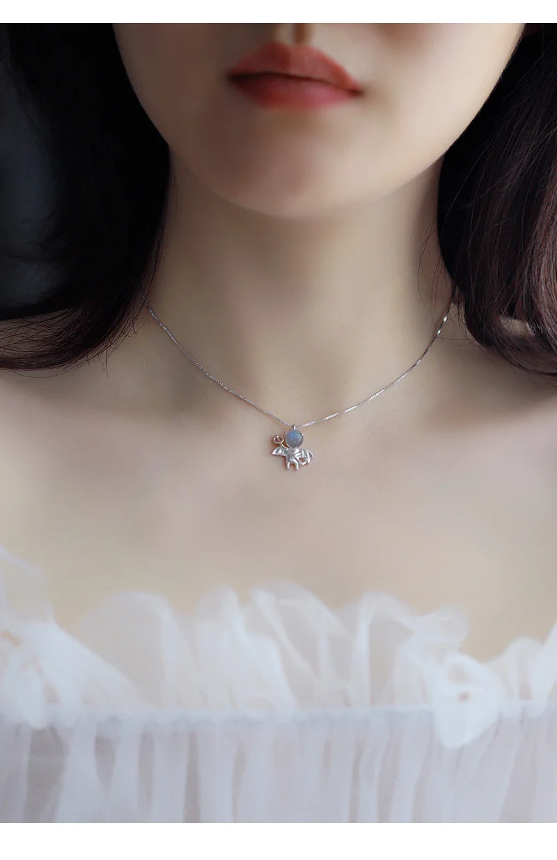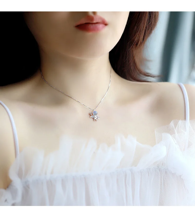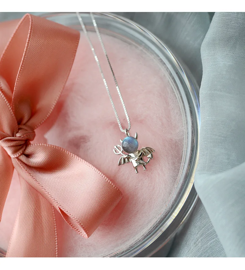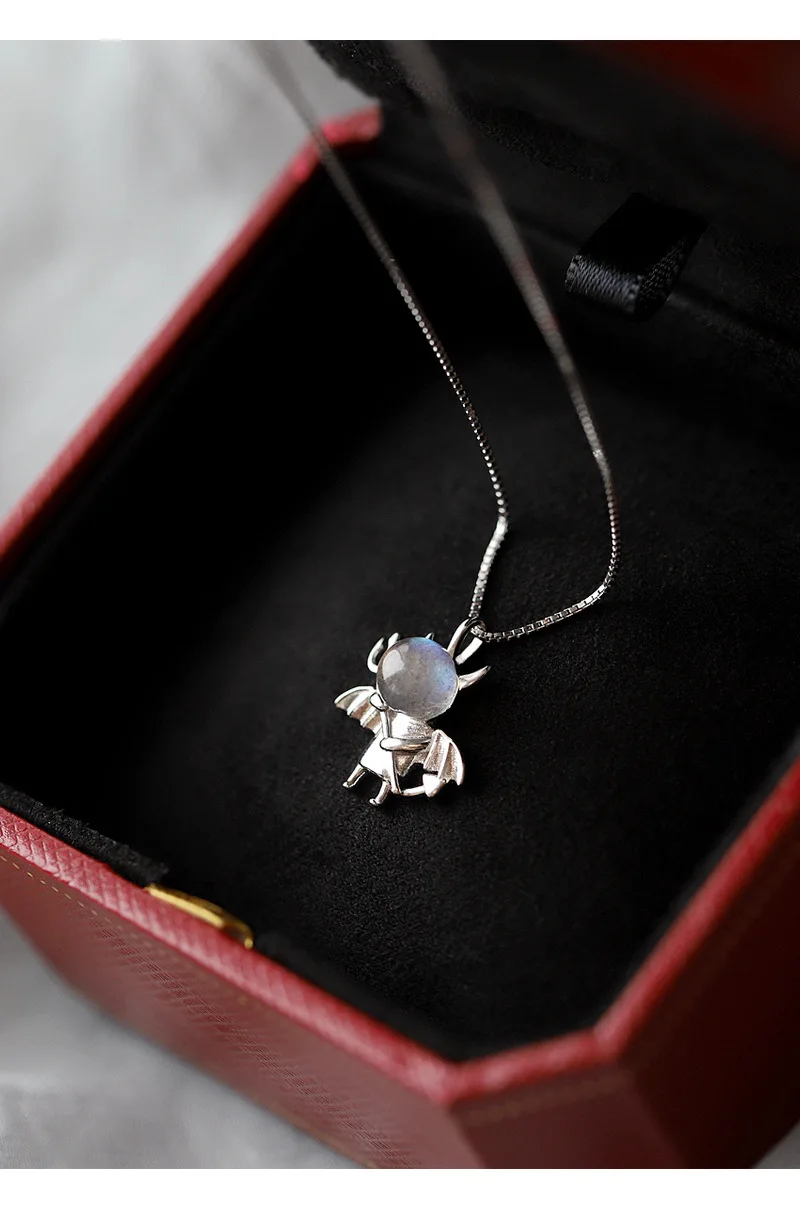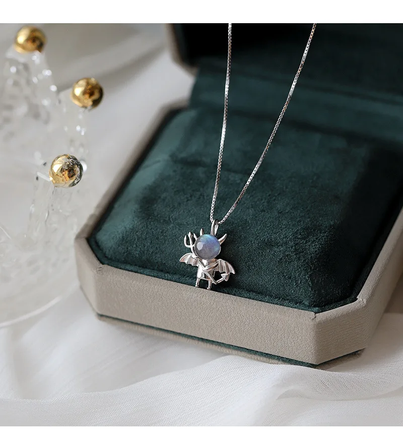 Victoria’s Vogue New Temperament Moonstone Small Devil 925 Sterling Silver Jewelry Female Cute Girl Fairy Crystal Clavicle Chain Necklaces