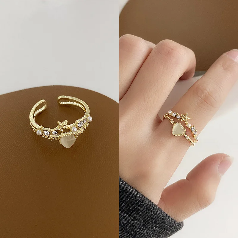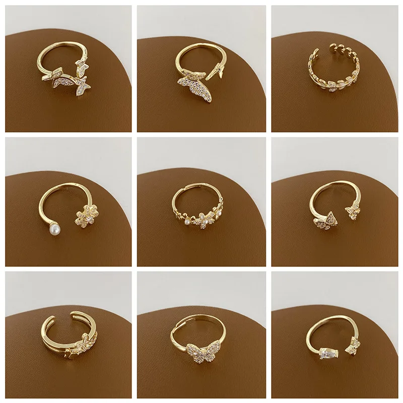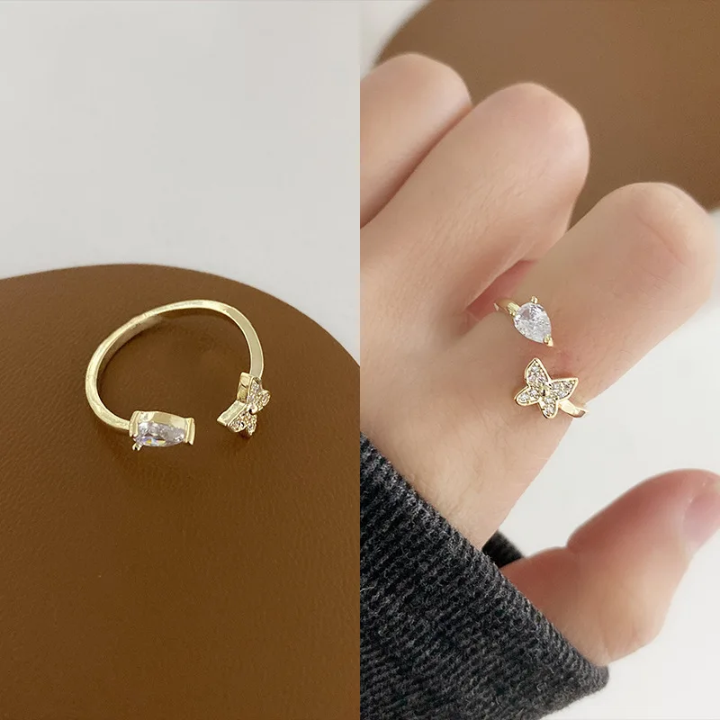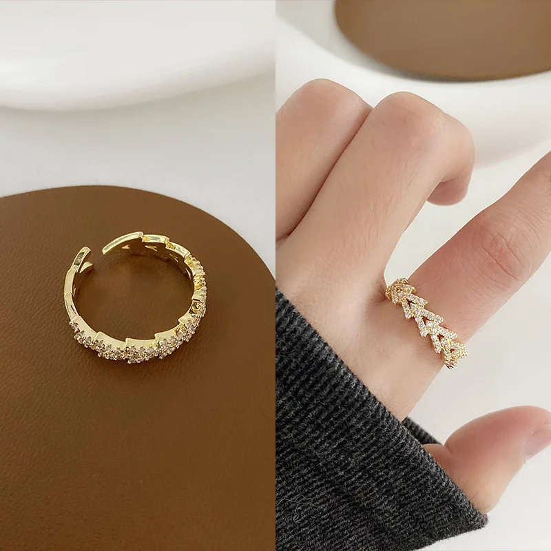 Victoria’s Vogue New Trendy Cubic Zirconia Vintage Link Chain Shape Rings Geometric Punk Butterfly Adjustable Open Ring For Women Fashion Jewelry
