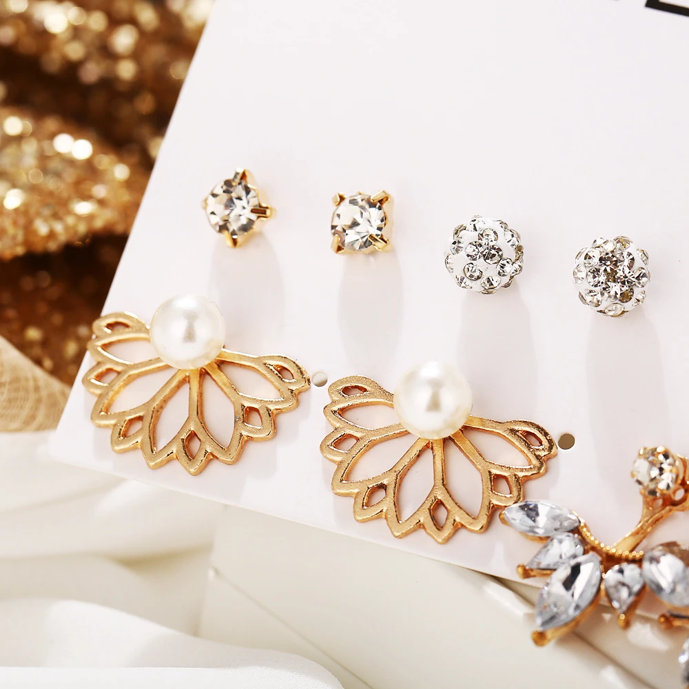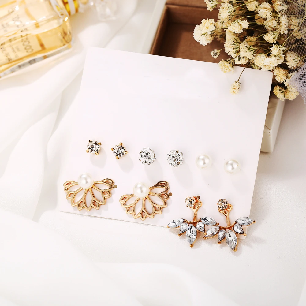 Victoria’s Vogue New Vintage Fashion Crystal Artificial Pearl Flower Shape Earrings For Women Boho Gold Earring Jewelry Gift