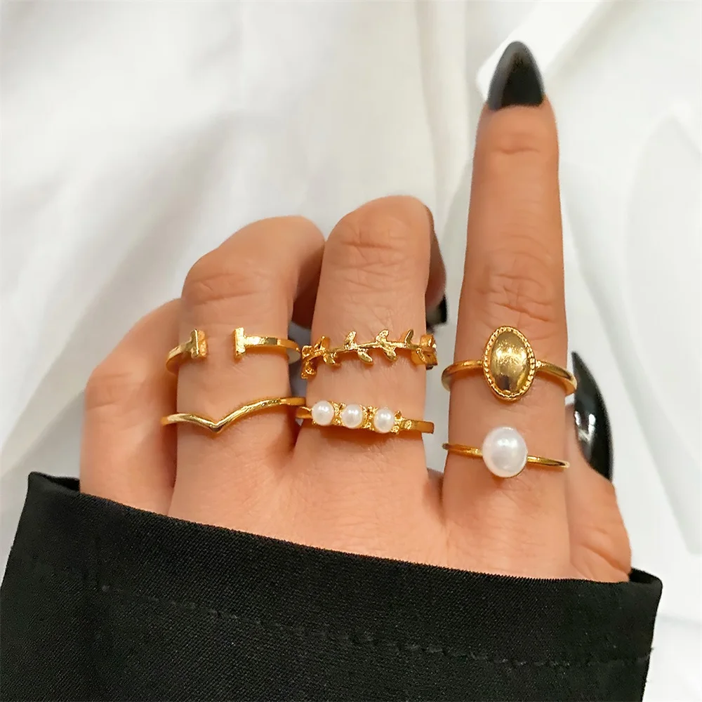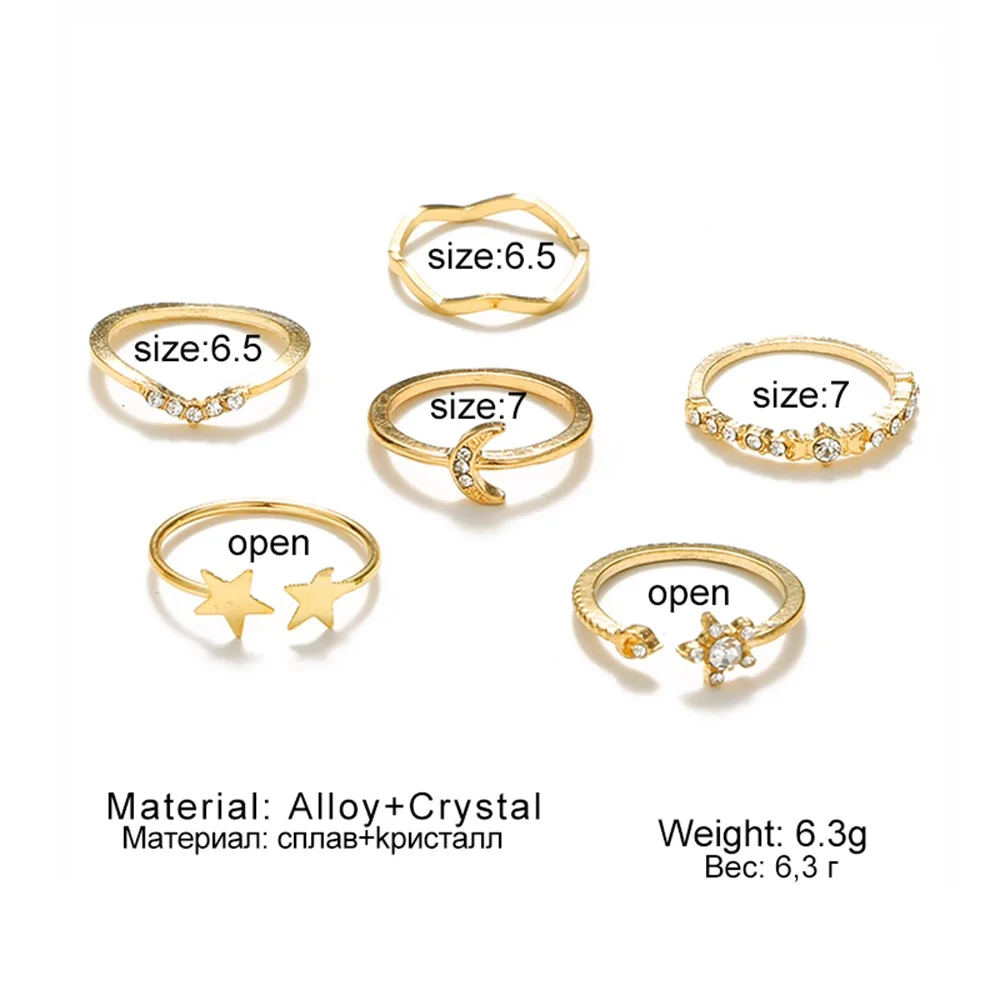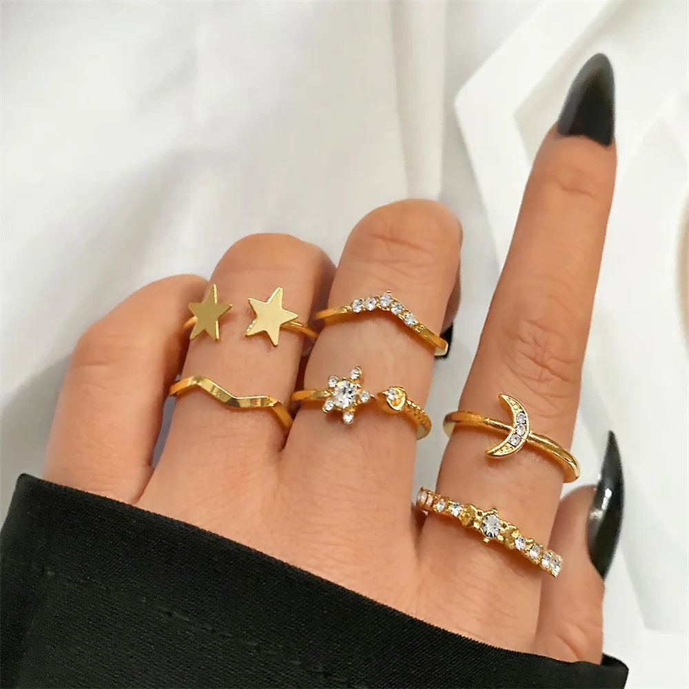victoria’s vogue New Vintage Gold Crystal Rings 2022 Bohemian Moon Star Ring For Women Midi Finger Ring Set Wedding Fashion Jewelry Gifts
