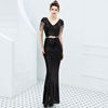 victoria’s vogue New Women Sequin Evening Dress Elegant V Neck Beaded Party Bodycon Maxi Dress