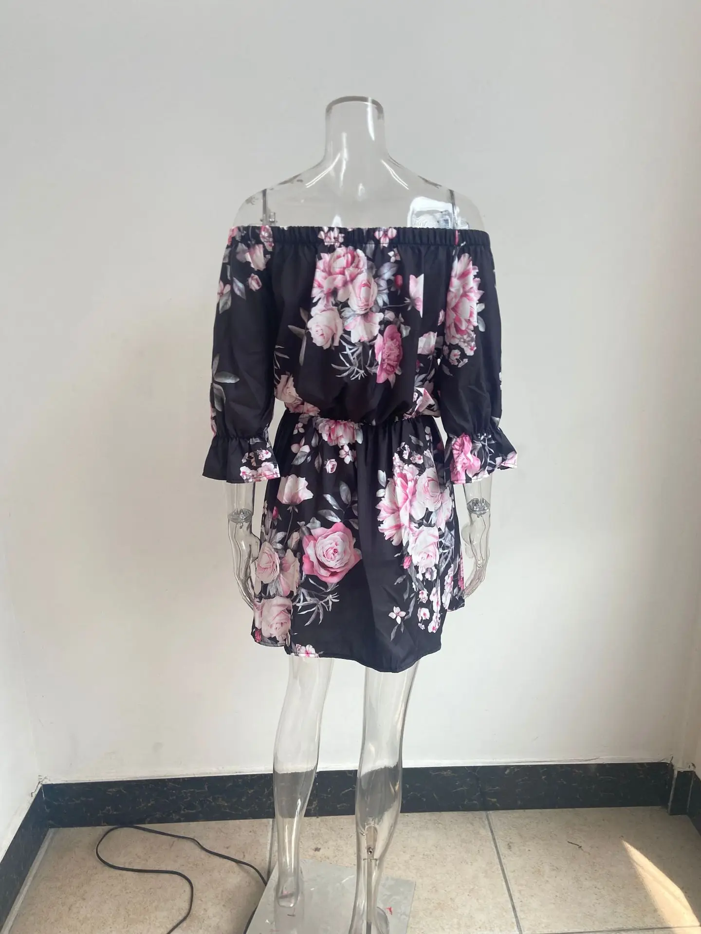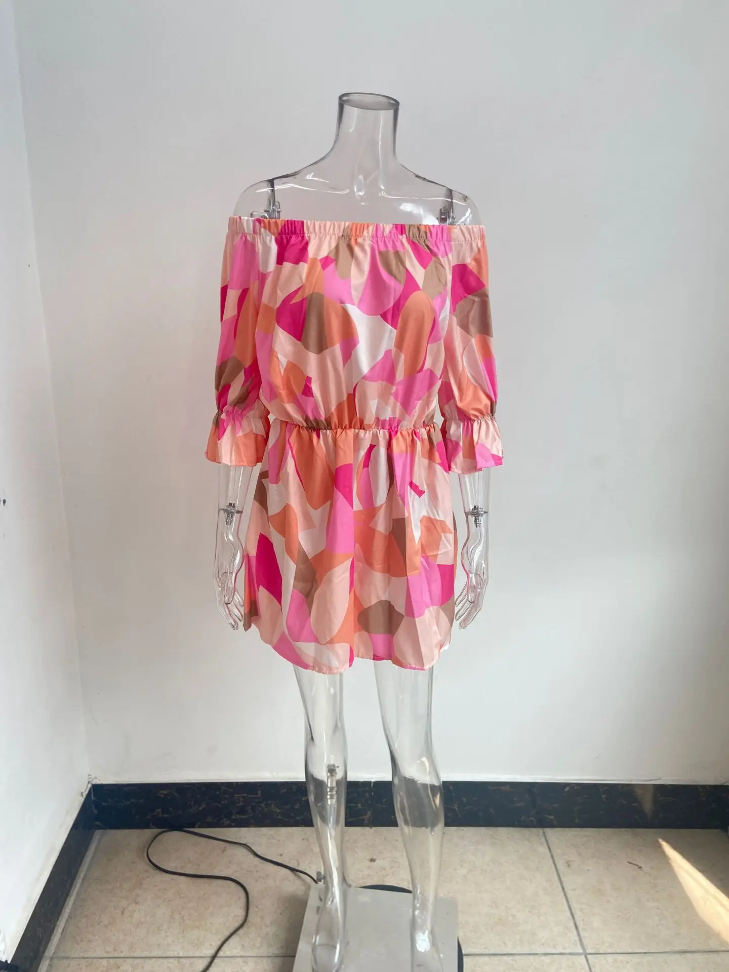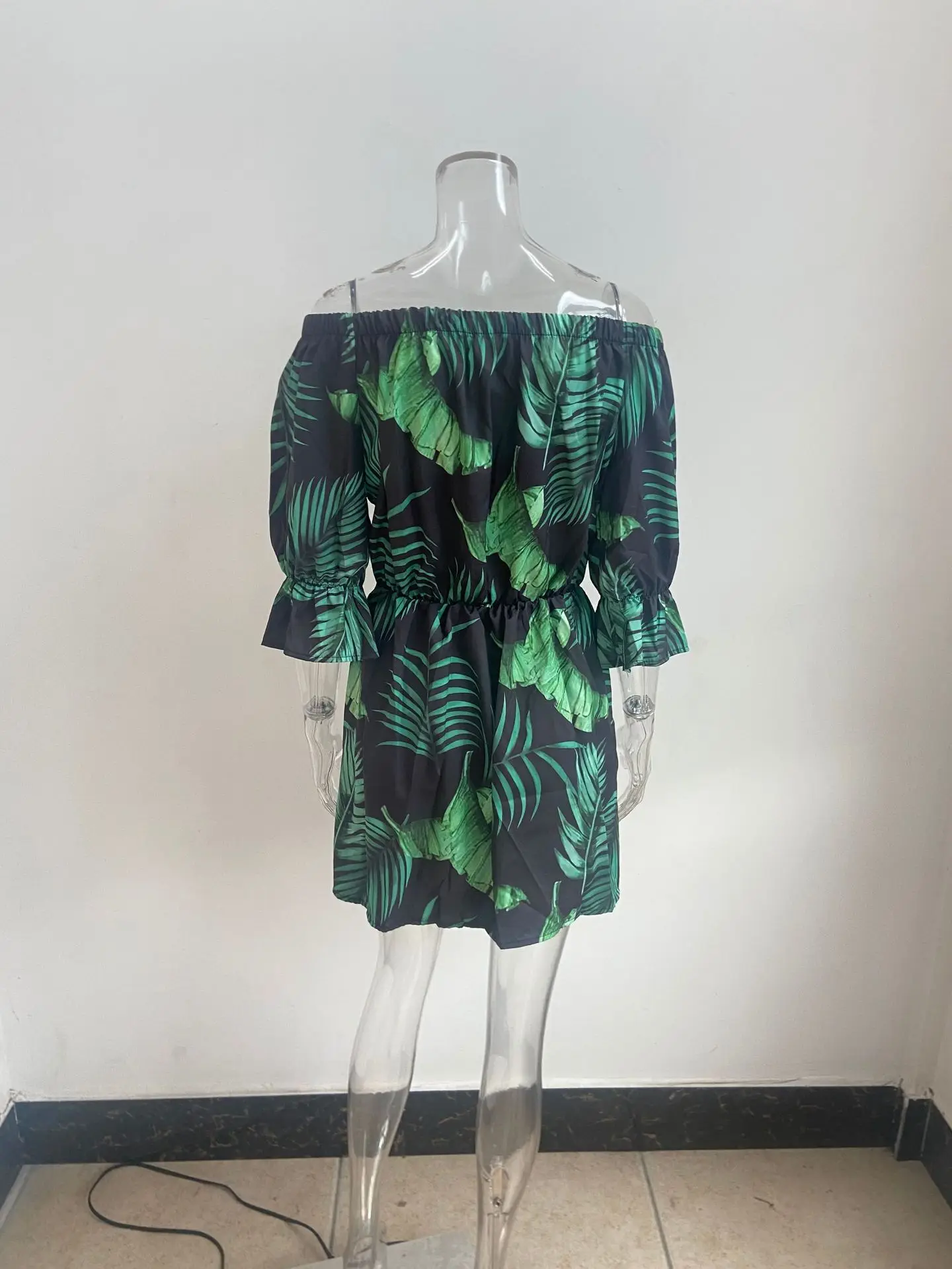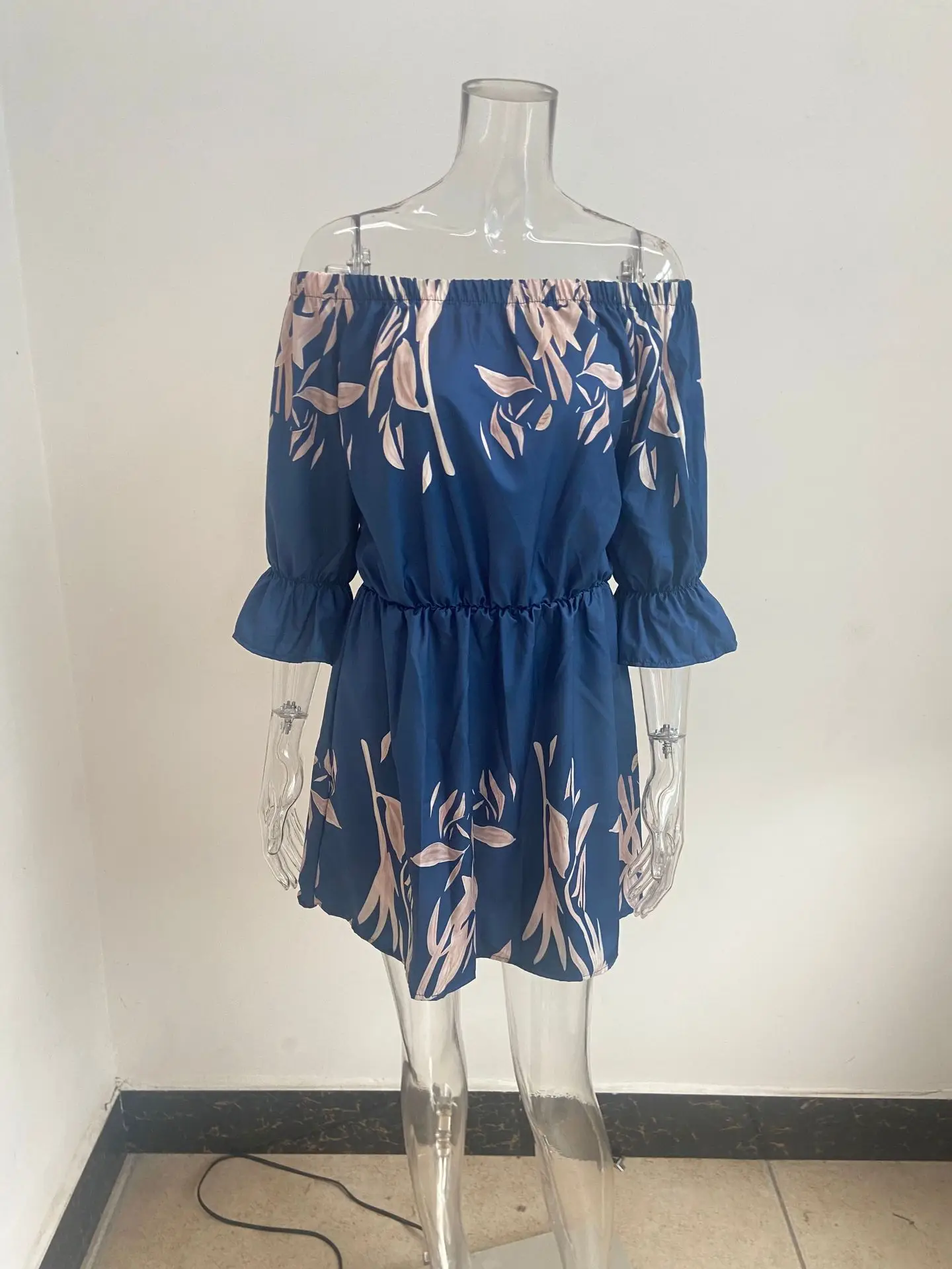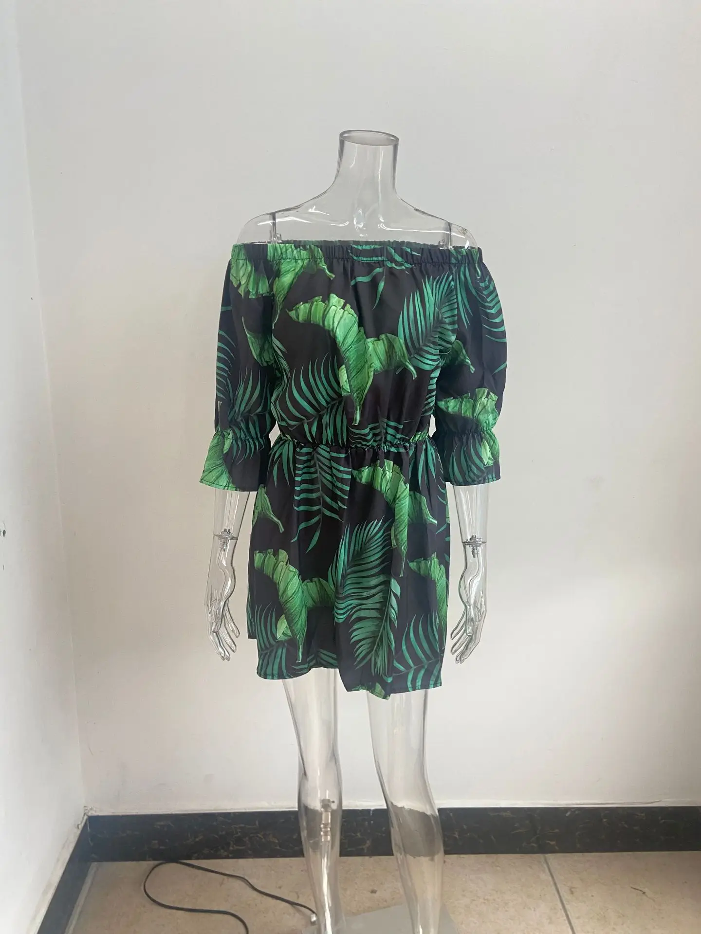 Victoria’s Vogue New women’s sexy fashion one-shoulder printed dress