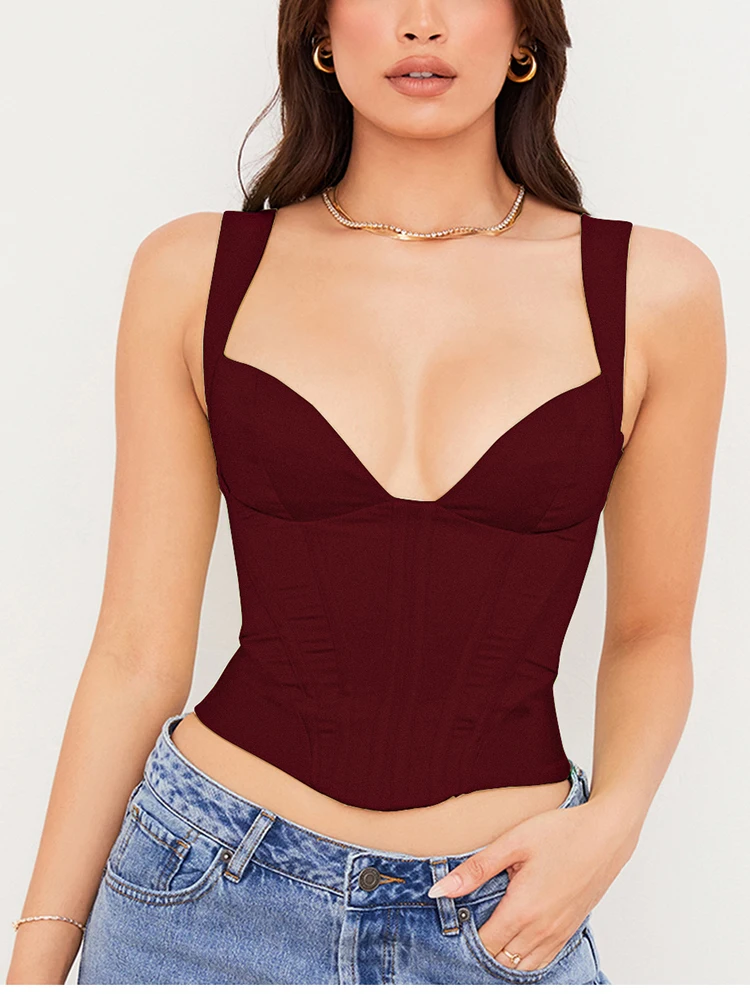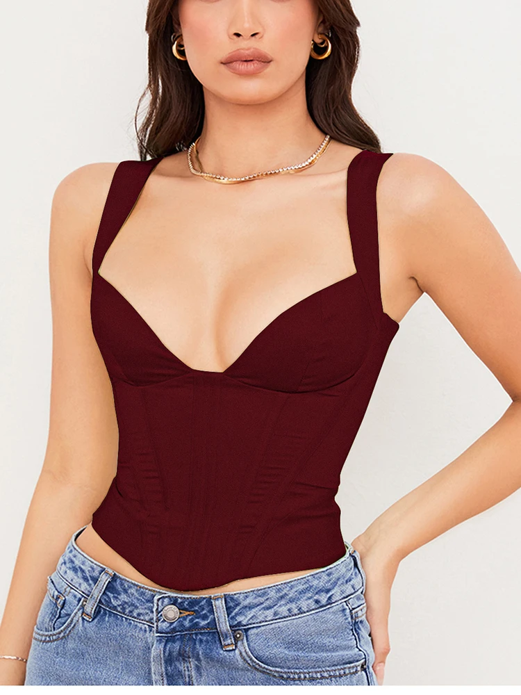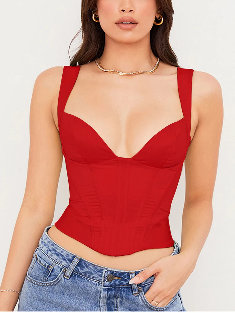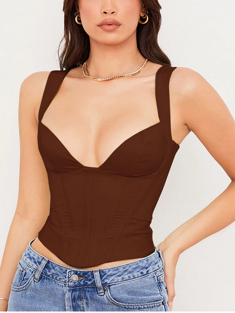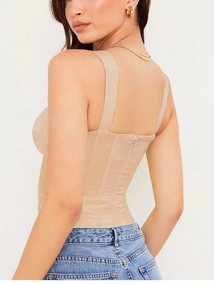 victoria’s vogue NewAsia Satin Corset Top Boning Padded 2Layer Elastic Zipper Solid Color Sexy Bodycon Crop Top Fashion Cami Tank Tops Women 2021