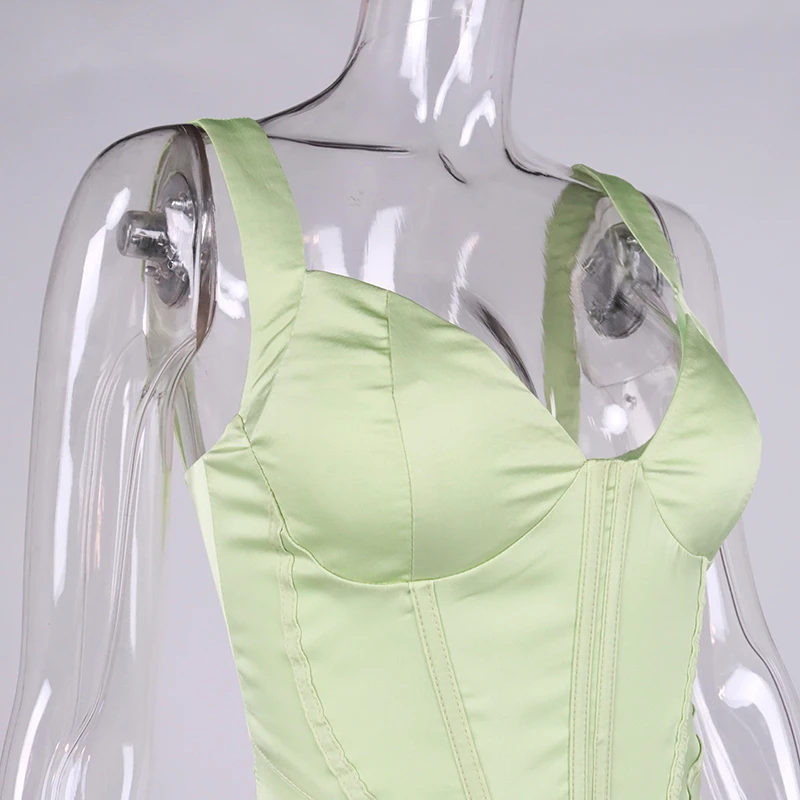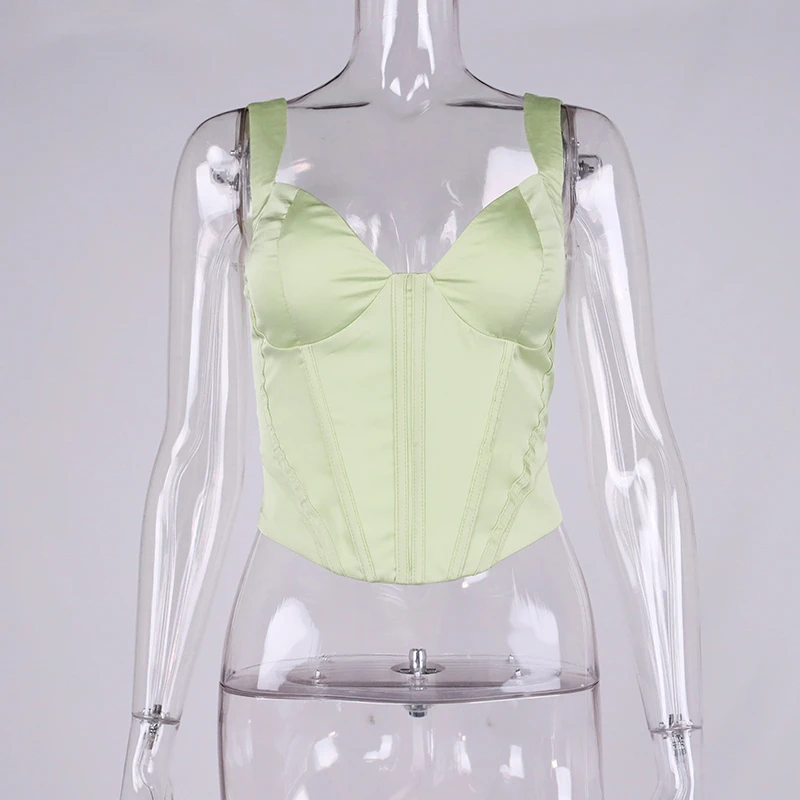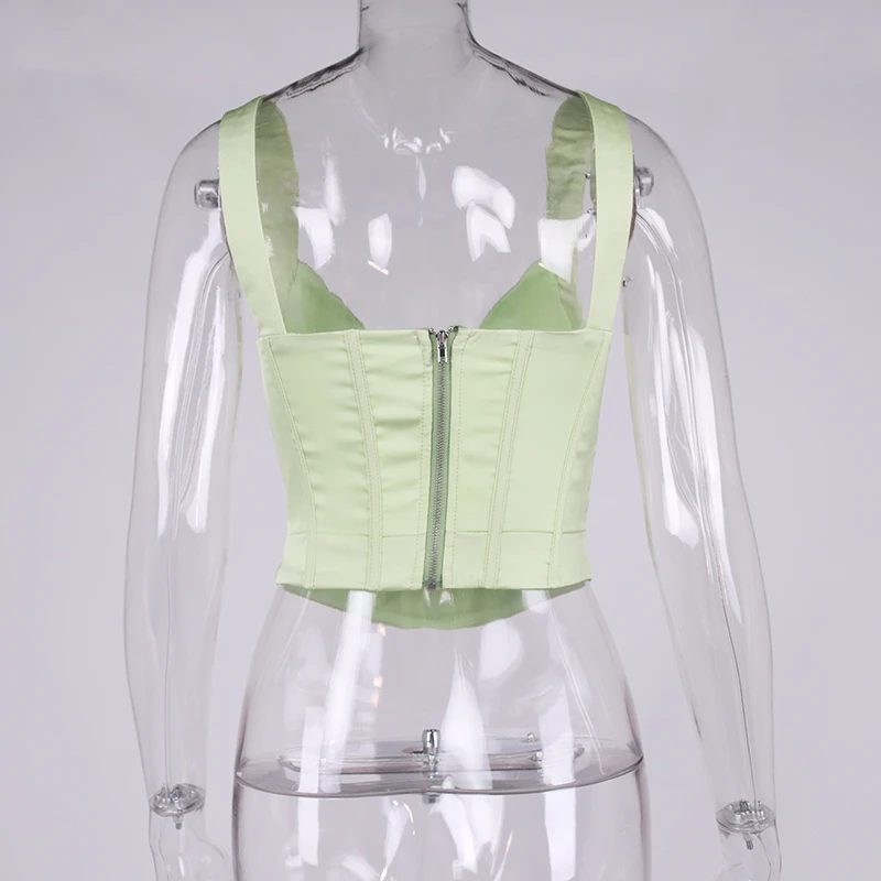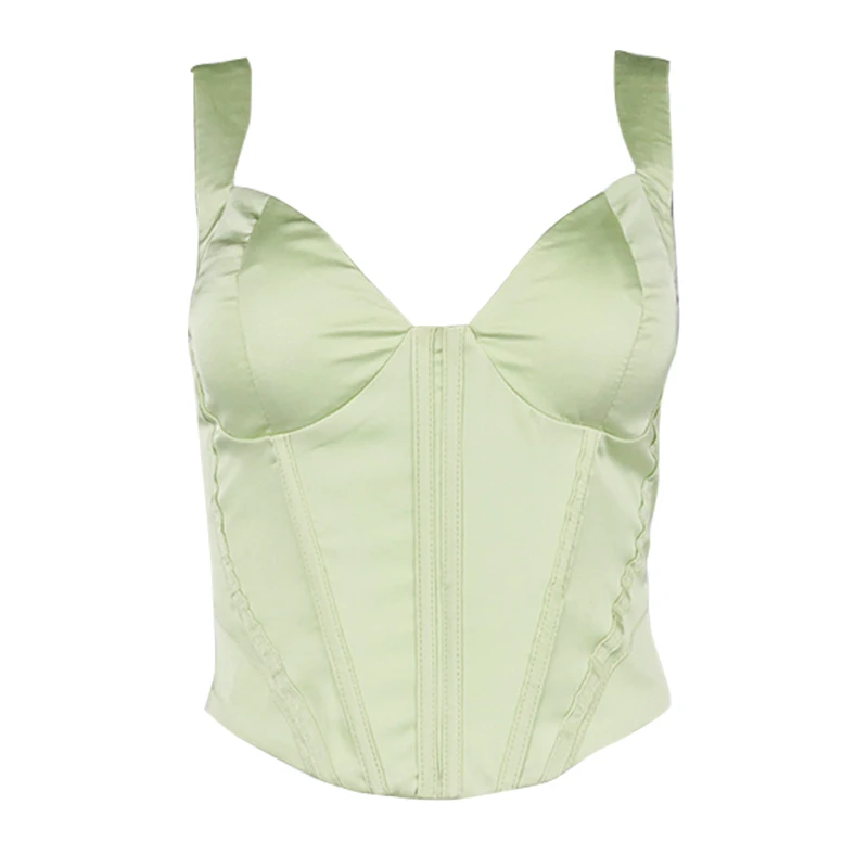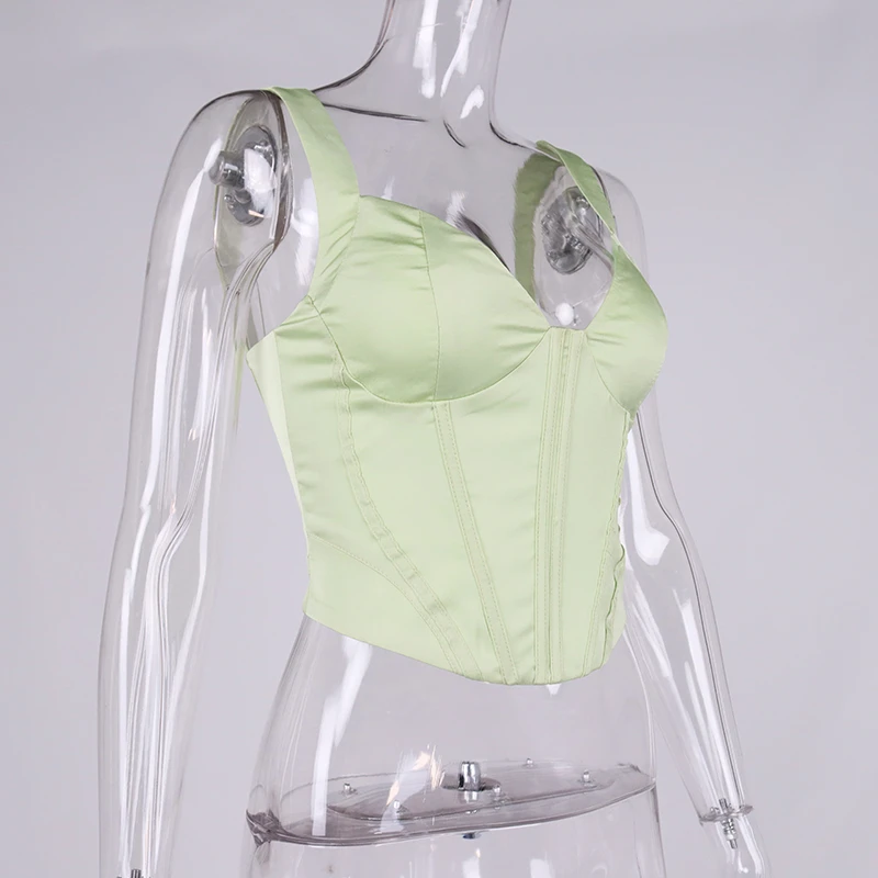 victoria’s vogue NewAsia Satin Corset Top Boning Padded 2Layer Elastic Zipper Solid Color Sexy Bodycon Crop Top Fashion Cami Tank Tops Women 2021