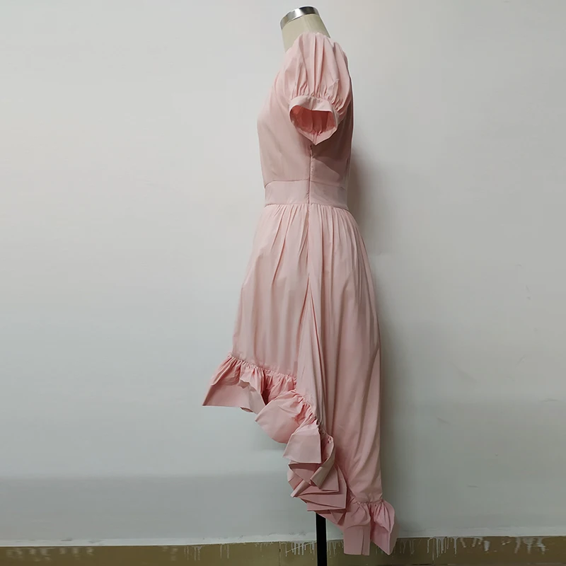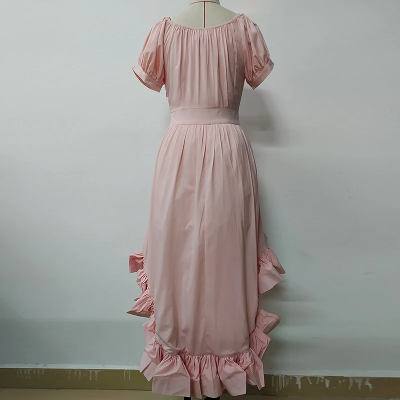 victoria’s vogue Newest 2022 Summer Designer Fashion Women Slash neck Lantern Sleeve Ruffles Asymmetrical Ball Gown Dress