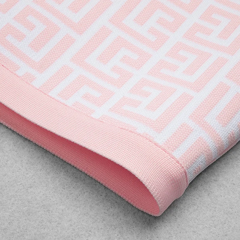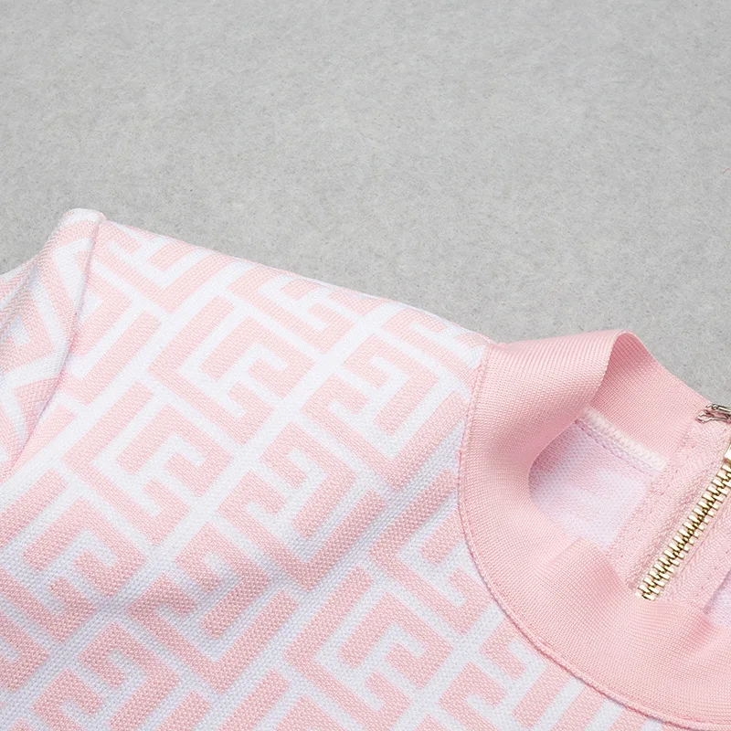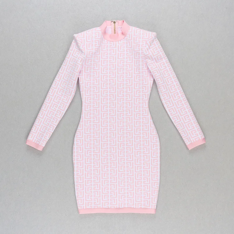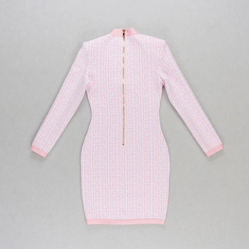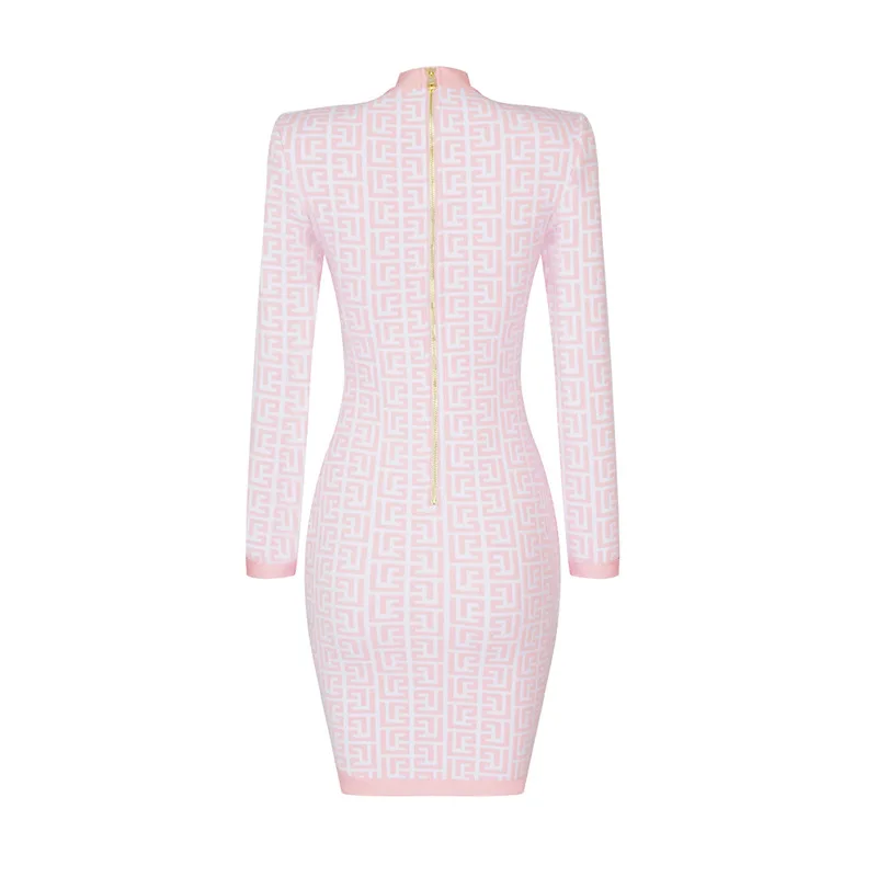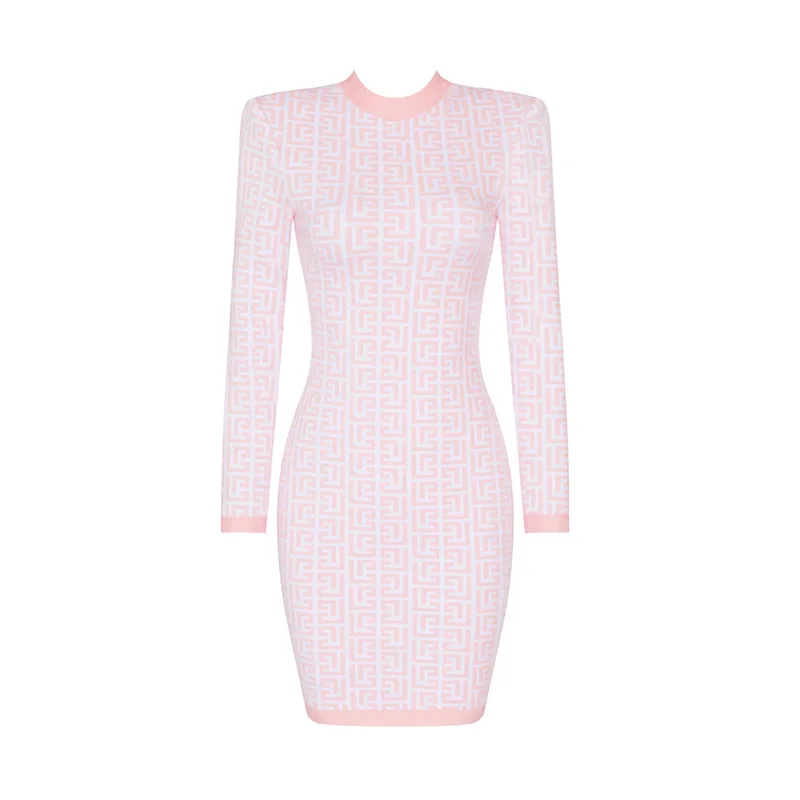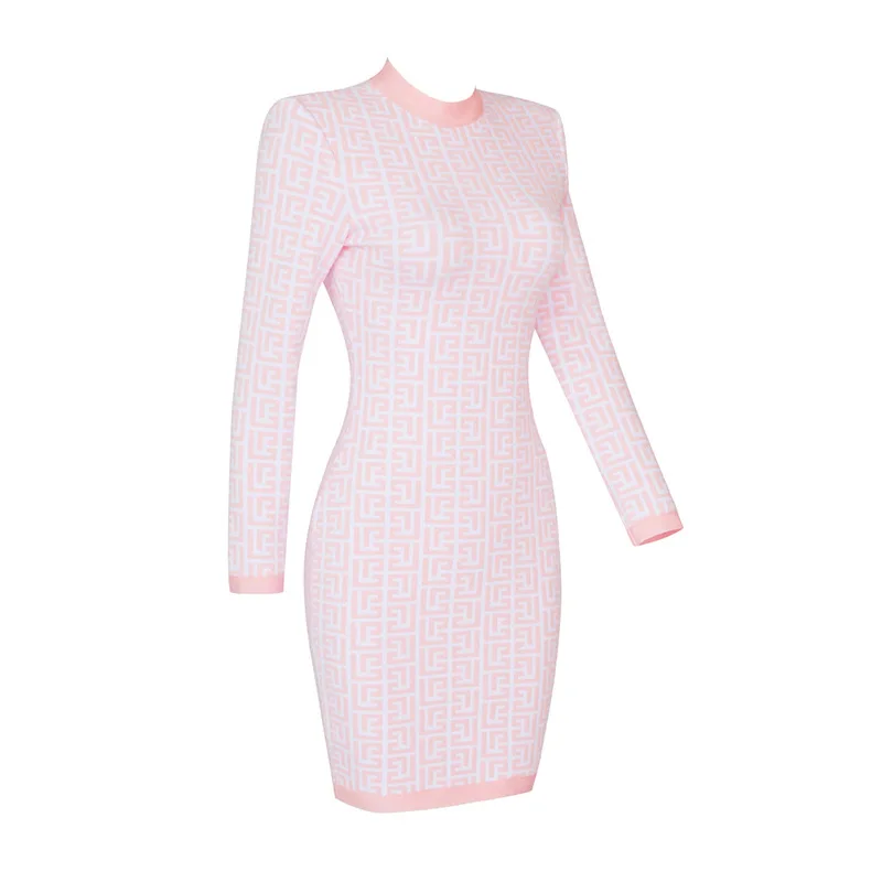 victoria’s vogue Newest Fashion 2022 Runway Designer Women Long Sleeve Back Zipper Monogram Geometric Jacquard Knitted Dress