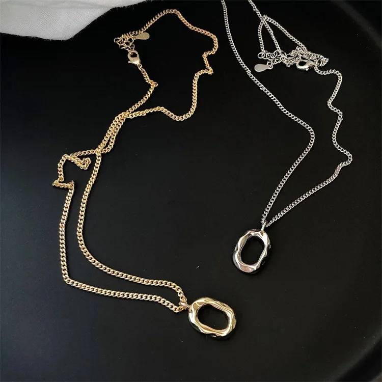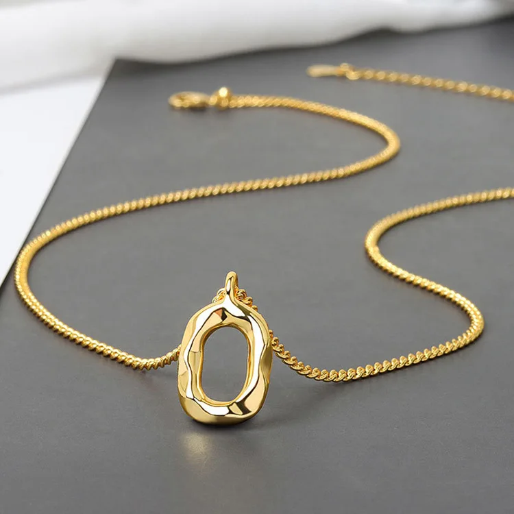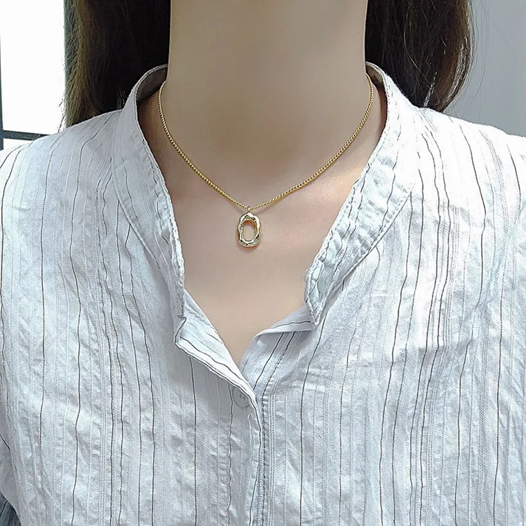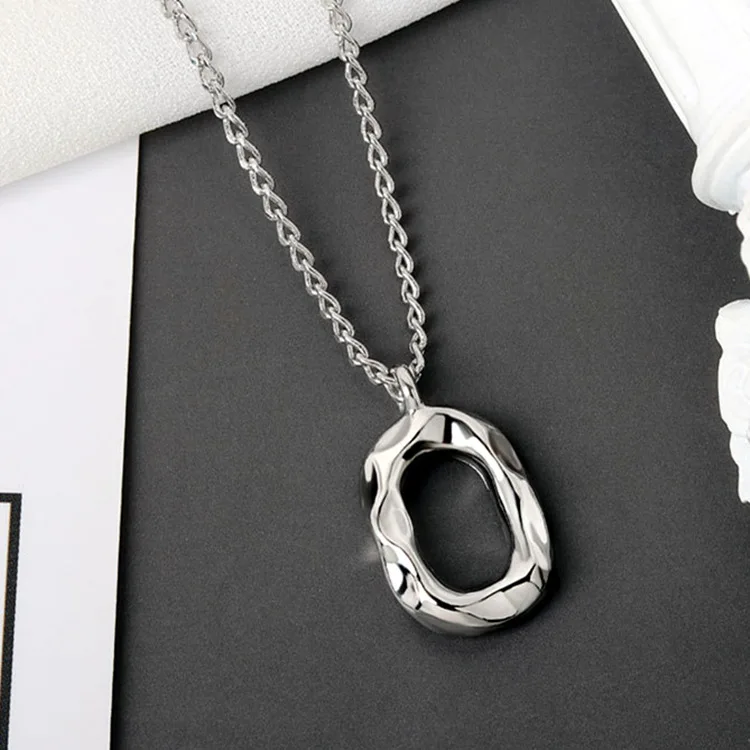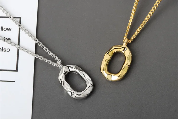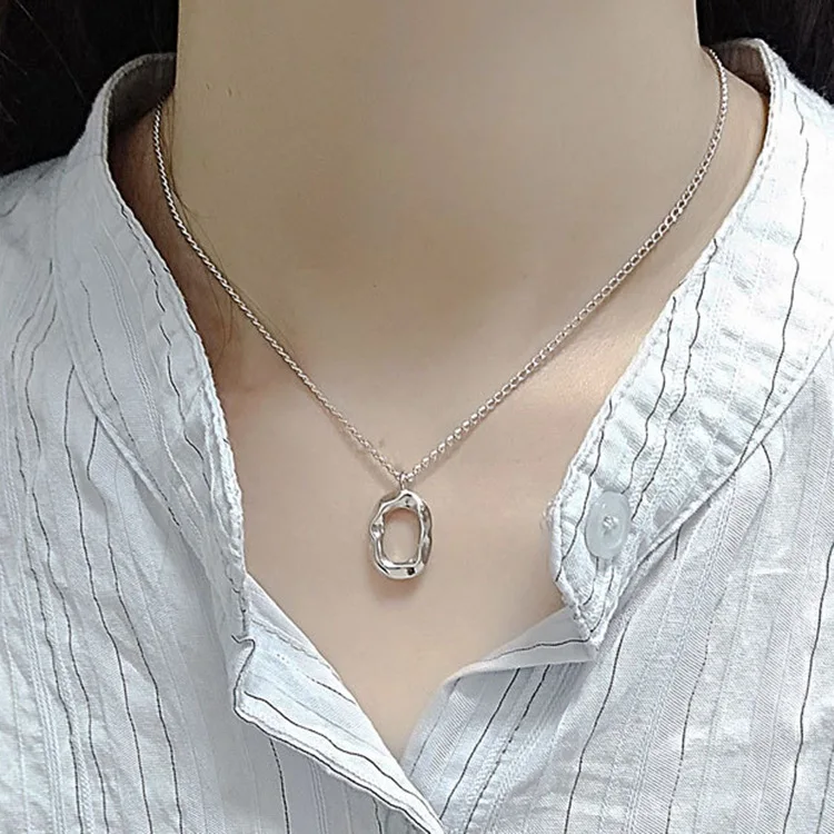 Victoria’s Vogue Niche Design Concave-Convex Oval Geometric 925 Sterling Silver Jewelry Personality O-Shaped Female Pendant Necklaces