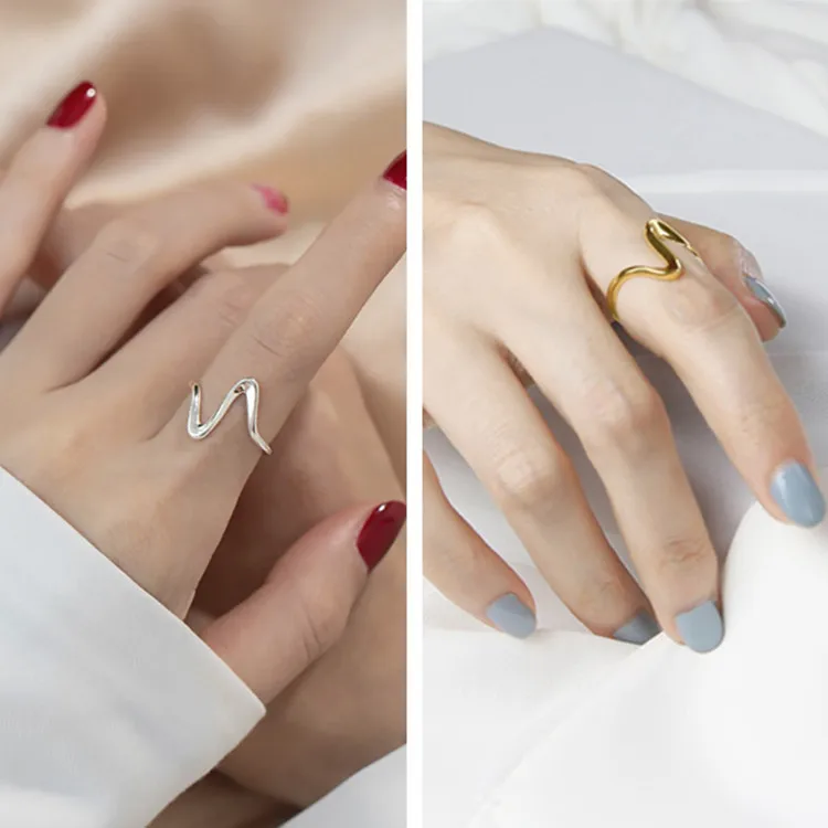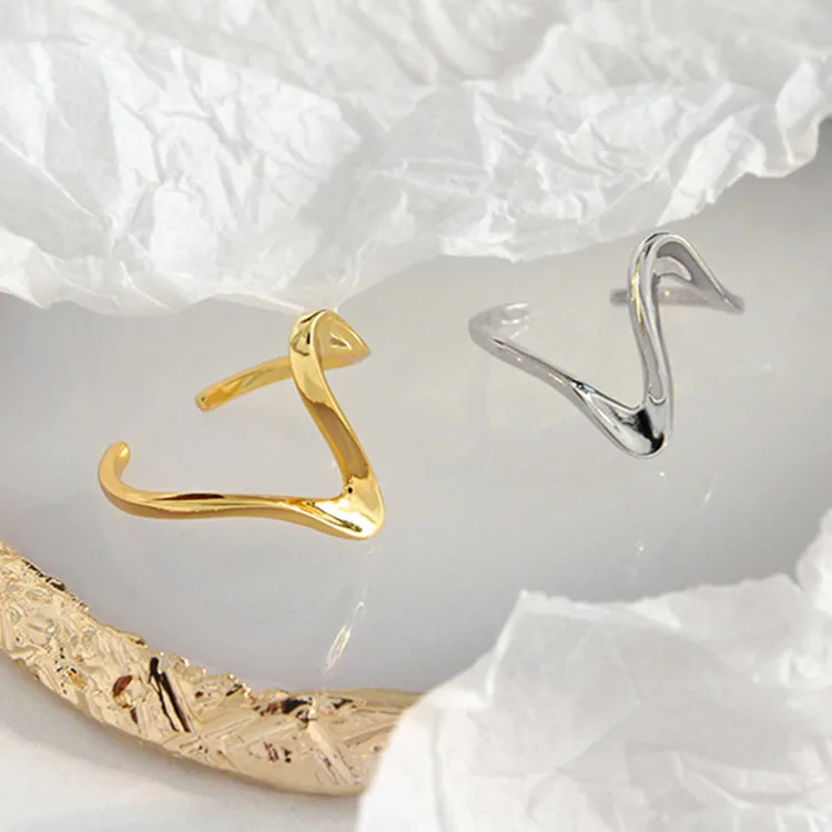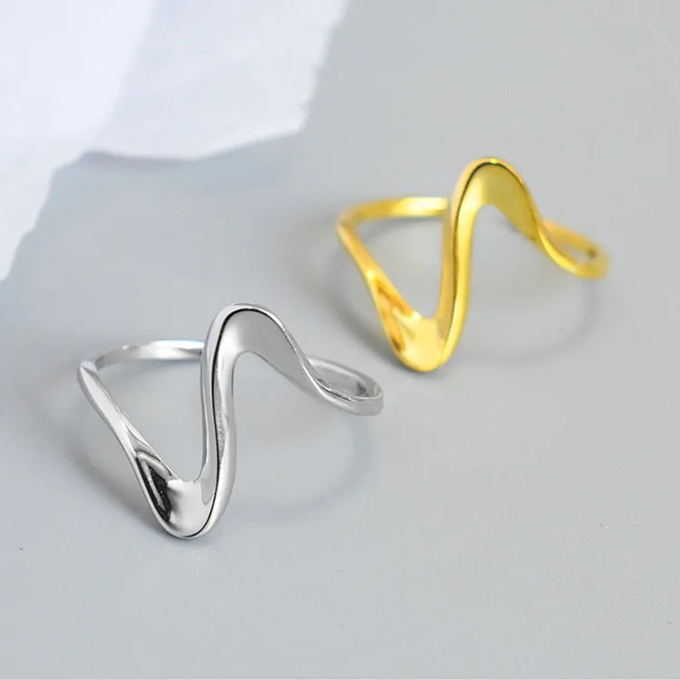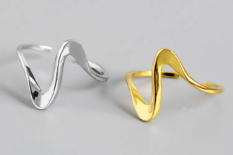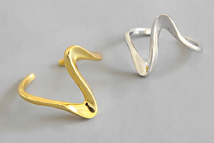 victoria’s vogue Niche Design Creative Lightning 925 Sterling Silver Jewelry INS Personality Wave Irregular Opening Rings