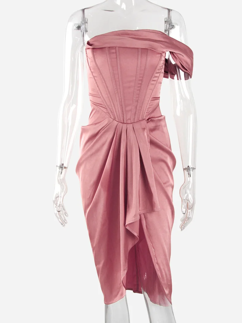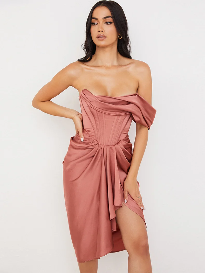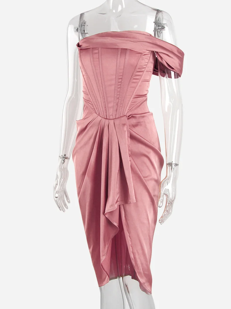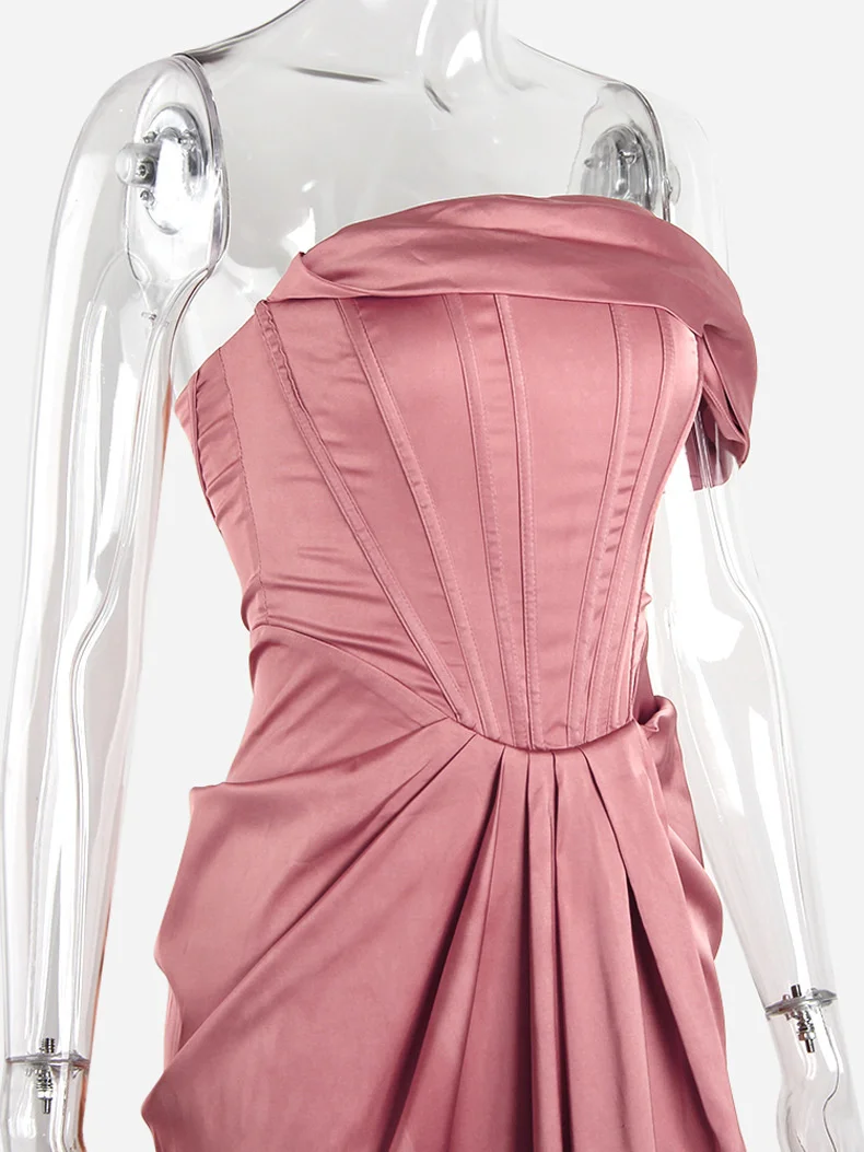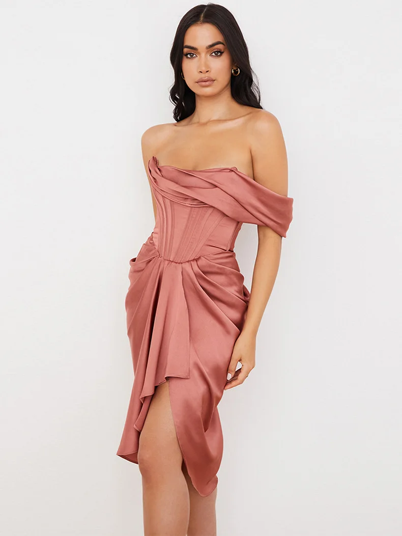 victoria’s vogue Off Shoulder Satin Evening Dress Women Sexy Sleeveless Elastic Waist Club Outfits Irregular Fishbone Female Party Dress