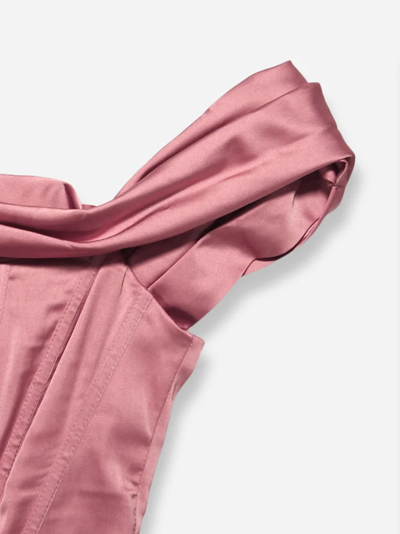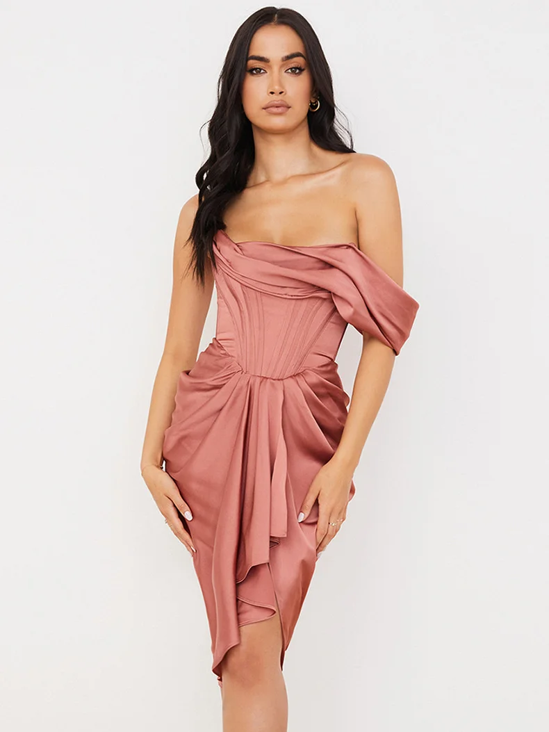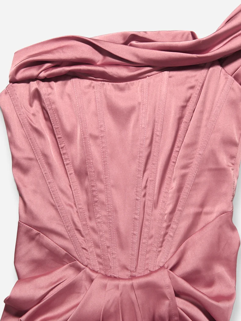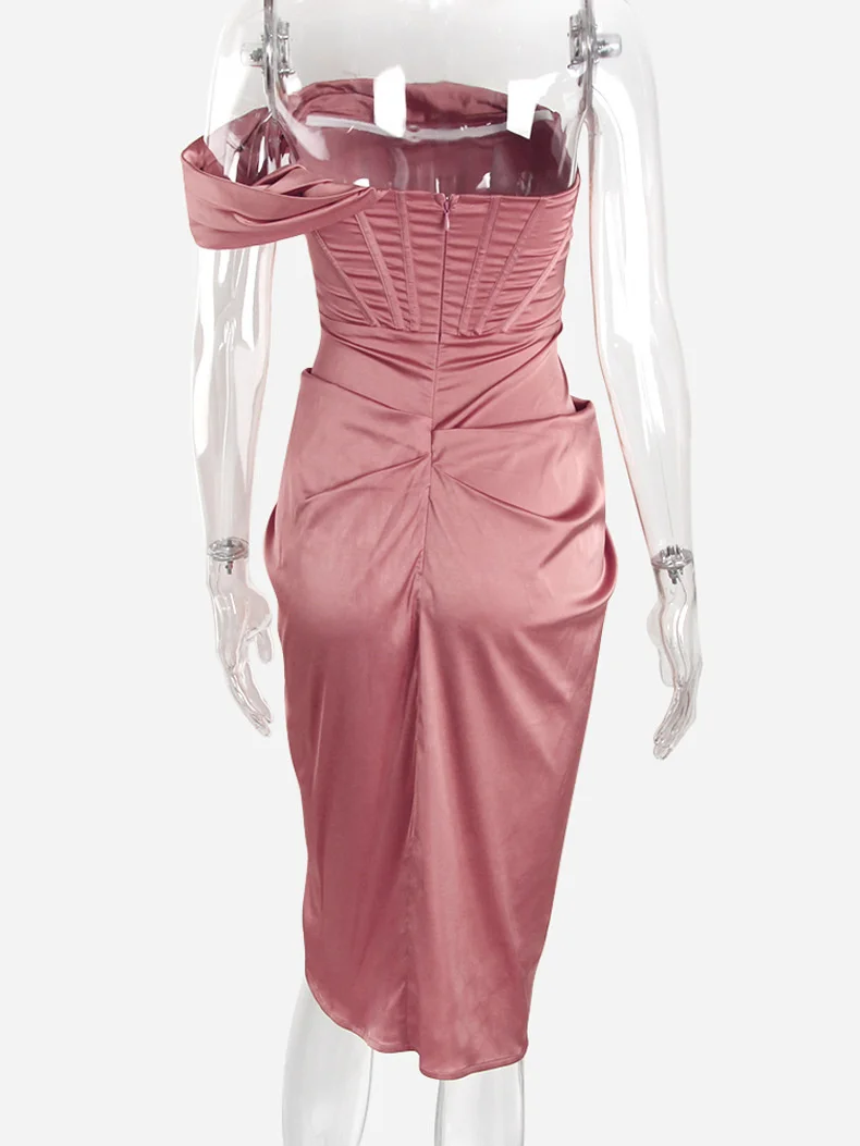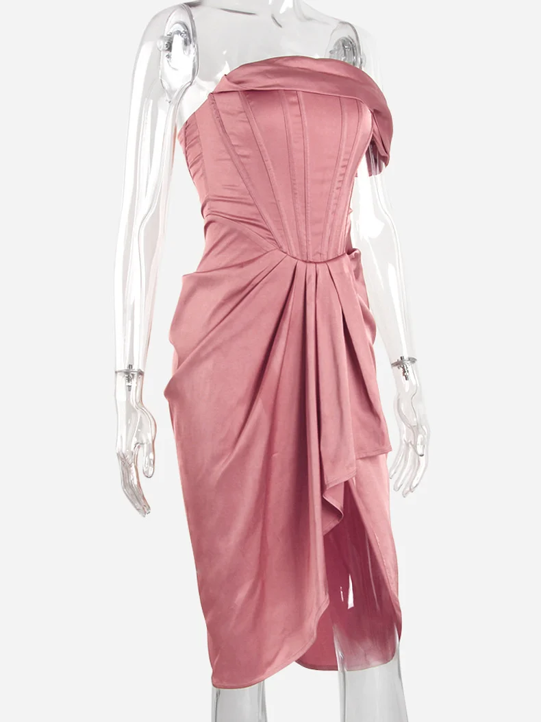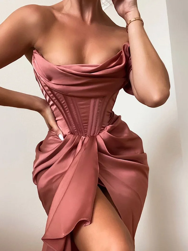 victoria’s vogue Off Shoulder Satin Evening Dress Women Sexy Sleeveless Elastic Waist Club Outfits Irregular Fishbone Female Party Dress