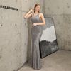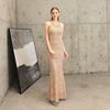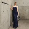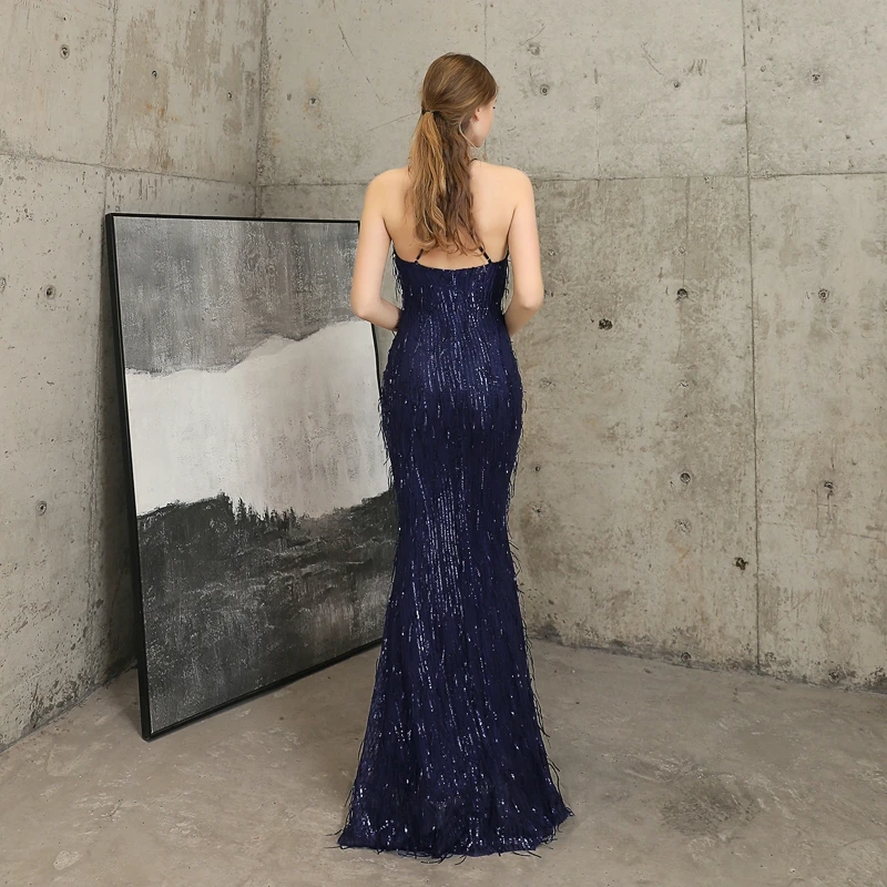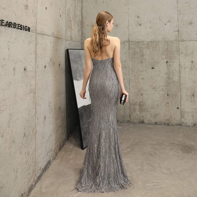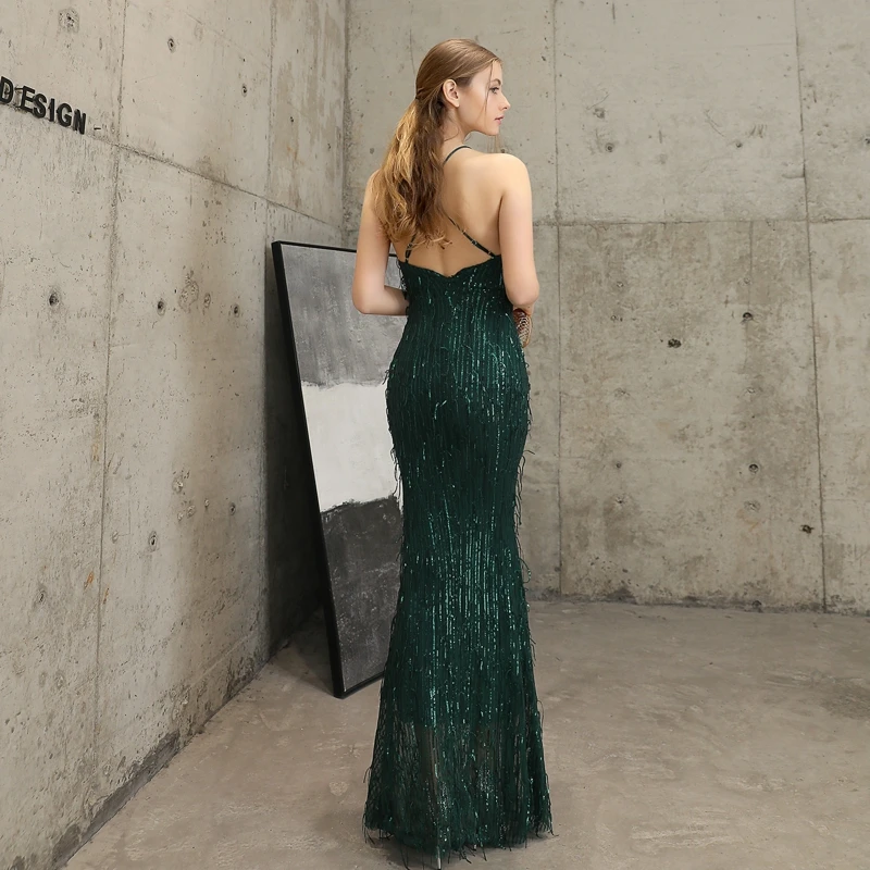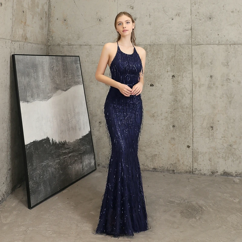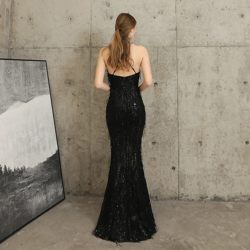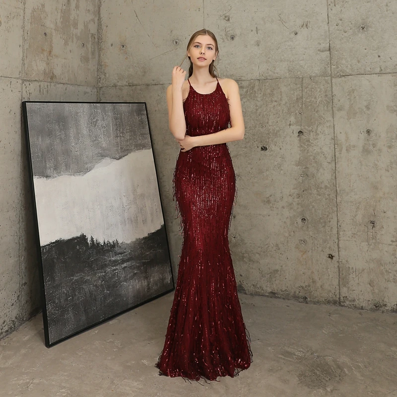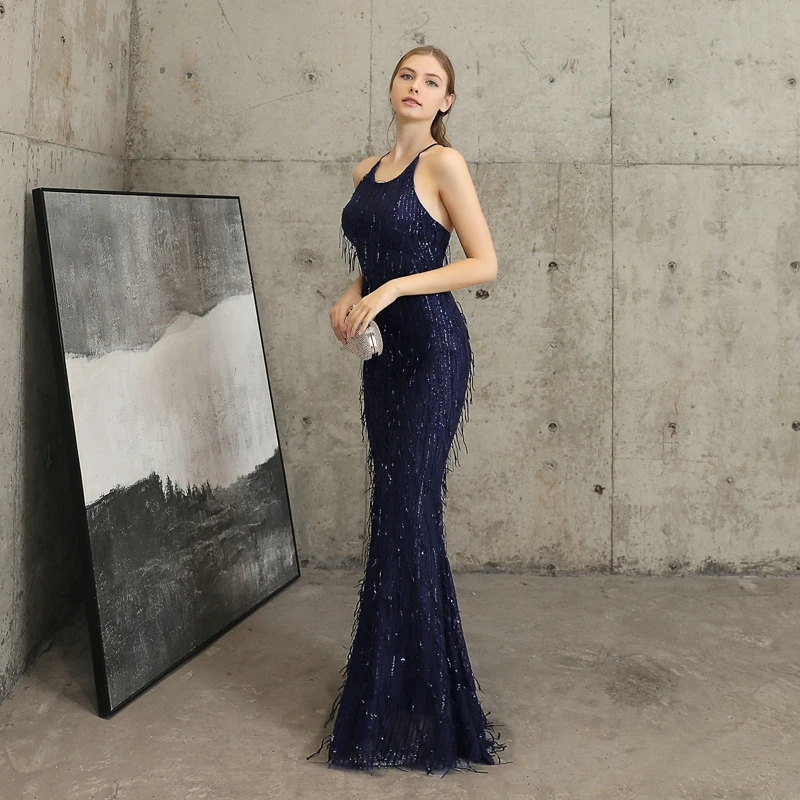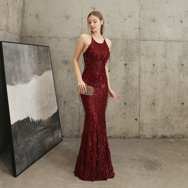 victoria’s vogue Off Shoulder Tassel Sequin Evening Dress Women Sexy Corss Back Long Evening Party Dress