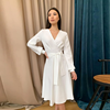 victoria’s vogue Office Lady a Line Midi Dress Women Lantern Sleeve v Neck High Waist Lace Up Elegant Fashion Autumn Winter 2021