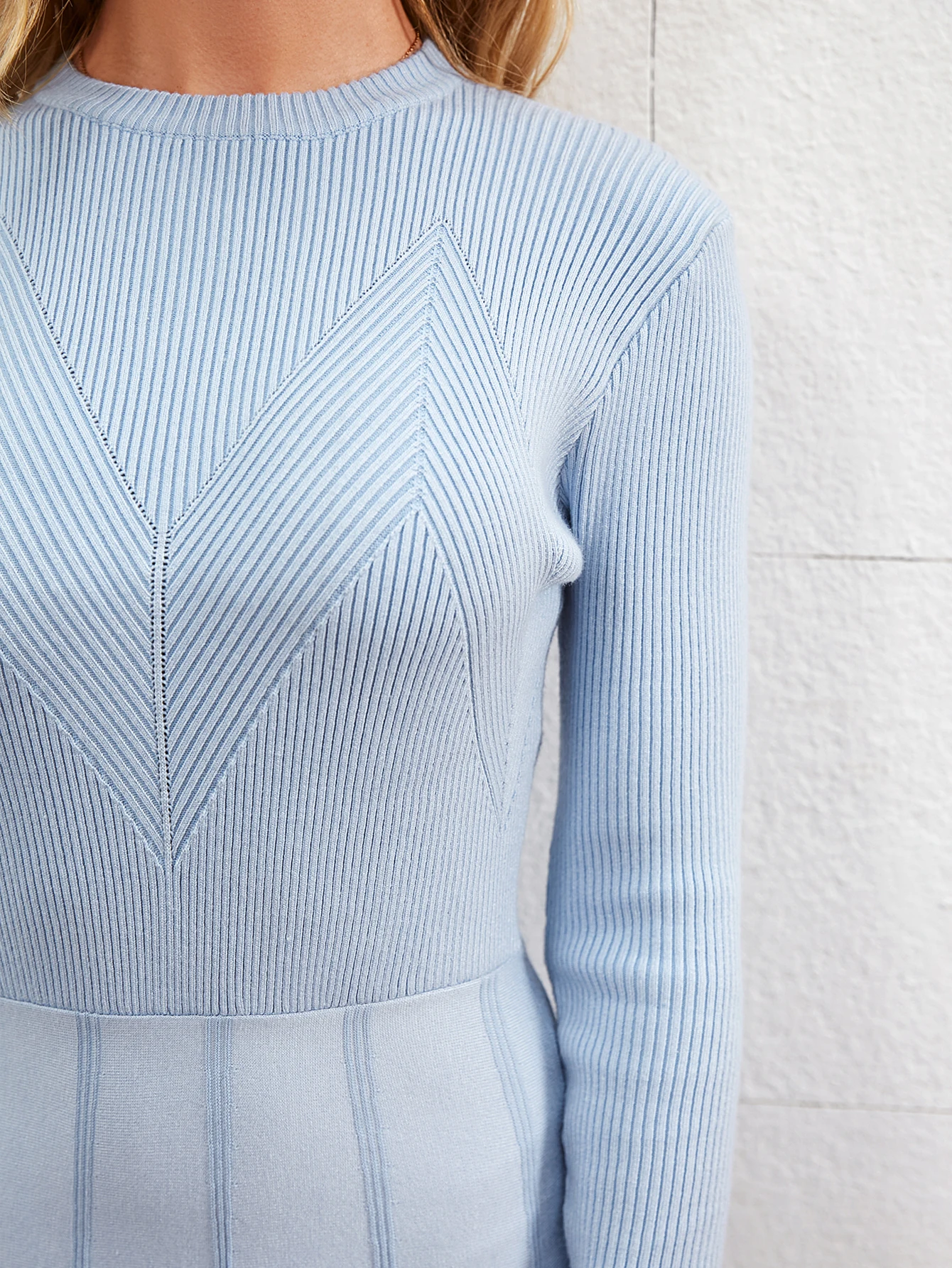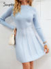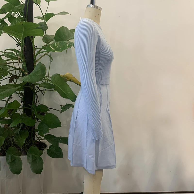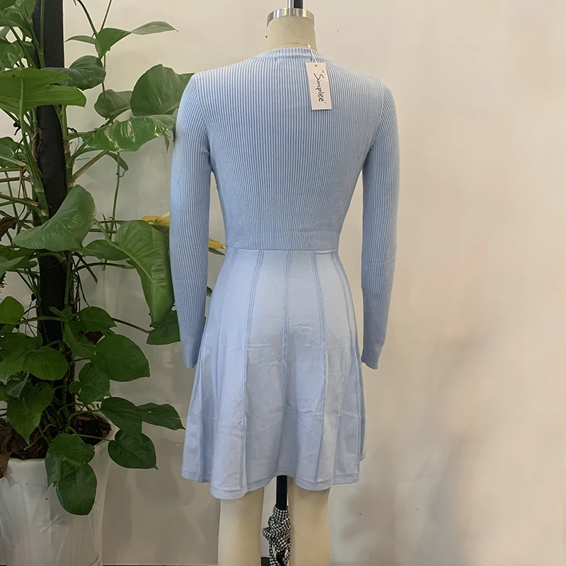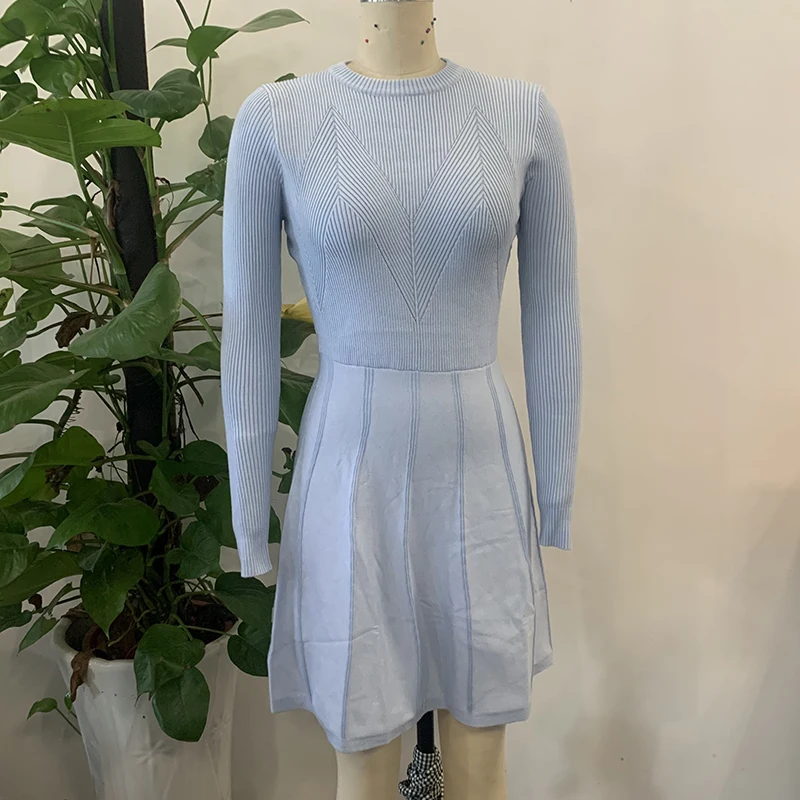 victoria’s vogue Office o-neck long sleeves slim knitted winter women dresses Elegant A-line blue midi dress Sheath autumn female vestido