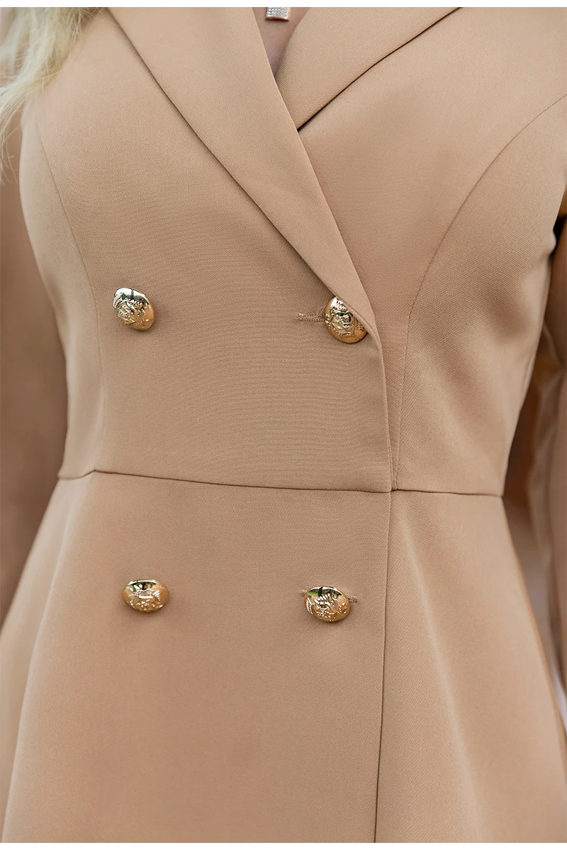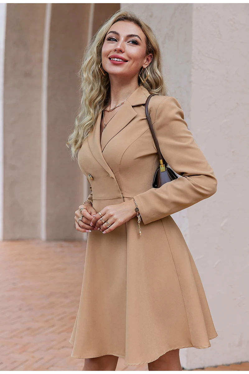 victoria’s vogue Office v-neck buttons blazer dress women Notched shoulder pads high waist mini dresses Solid long sleeves A-line vestido