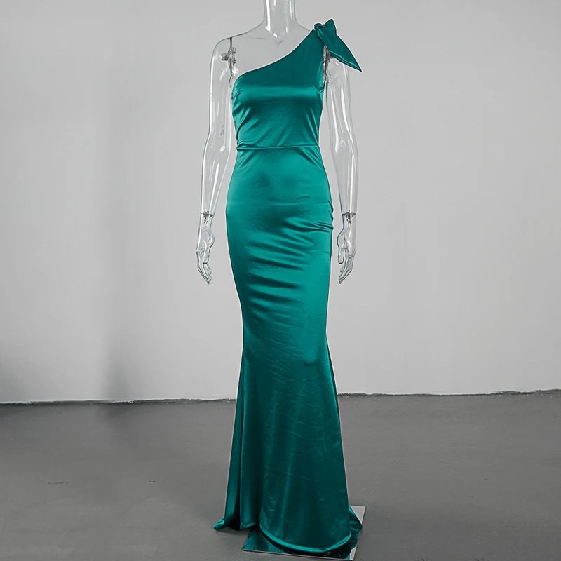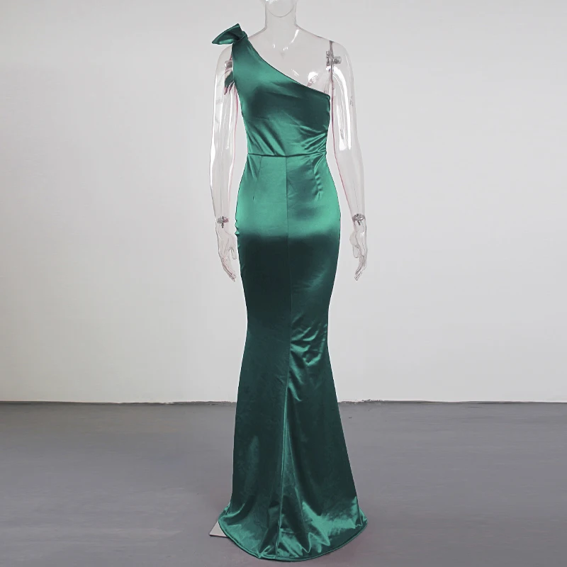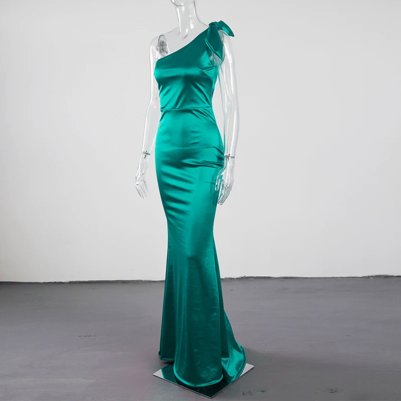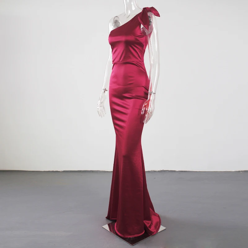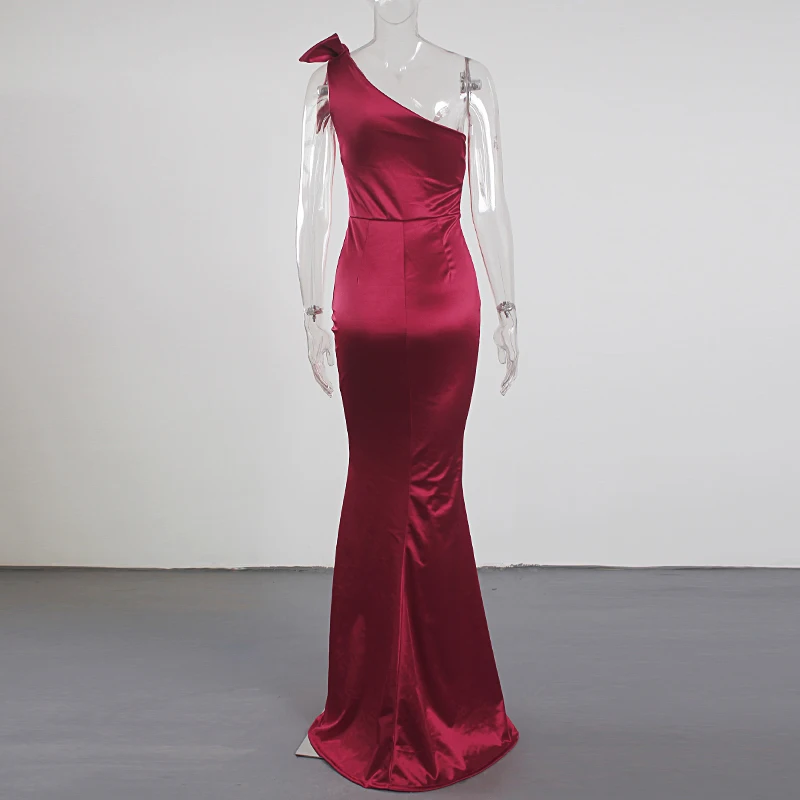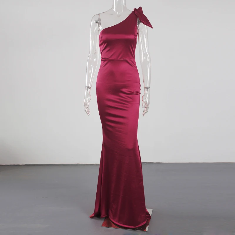 victoria’s vogue One Shoulder Satin Maxi Dress Stretchy Bodycon Floor Length Sleeveless Long Gown