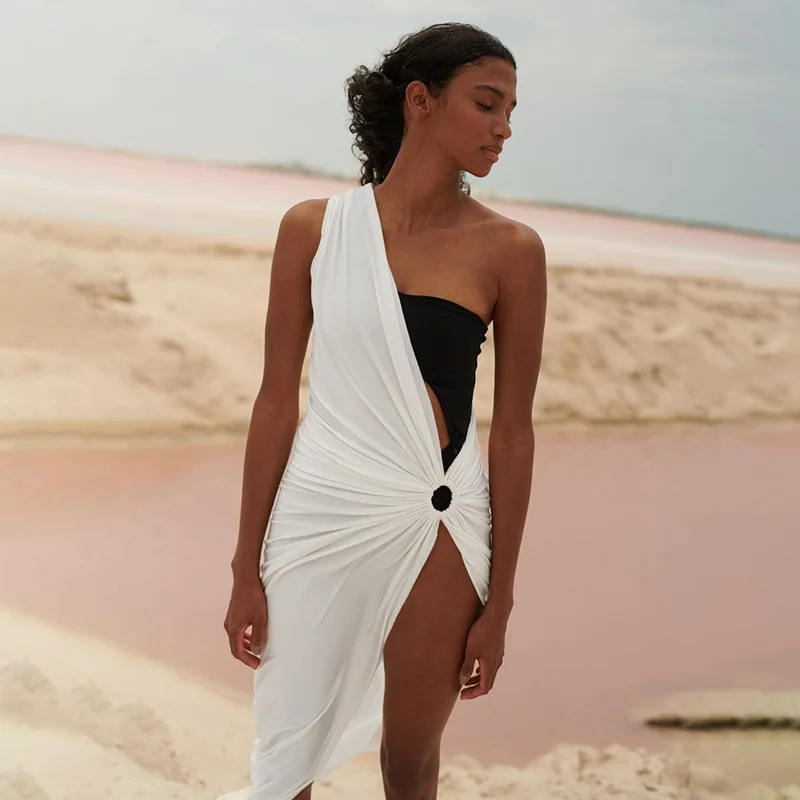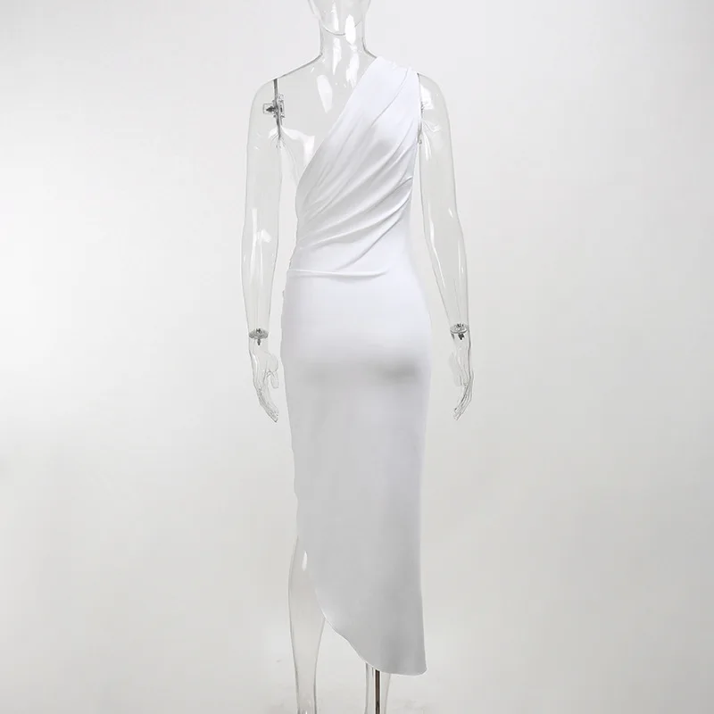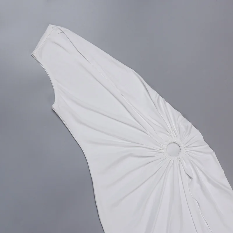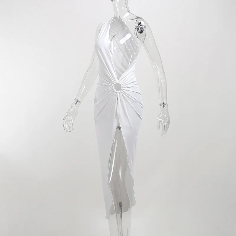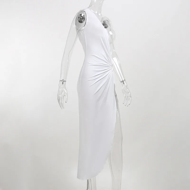 victoria’s vogue One Shoulder Sleeveless Hollow Out Draped Slit Midi Dress 2022 Summer Slim Sexy Streetwear Elegant Club Beach Y2K Wear