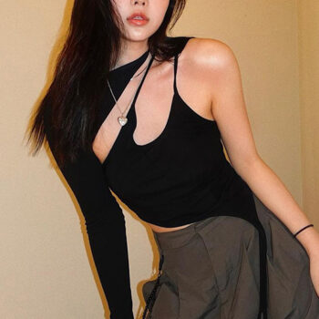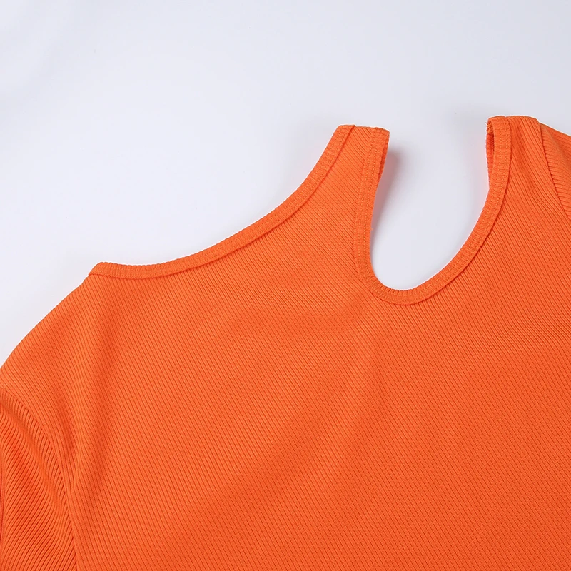 victoria’s vogue One Shoulder Tee Casual Shirts Women Long Sleeve Hollow Out O-Neck Sexy Tops Woman Asymmetric 2021 Ribbed Autumn Tops