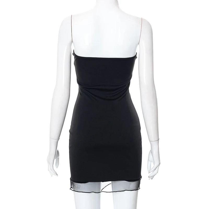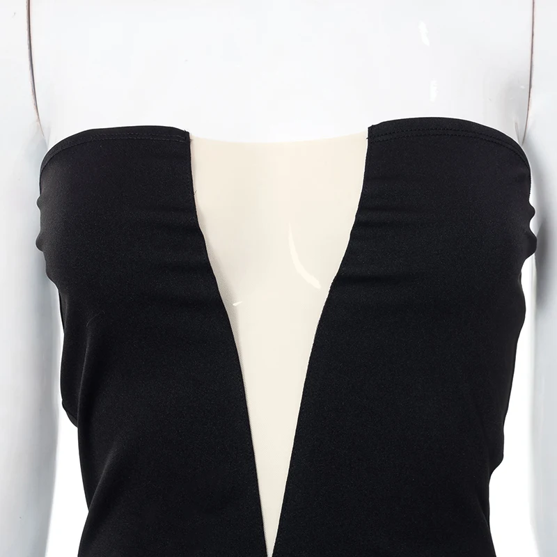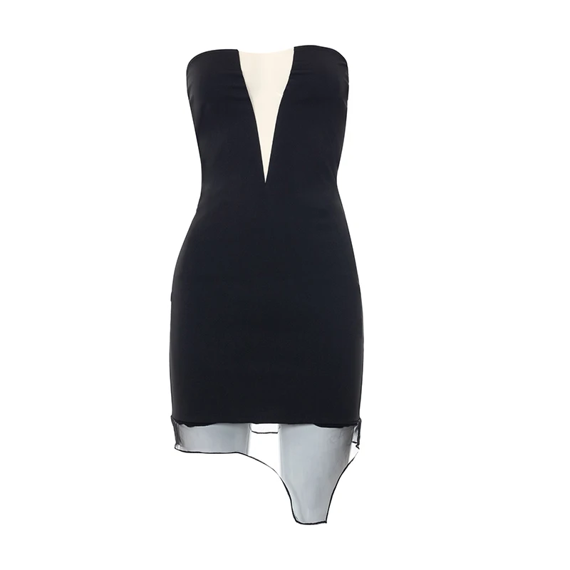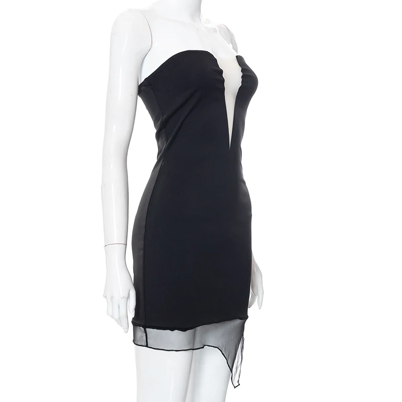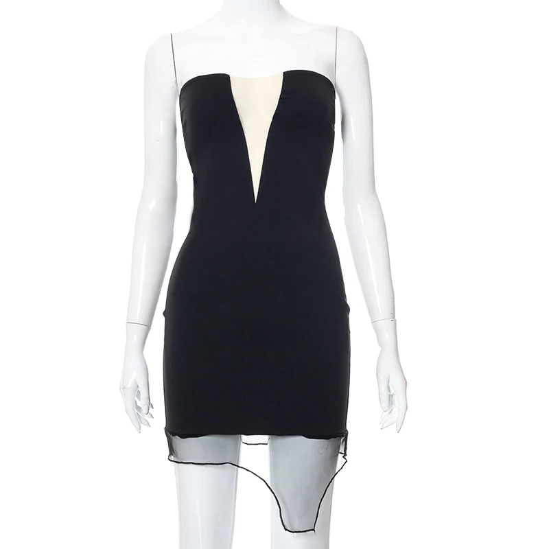 victoria’s vogue One Shoulder V-Neck Low Cut Tube Top Sleeveless Solid Color Stitching Tight Sexy Mini Dress Women Evening Dress