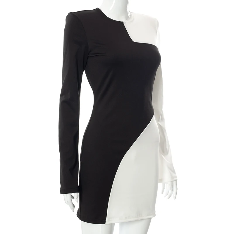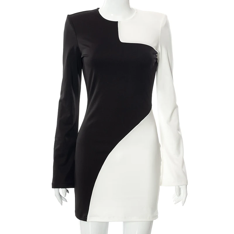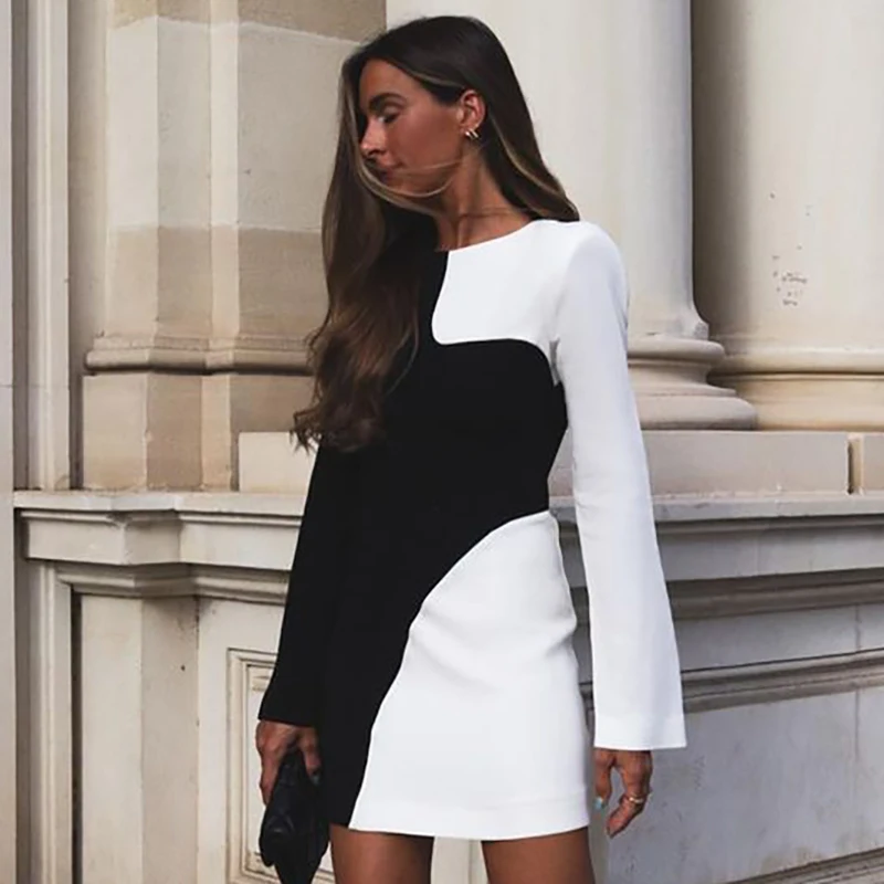victoria’s vogue Party Club Bodycon Dresses For Women 2022 Autumn Patchwork O-neck Long Sleeve Backless Dress Female Streetwears