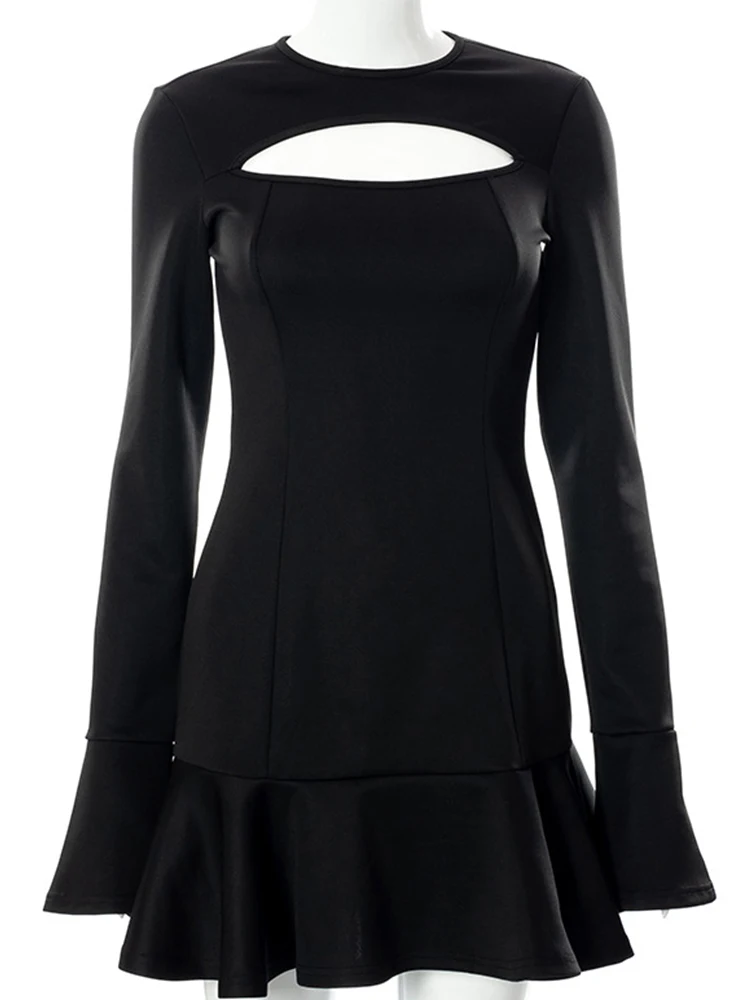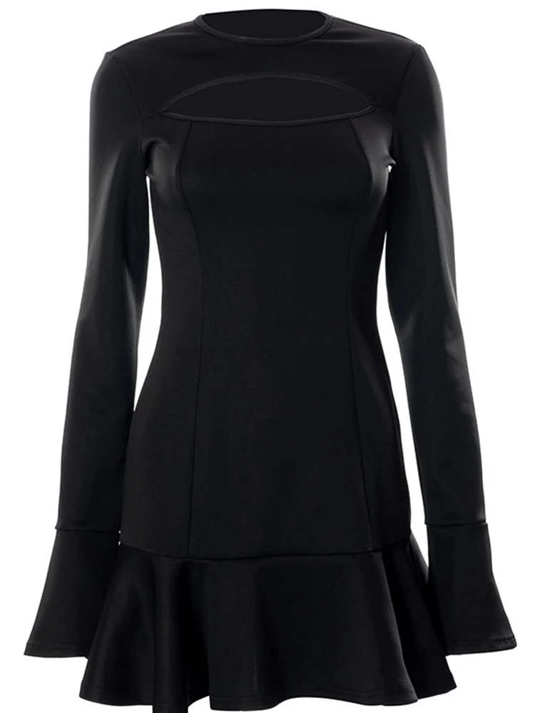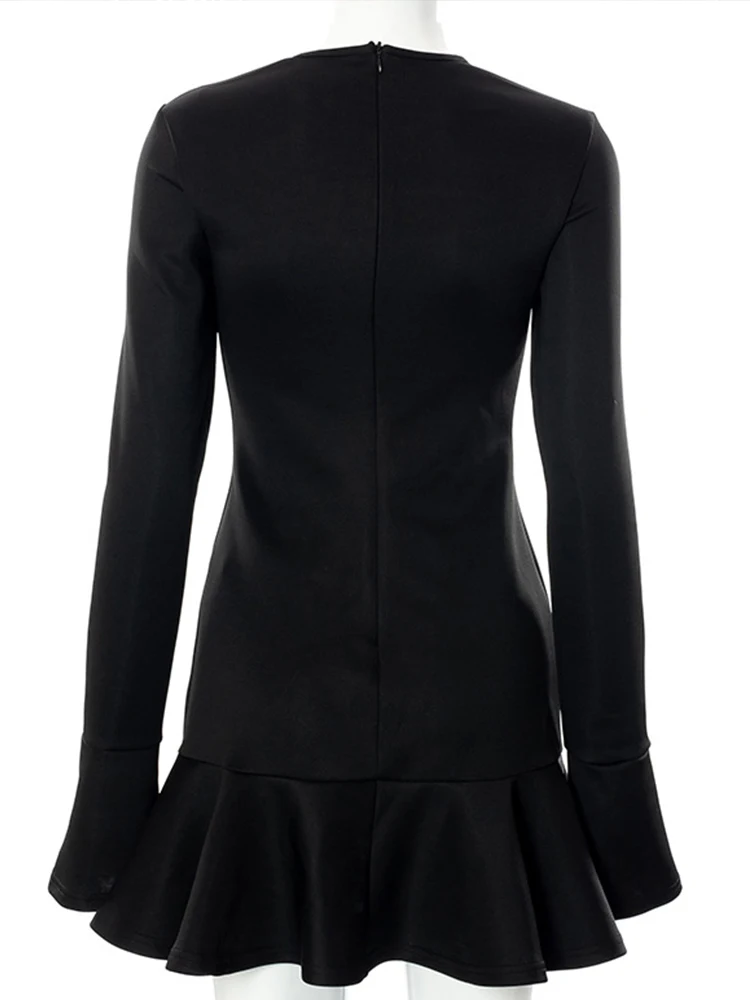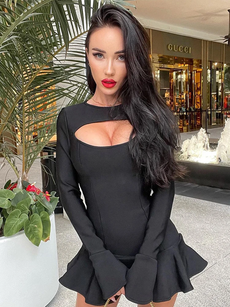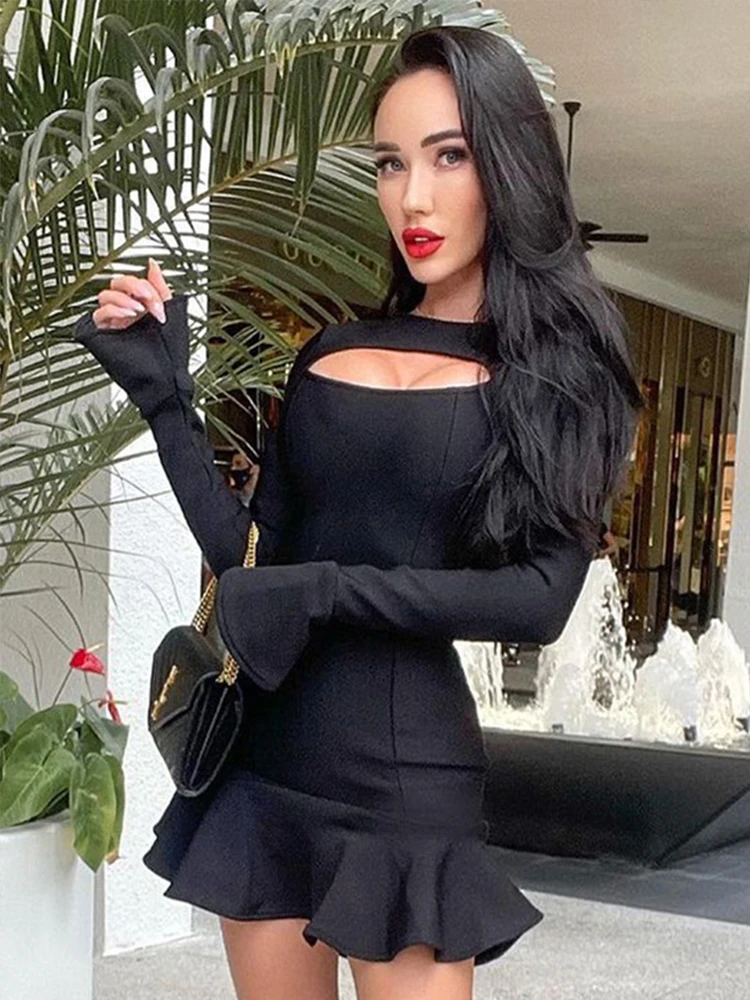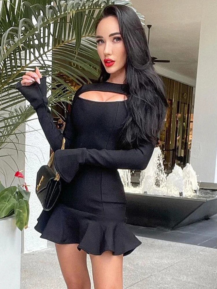 victoria’s vogue Party Dress Ruffles Hollow Out Flare Sleeve Sexy Bodycon Zipper Elegant Clubwear Fall Chic Mini Dresses For Women