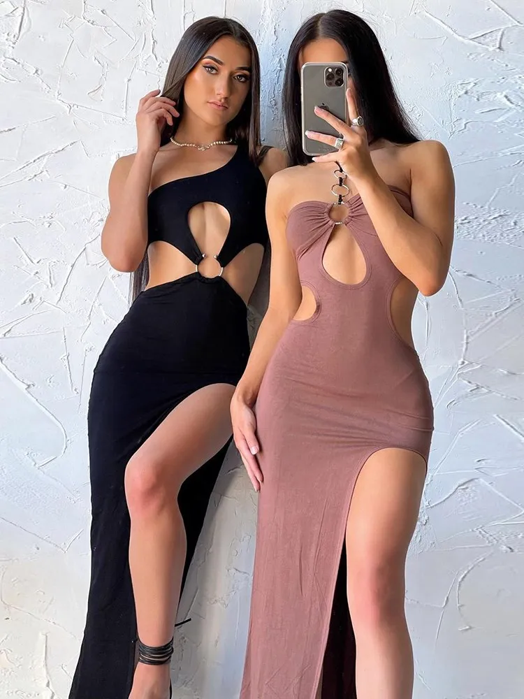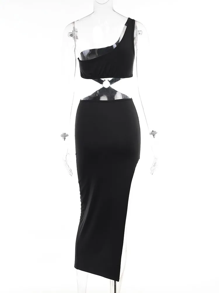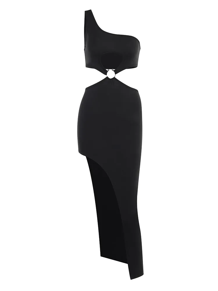 victoria’s vogue Party Midi Dresses Women Hollow Out One Shoulder Backless Circle Bodycon Nightclub Streetwear Holiday Female Vestidos