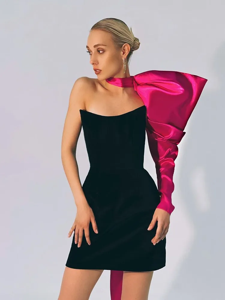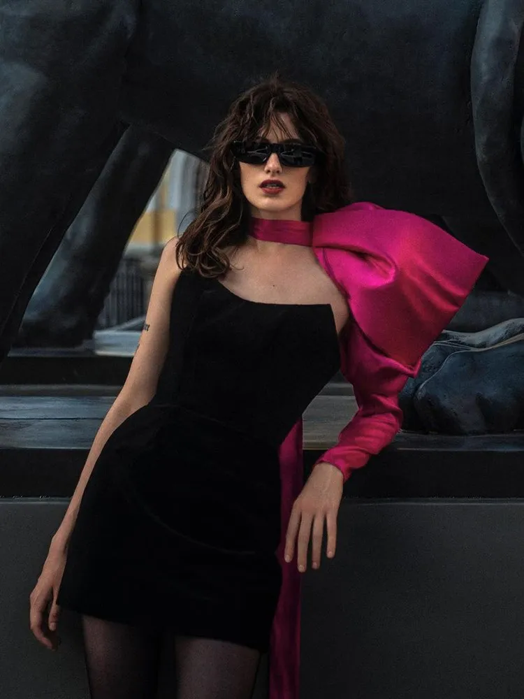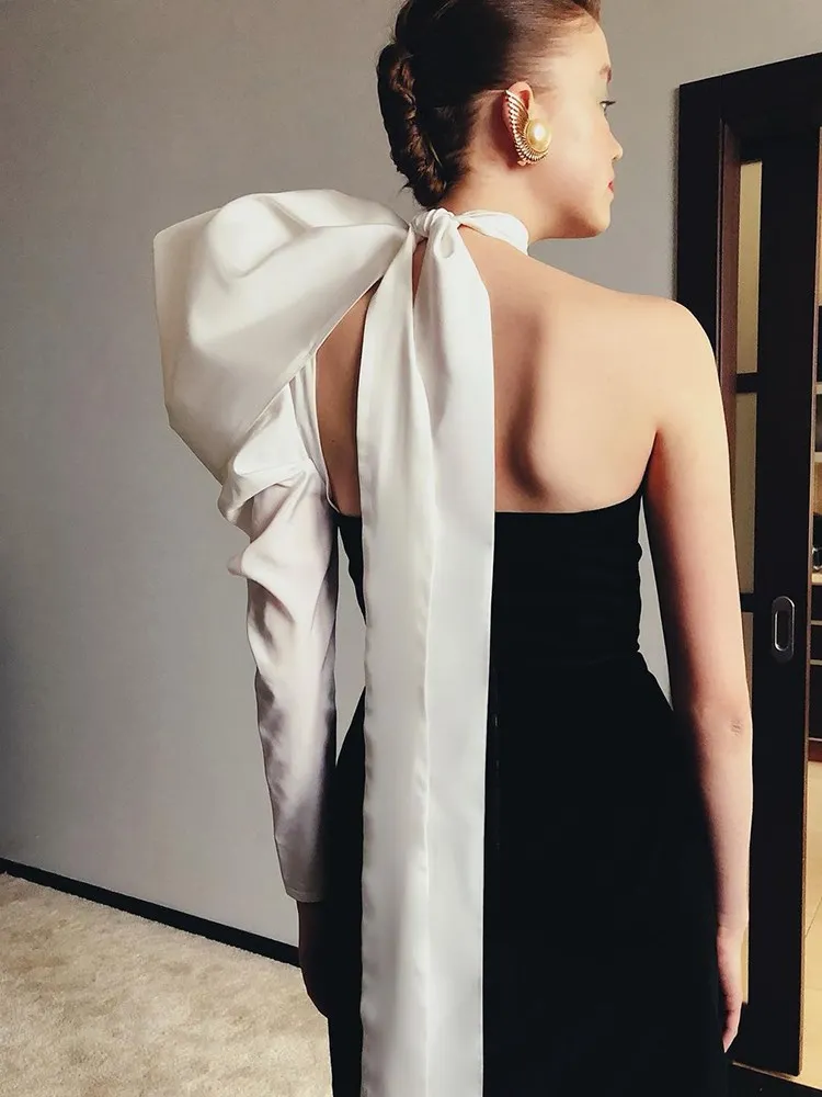 Нарядное, очень необычное платье, привлекающее внимание окружающих. Состоит из мини платья под бархат и рукава с гипертрофированными воланом. Надевается отдельно , завязывается на шее. Платье можно носить и без него , смотрится так же эффектно. Красиво оформлено декольте . Заказала размер S, на мои параметры 83-65-89 - село свободно. На рост 171 длина мини, рукав коротковат. Подойдёт на девушек ростом пониже. Материал приятный к телу, средней плотности. Мой инст: candy_sweet_blog