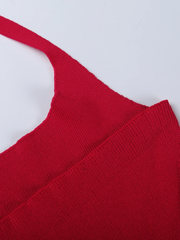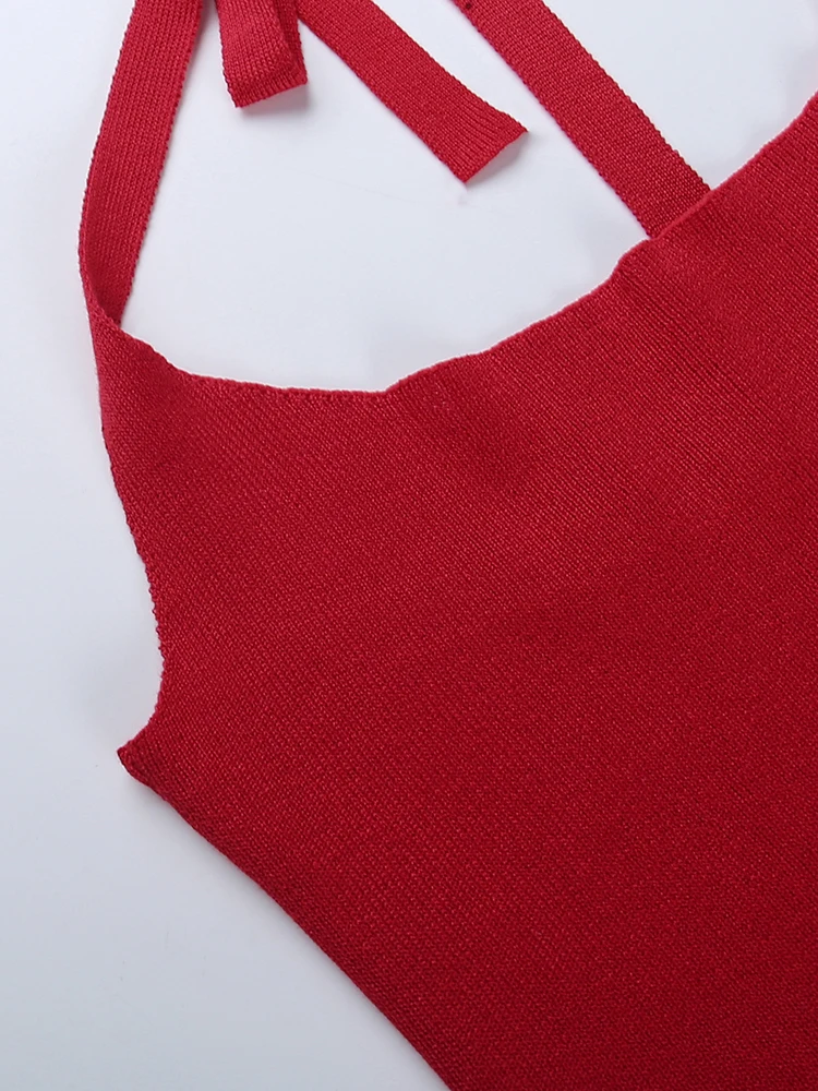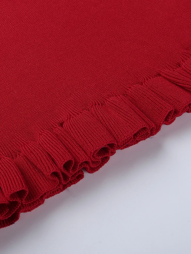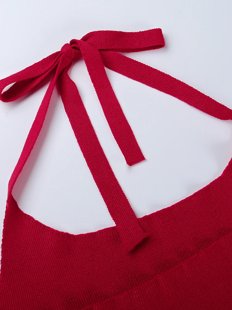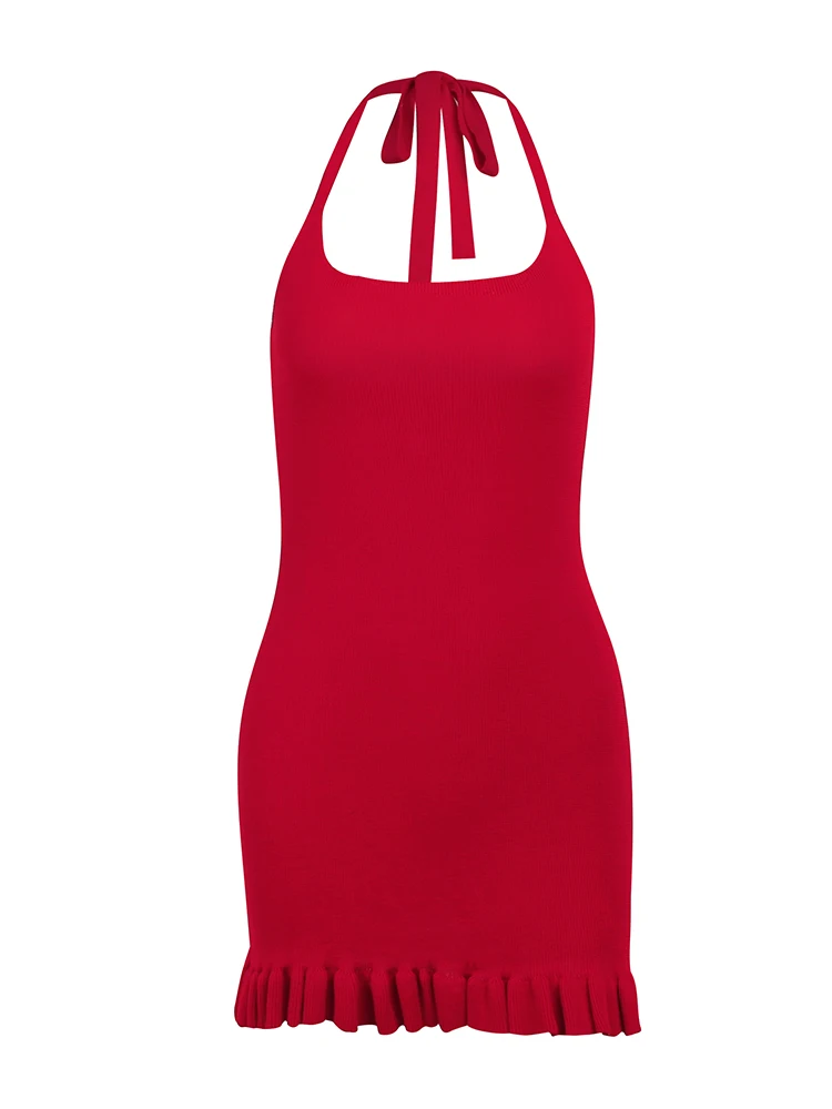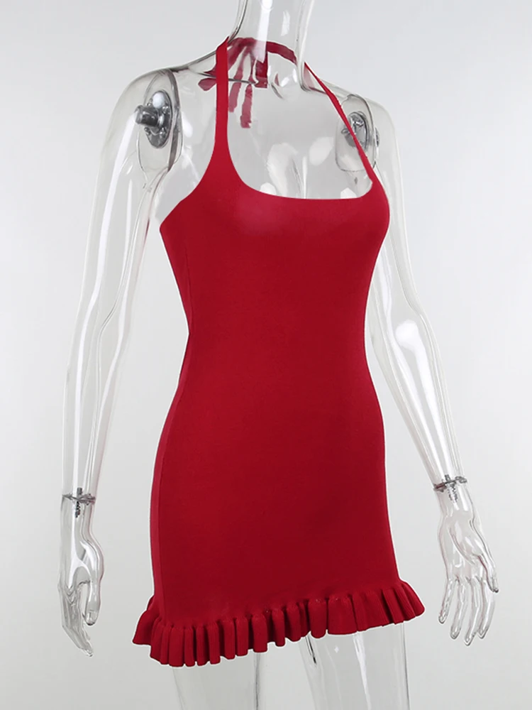 victoria’s vogue Partywear Knitted Dress Halter Sleeveless Sexy Women Ruffles Elegant Skinny Fold Bodycon Mini Dresses