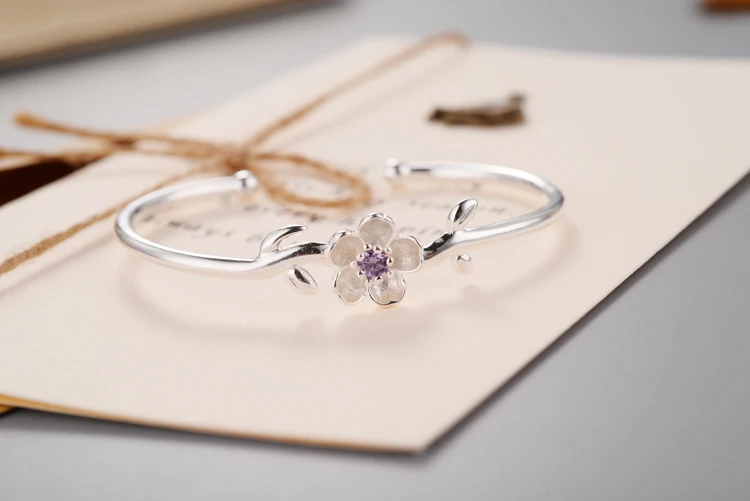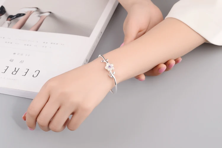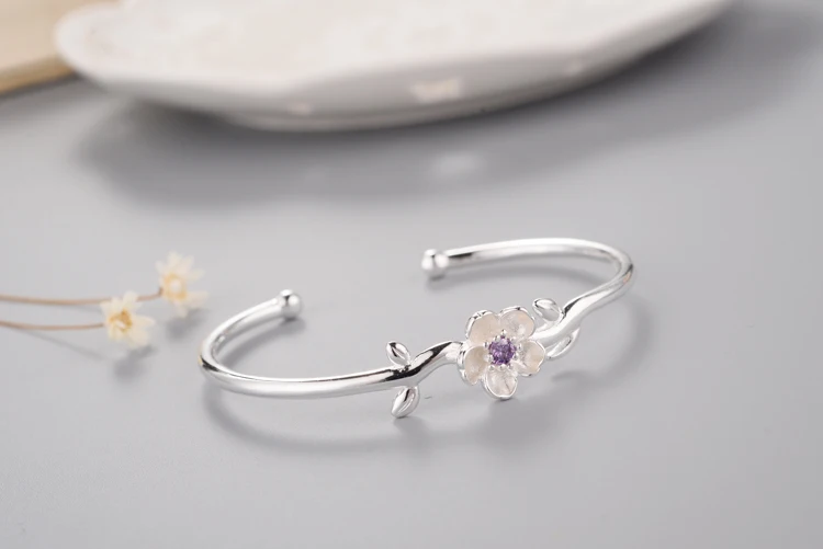 Victoria’s Vogue Personality New Art 925 Sterling Silver Jewelry Female Simple Plum Flower Branches High-Quality Popular Open Bracelet