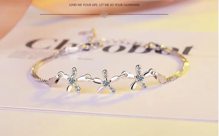 Victoria’s Vogue Personality Sweet Little Fresh Flowers 925 Sterling Silver Jewelry Female Fashion Simple Crystal Gift Bracelets