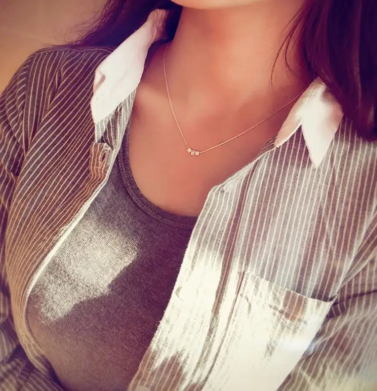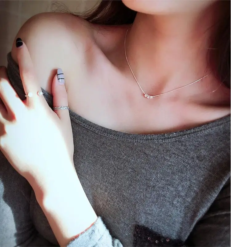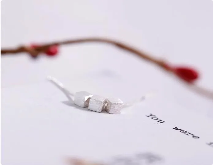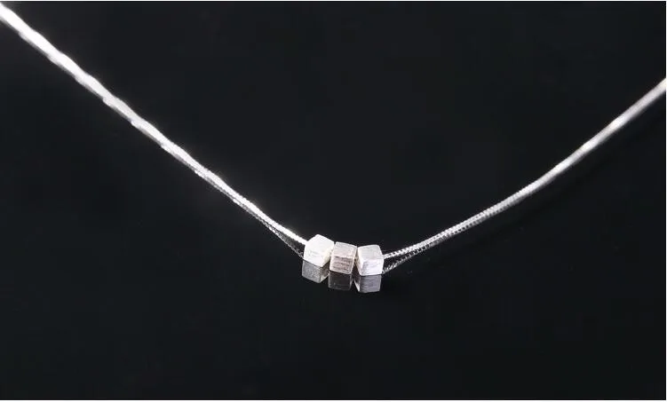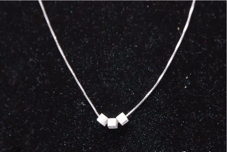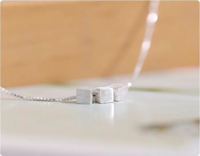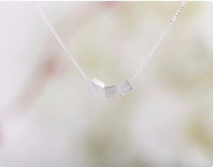 Victoria’s Vogue Personality Three-Dimensional Block Brushed 925 Sterling Silver Jewelry Fashion Clavicle Chain Pendant Necklaces