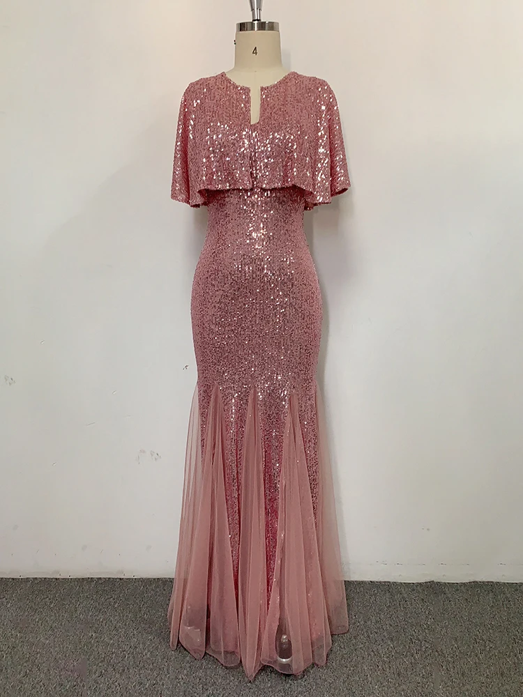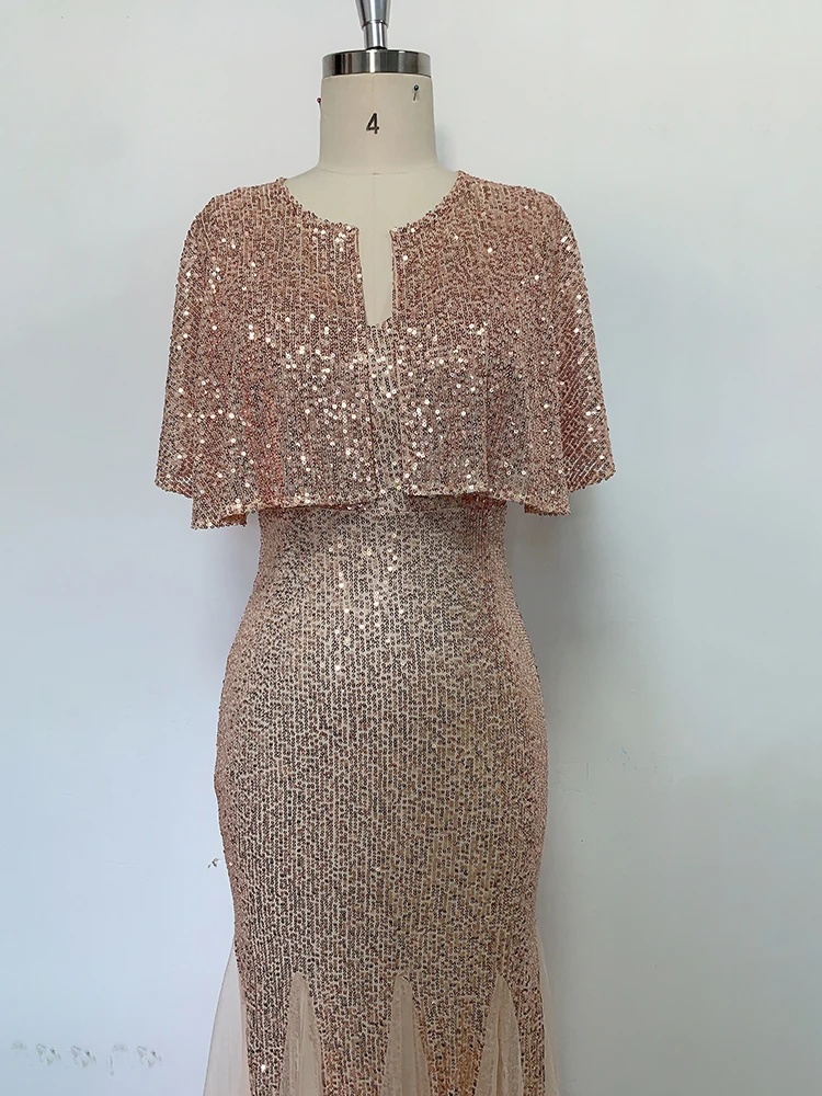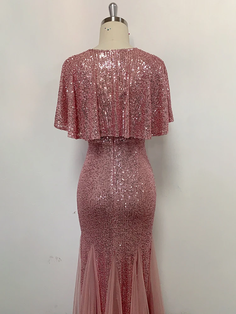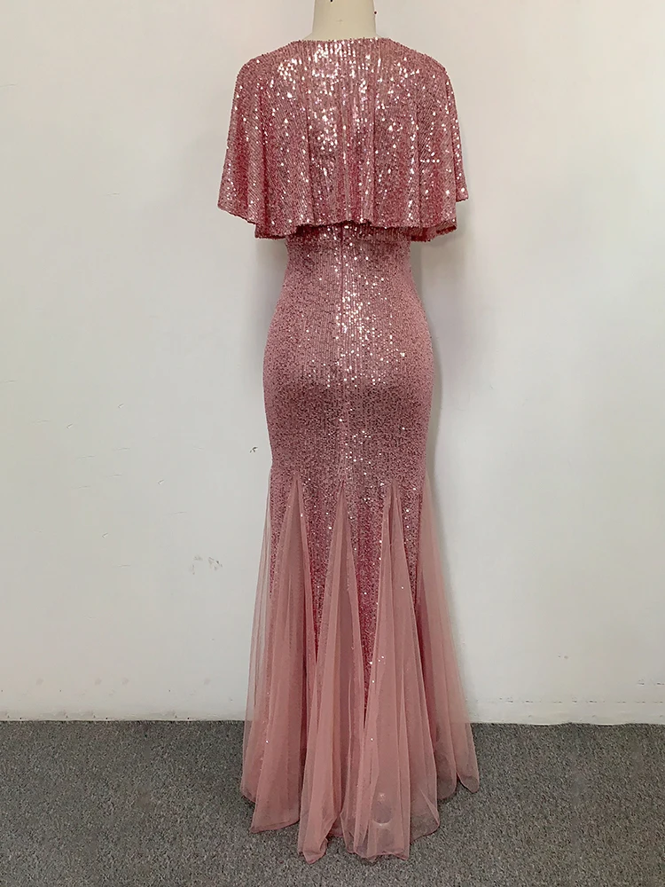 Victoria’s Vogue Plus Size V Neck Mermaid Dress With Shawl Long Formal Prom Party Gown Sequins Sleeveless Robe De Soriee Sexy Evening Vestido De