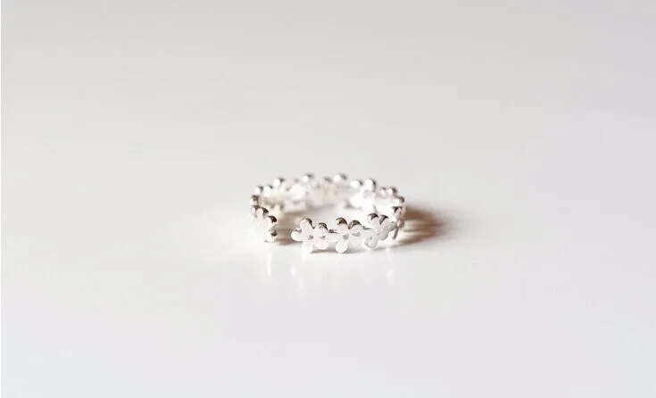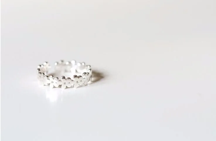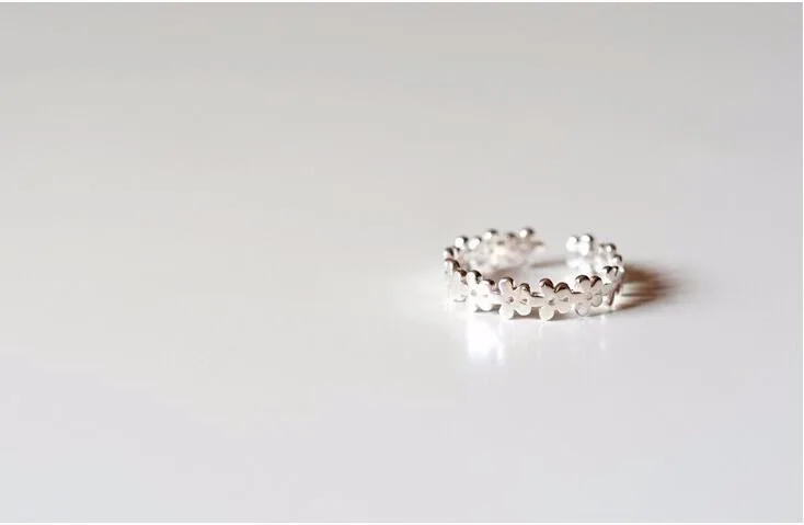 Victoria’s Vogue Popular Creative 925 Sterling Silver Jewelry Cute Temperament Flowers Hollowed Fashion Simple Opening Rings