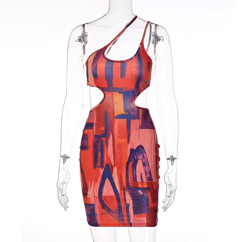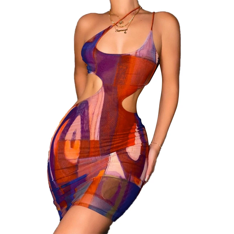 victoria’s vogue Print Halter Sleeveless Hollow Out Sexy Mini Dress 2021 Summer Fall Bodycon Party Club Elegant Streetwear Outfit Y2K