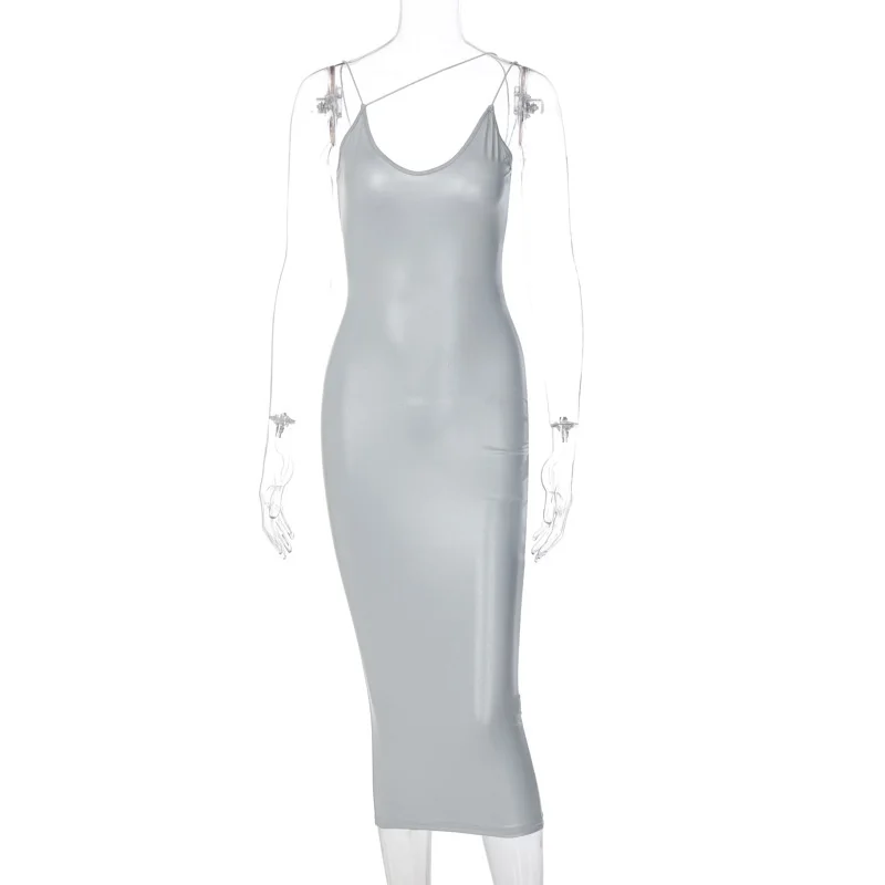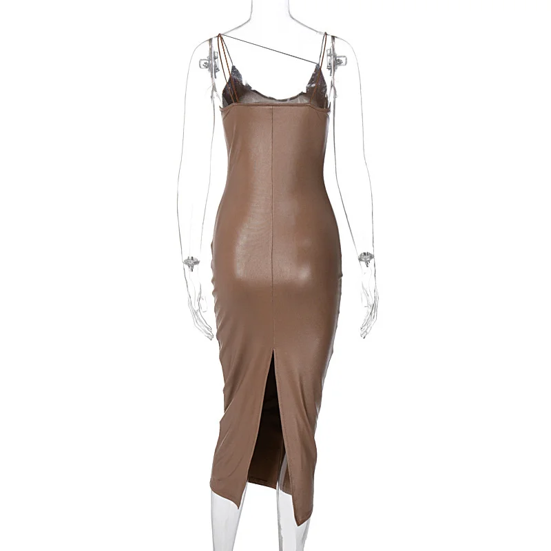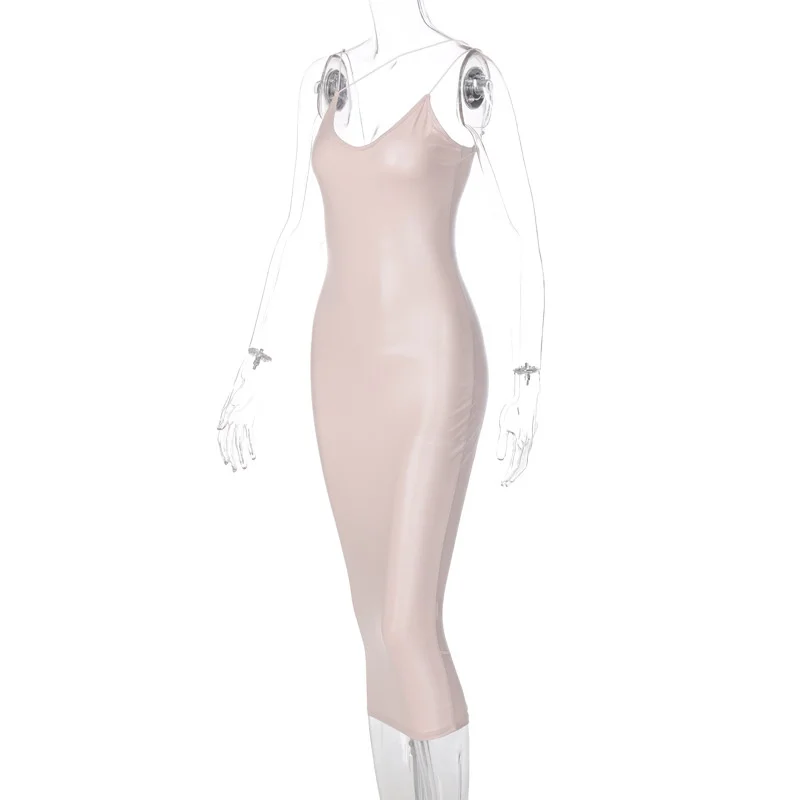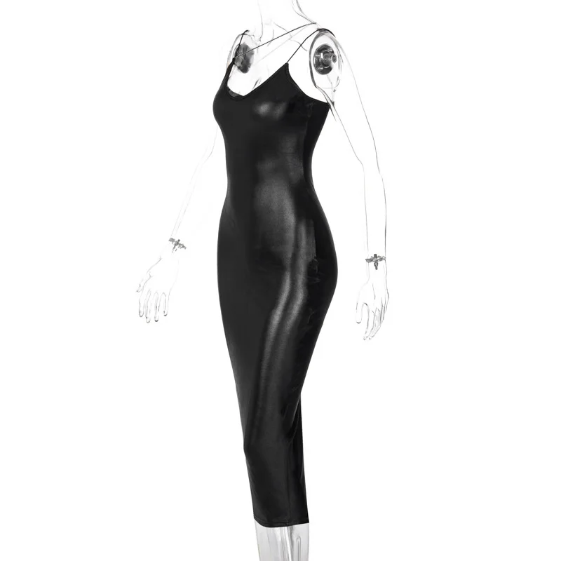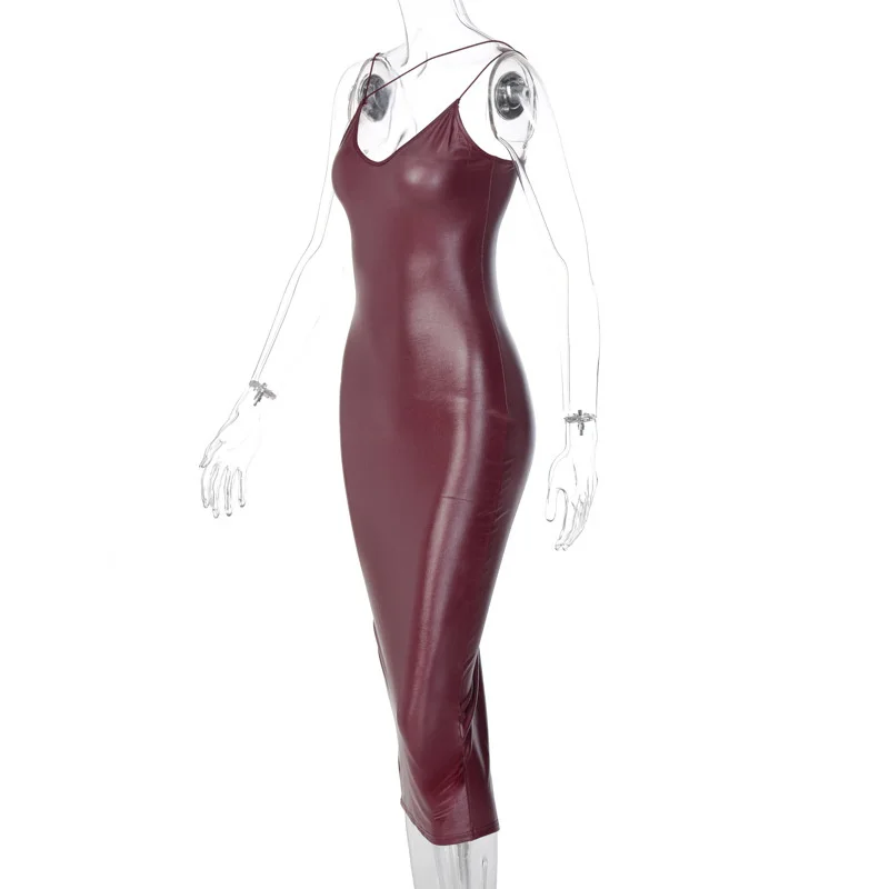 victoria’s vogue PU Leather Midi Dress For Women Spaghetti Strap Sleeveless Bodycon Dresses Ladies Fashion Party Elegant Vestidos