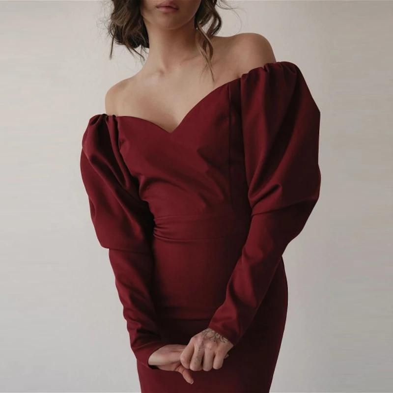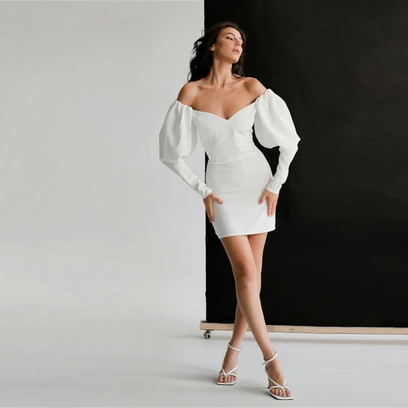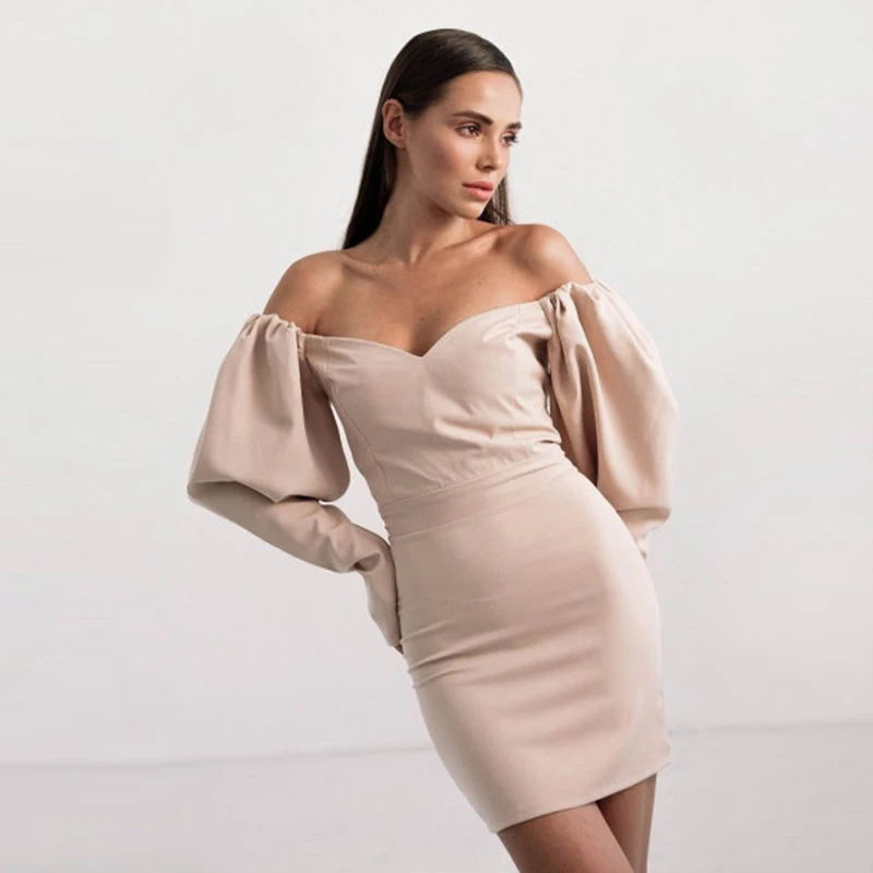 victoria’s vogue Puff Sleeve Bodycon Mini Dress Off The Shoulder Party Club Festival Elegant Dress Sexy Strapless 2021 Fashion Female