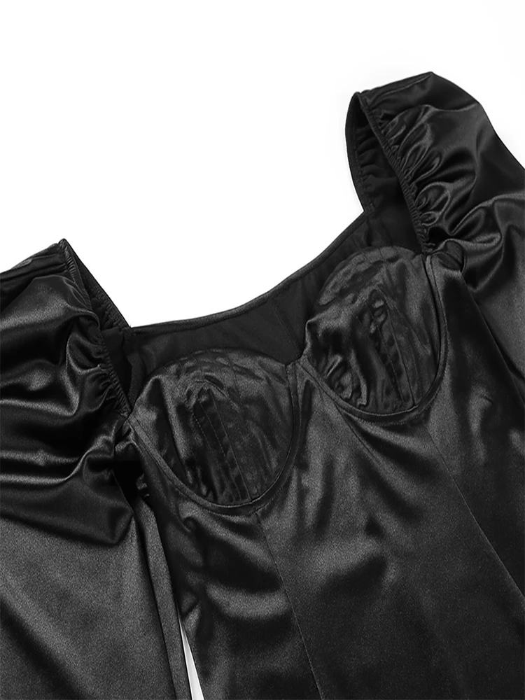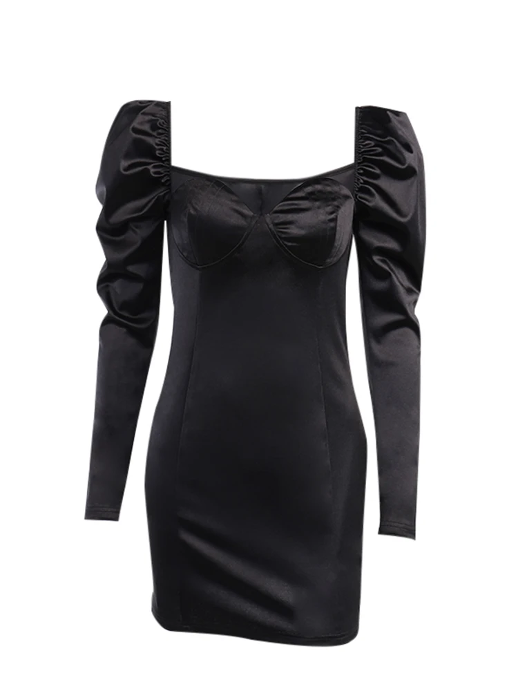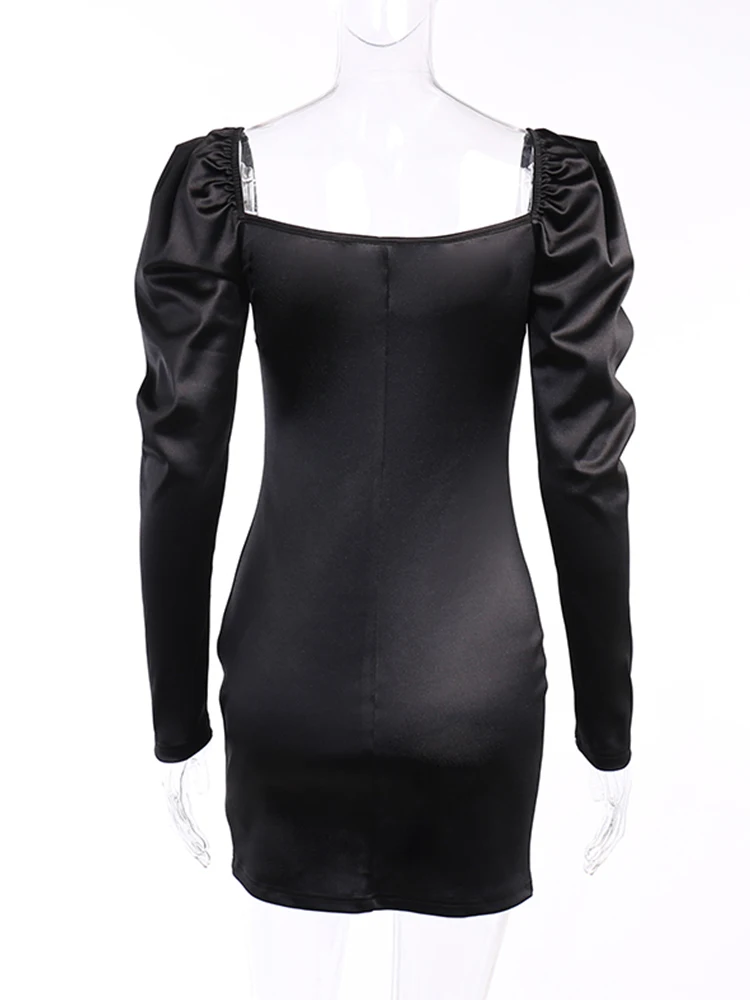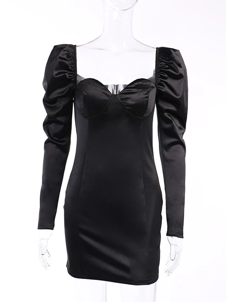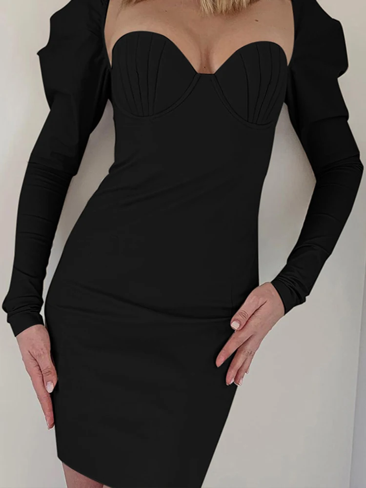 victoria’s vogue Puff Sleeve Mini Dress Square Collar Sexy Folds Fall Bodycon Party Elegant Office Lady Clubwear Dress 2022