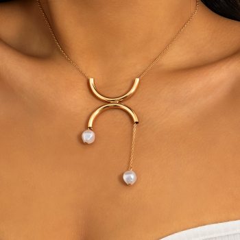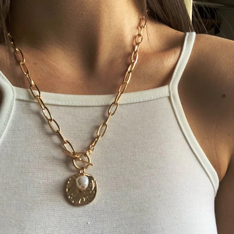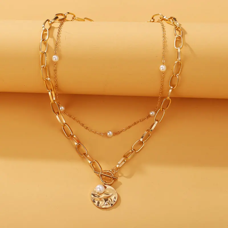 victoria’s vogue Punk Coin Chain Necklace for Women 2Pcs/set Gold Color Pearl Bead Choker Gothic Multilayer Pendant Necklaces Jewelry Party