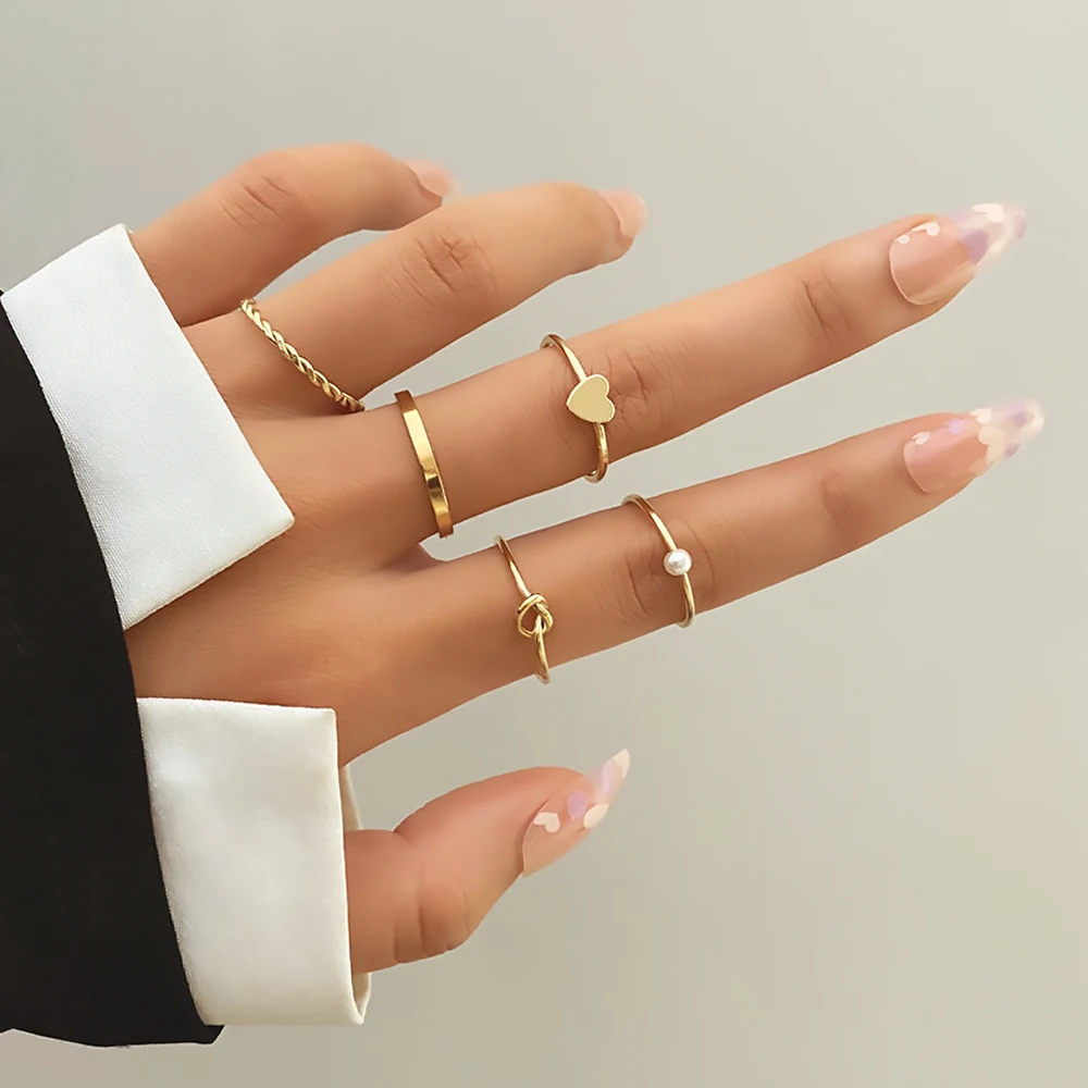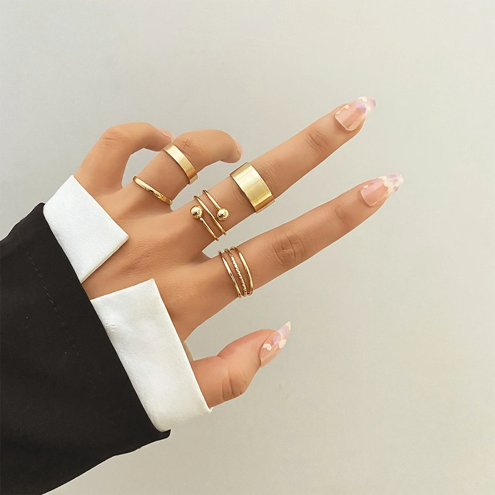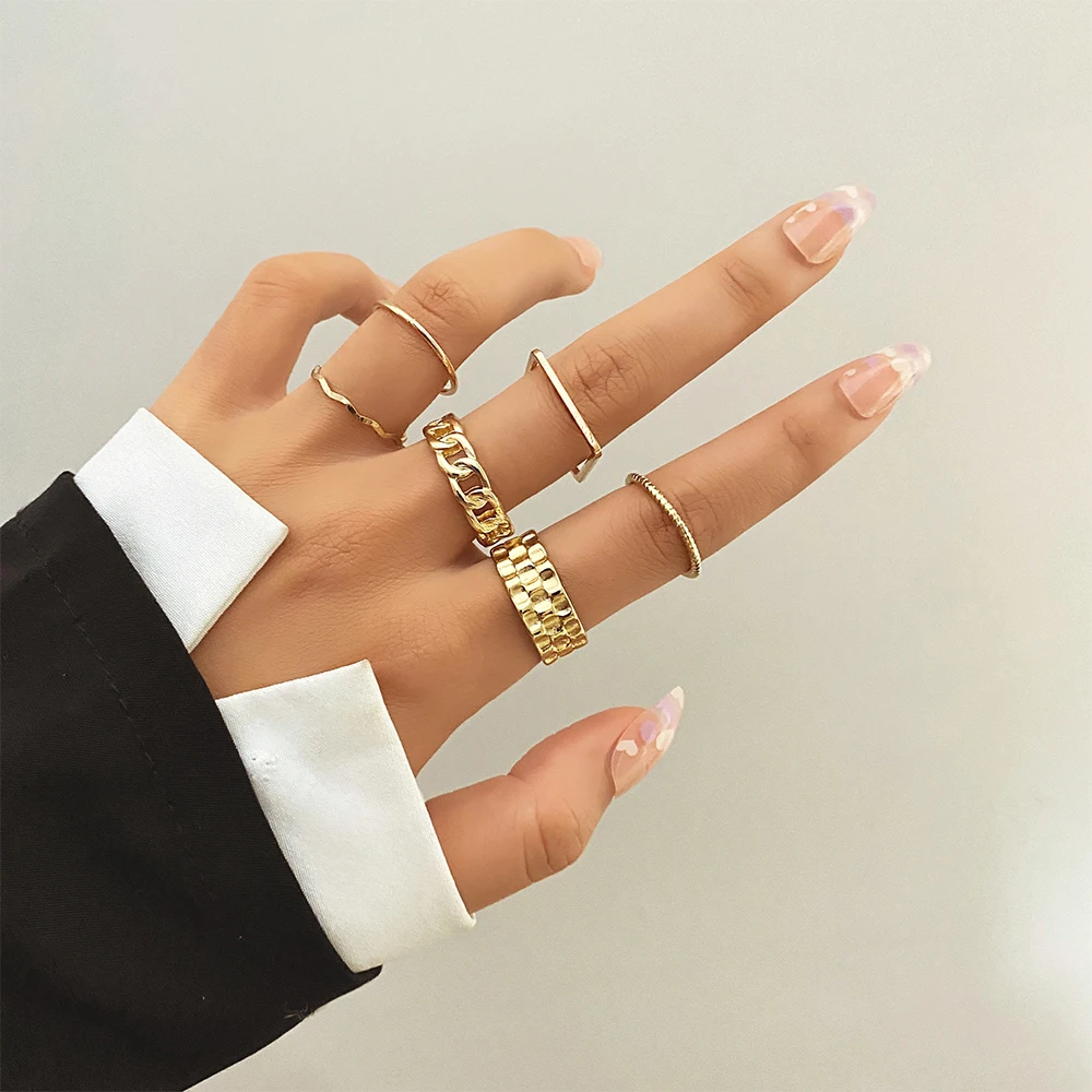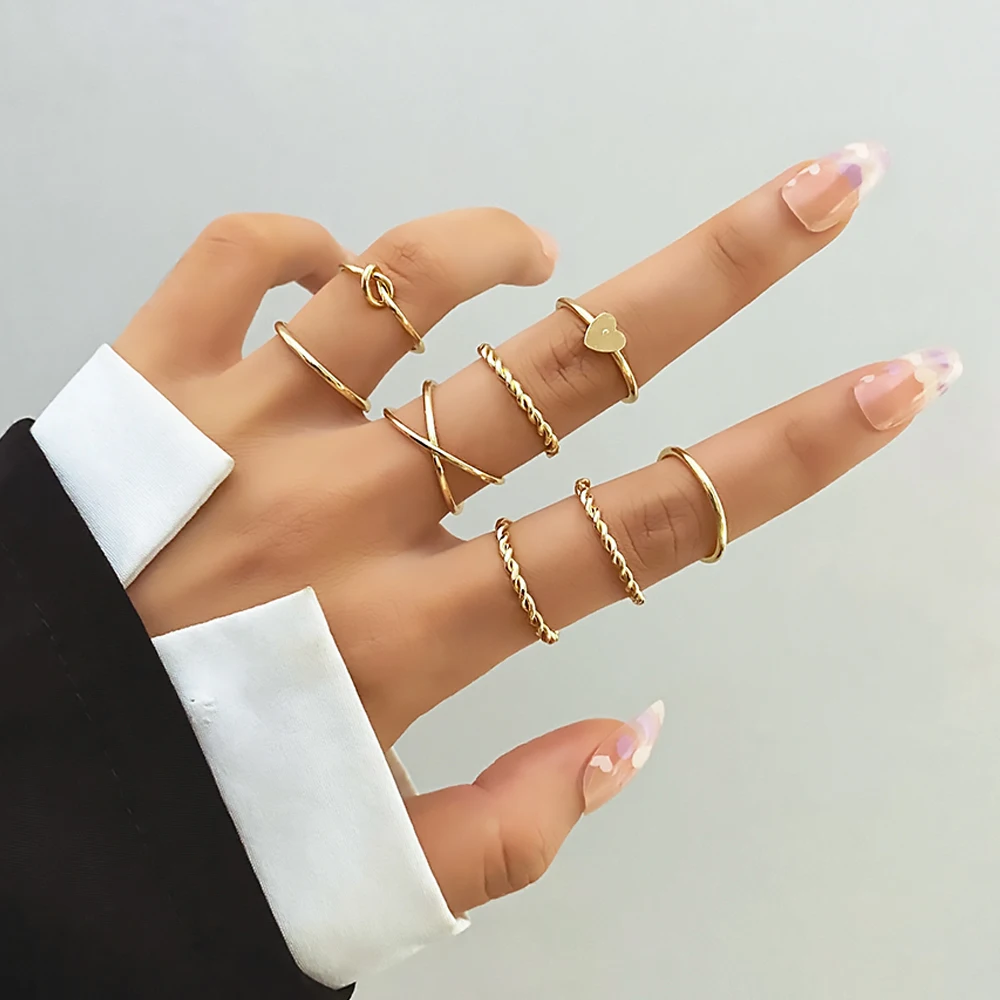 victoria’s vogue Punk Gold Geometric Round Love heart Rings Set for Women Girls Fashion Twist Open Joint Ring 2022 Female Jewelry Gift