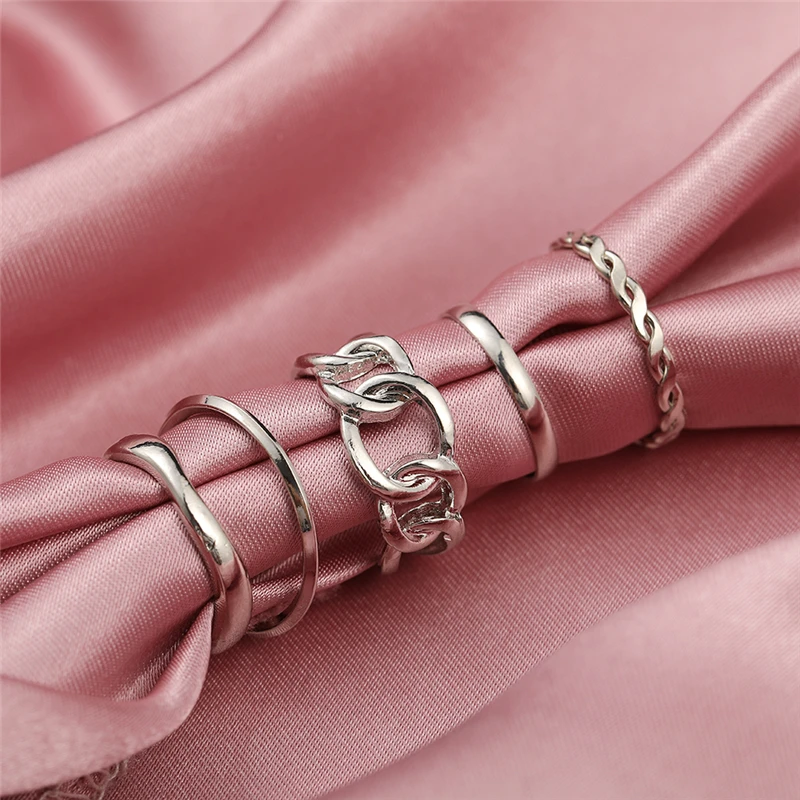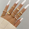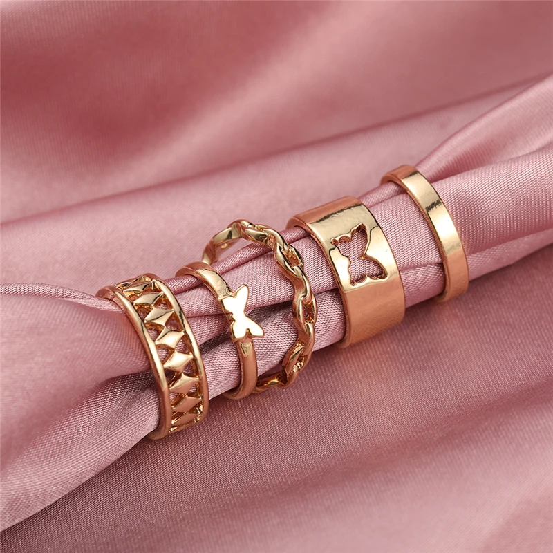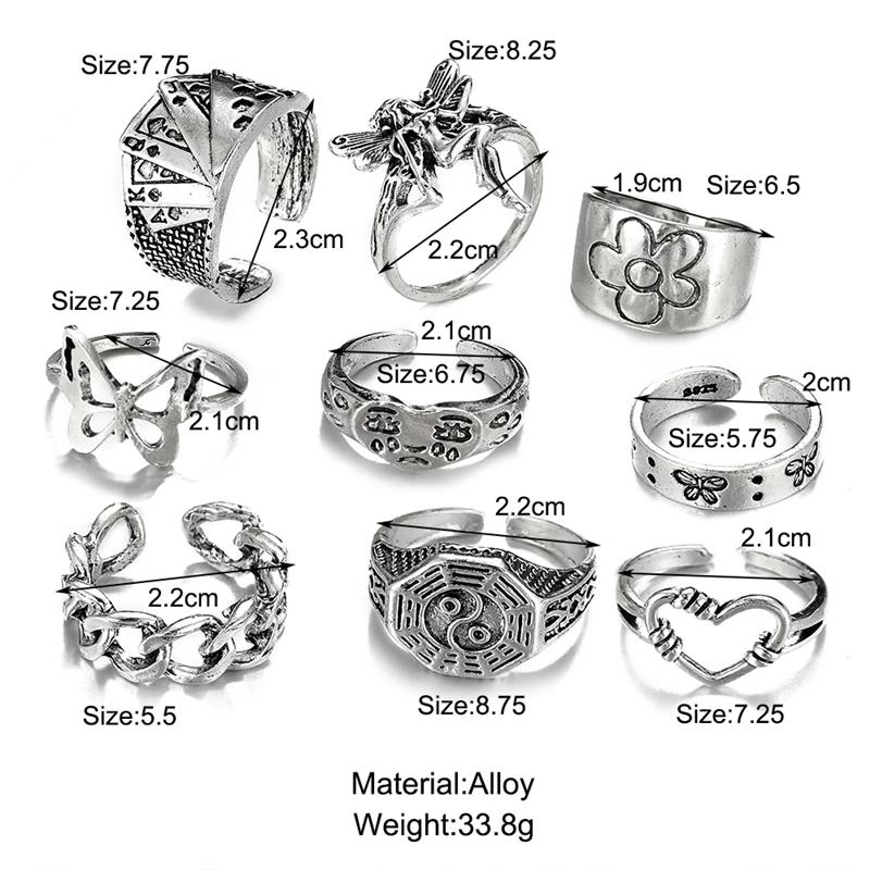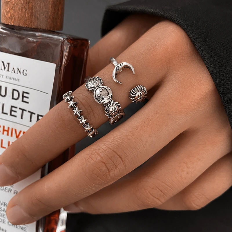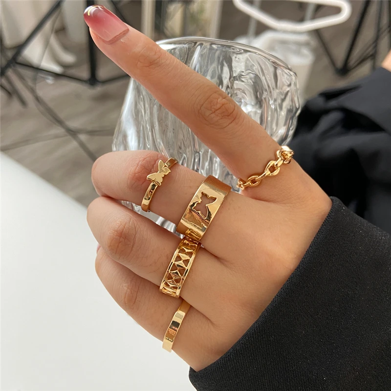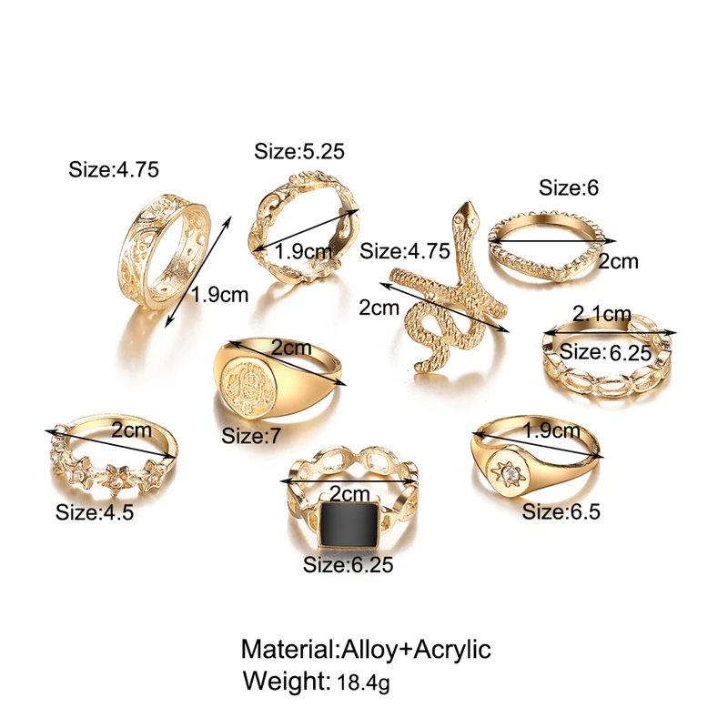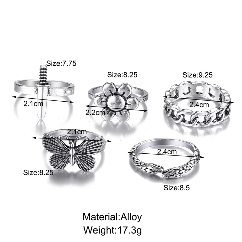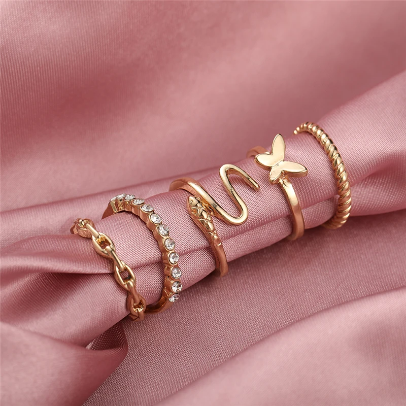victoria’s vogue Punk Retro Gold Silver Color Animal Snake Rings Set for Women Gothic Black Square Butterfly Chain Ring Jewelry