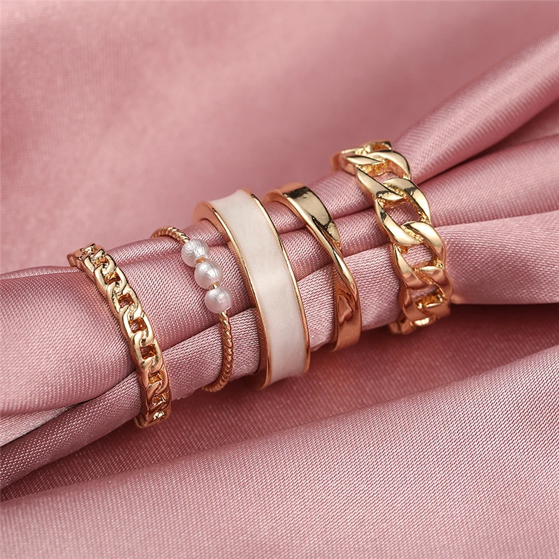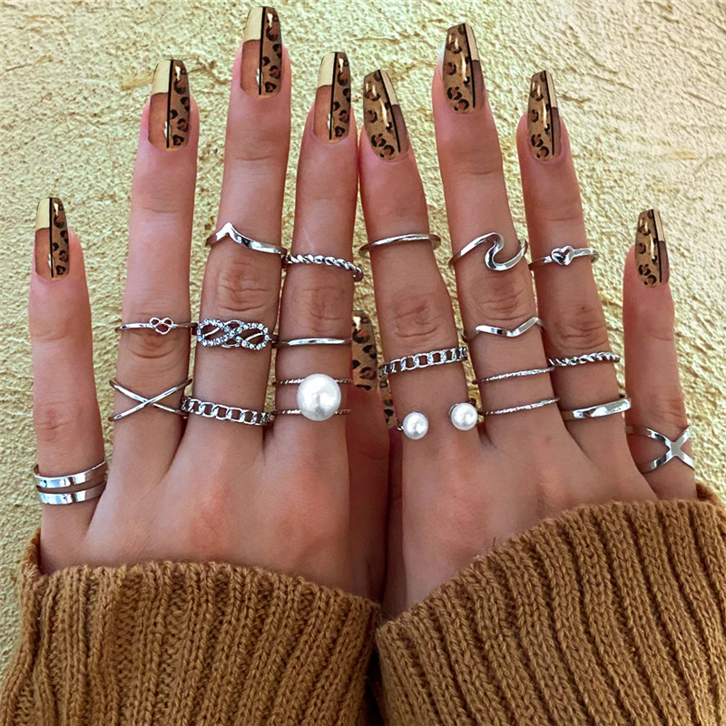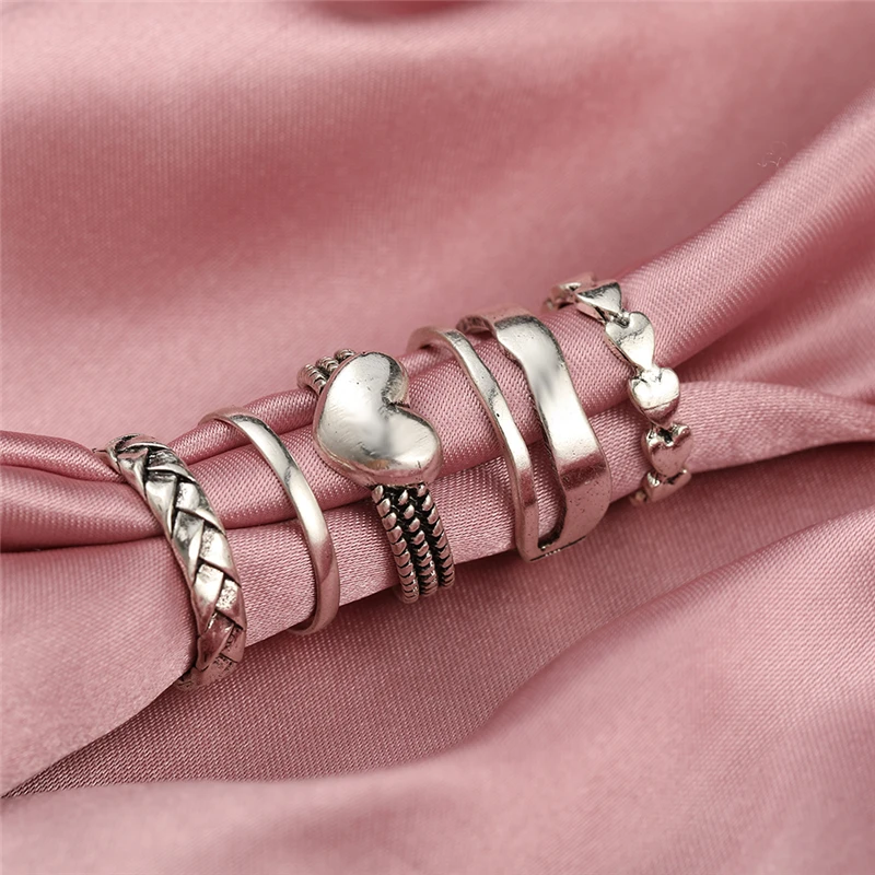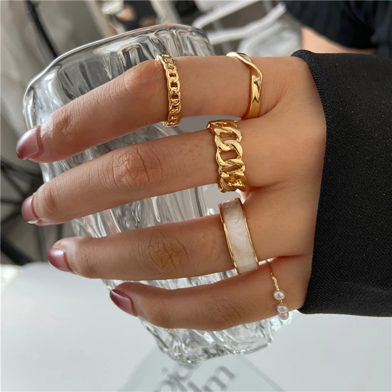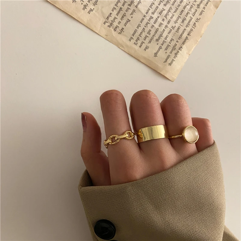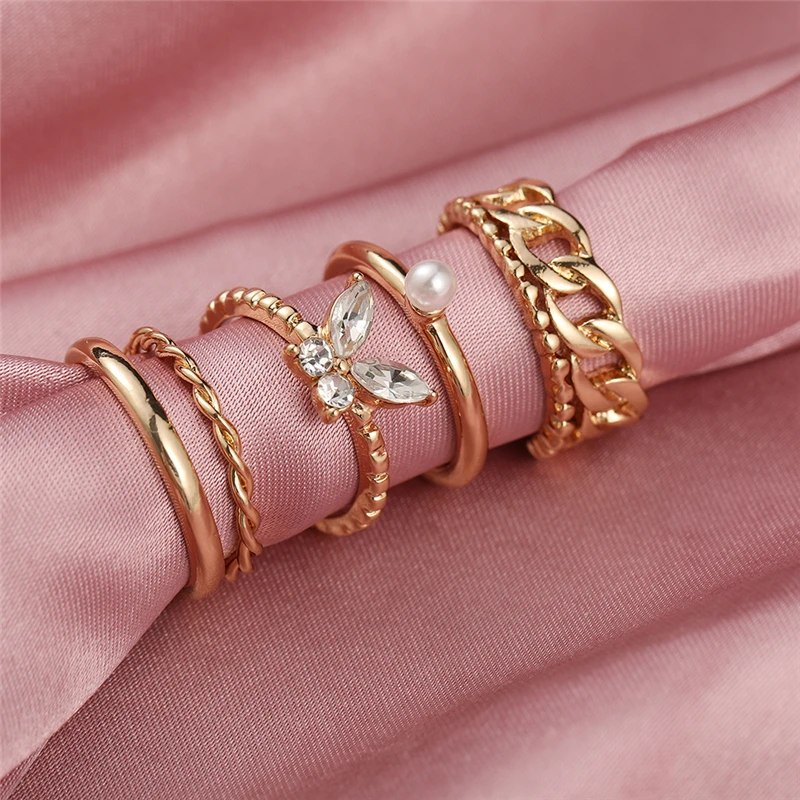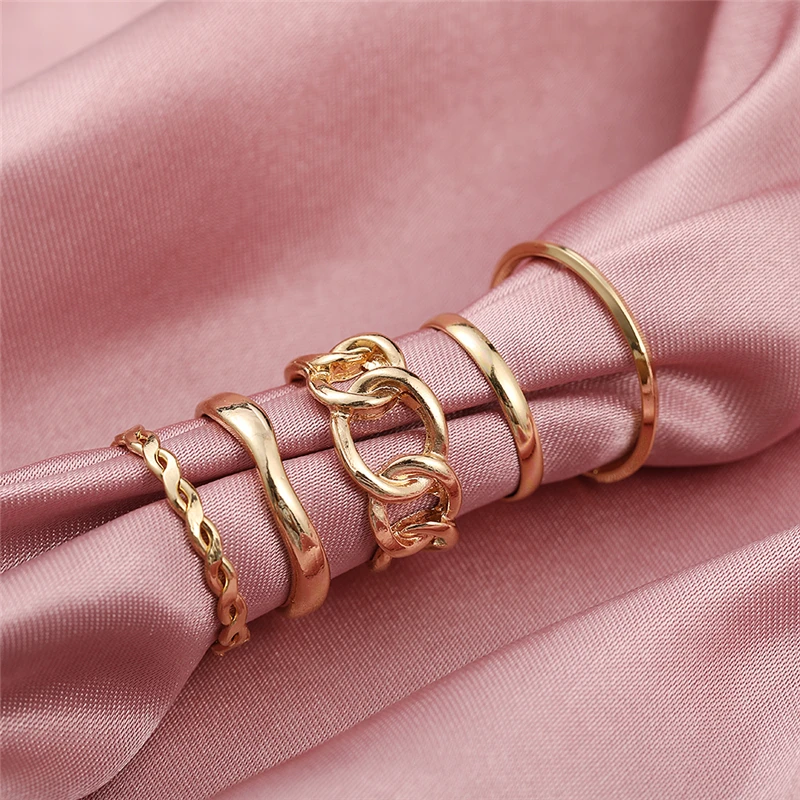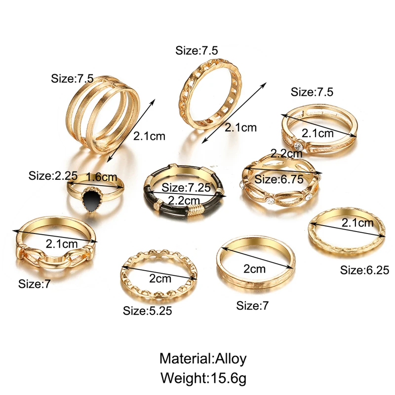 victoria’s vogue Punk Retro Gold Silver Color Animal Snake Rings Set for Women Gothic Black Square Butterfly Chain Ring Jewelry