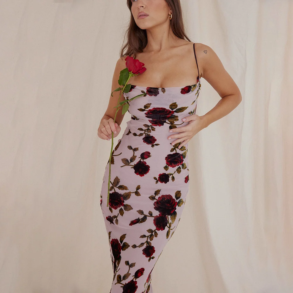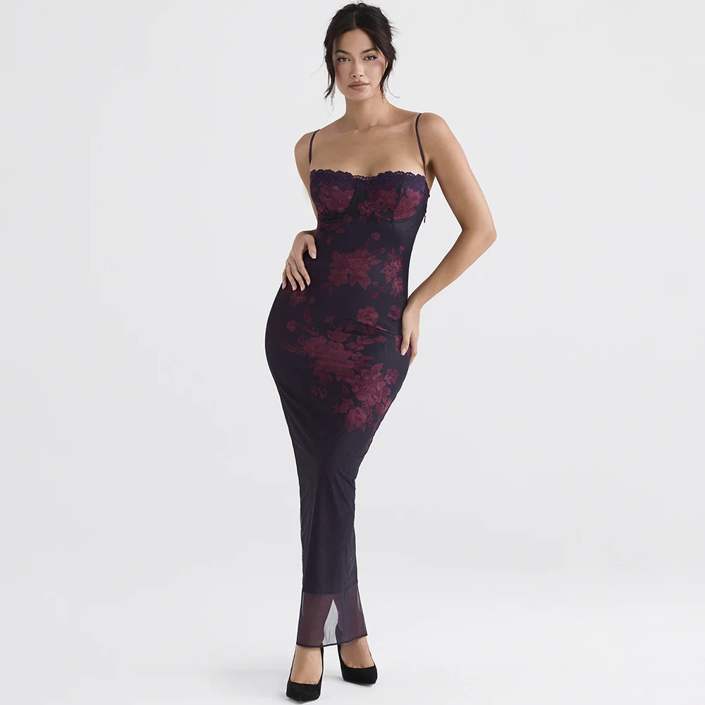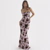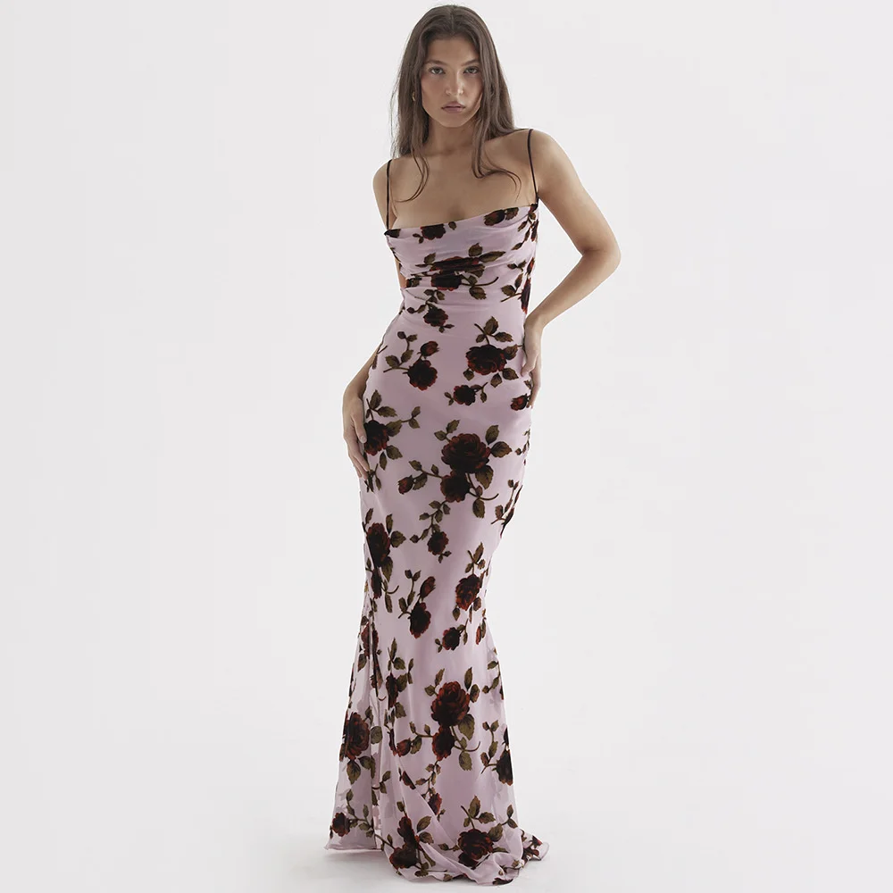 Victoria’s Vogue Purple Print Sexy Long Fishtail Dress For Women Robe 2023 New Spaghetti Strap Sleeveless Backless Ruched Maxi Dress