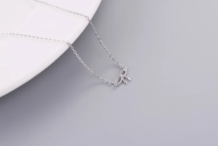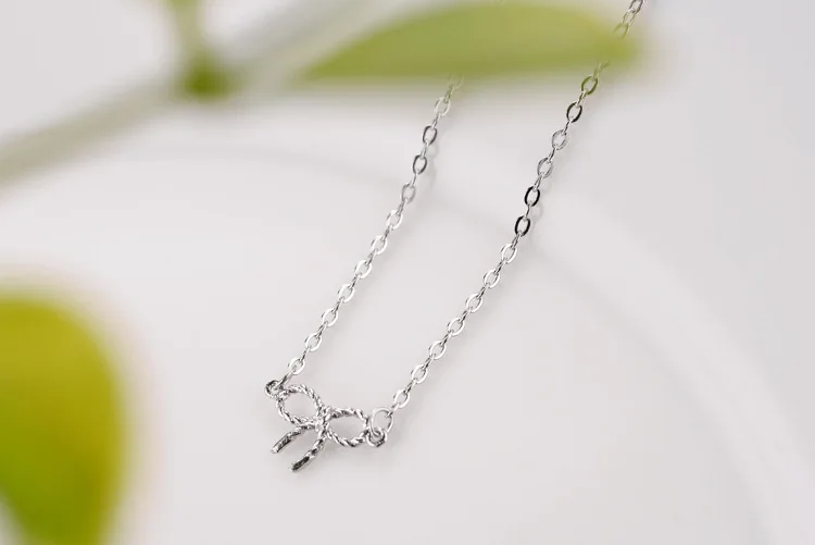 victoria’s vogue Real 925 Sterling Silver bowknot Pendant Necklaces Minimalist Fine Jewelry For Women Party Accessories