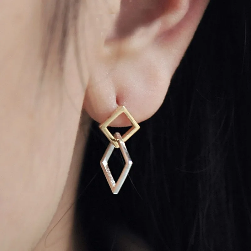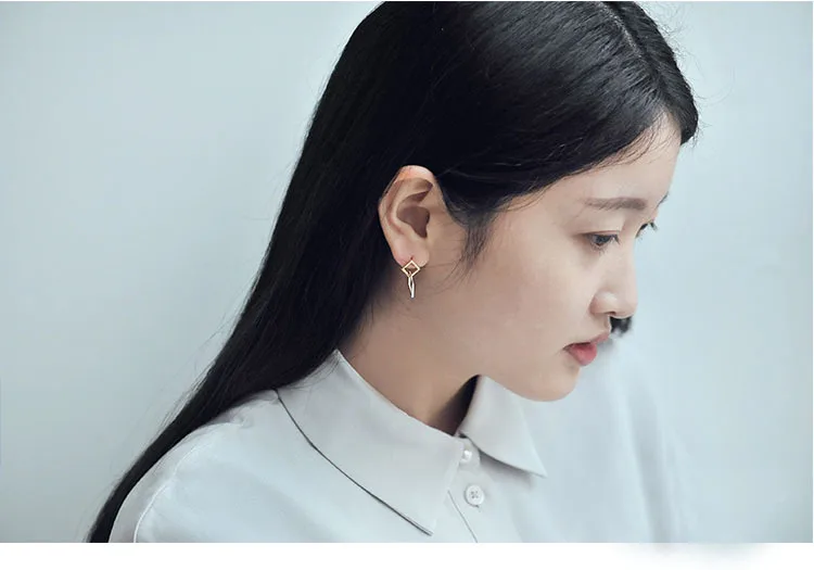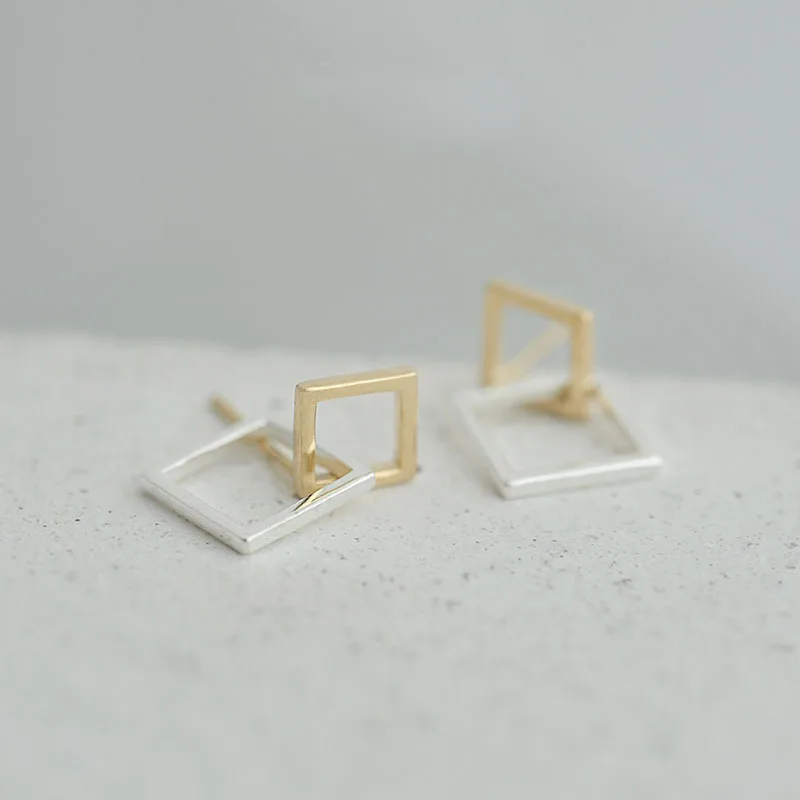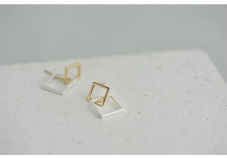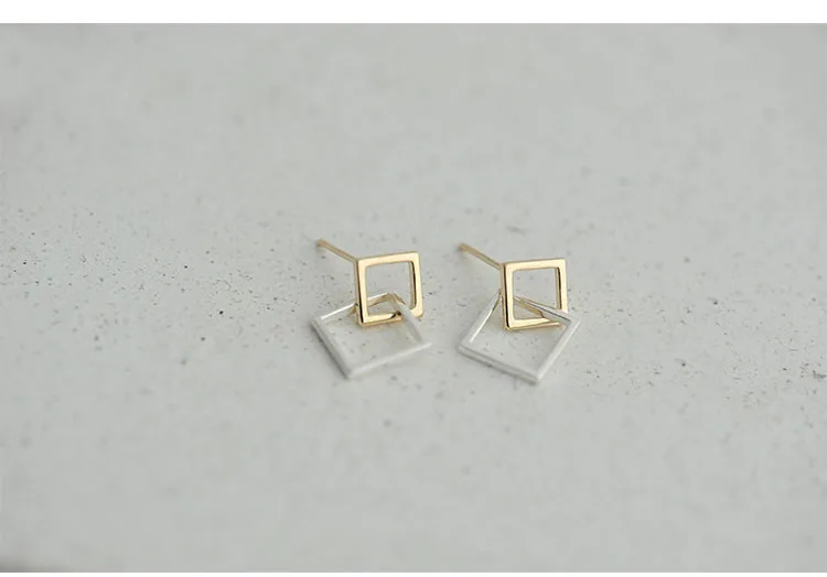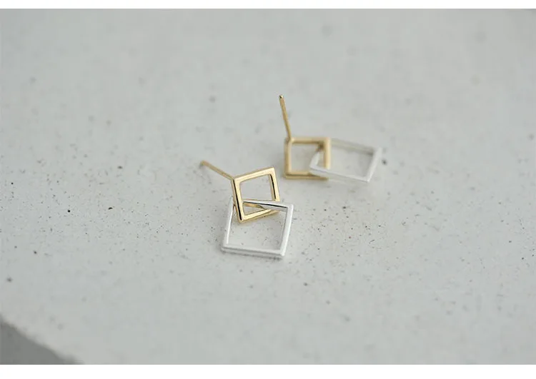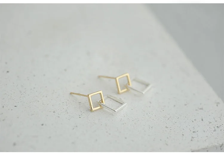 Victoria’s Vogue Real 925 Sterling Silver Double Square Earrings for Women Girls Gift Hot Fashion Sterling-Silver-Jewelry Women Earrings