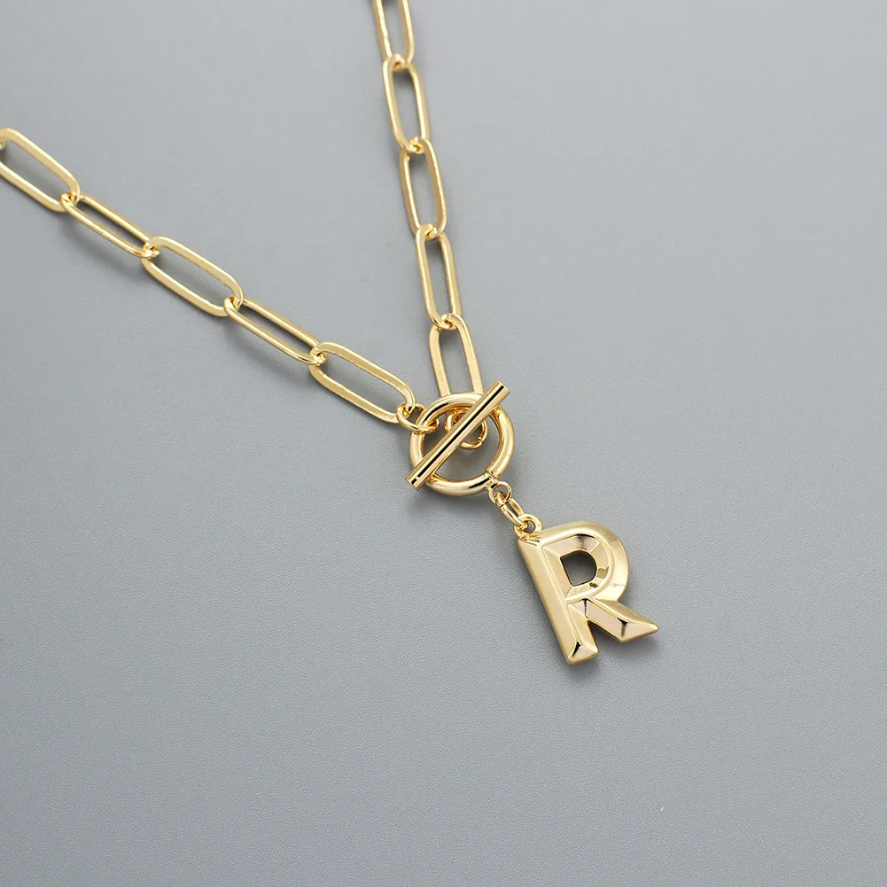 Real Gold Plated Copper Initial Necklace for Women & Girl