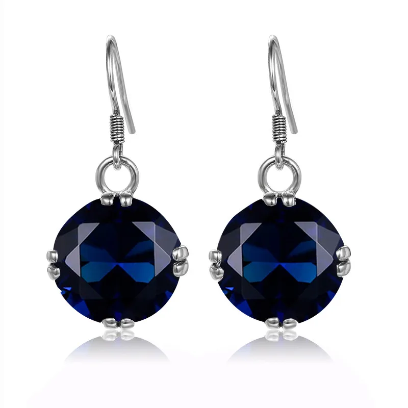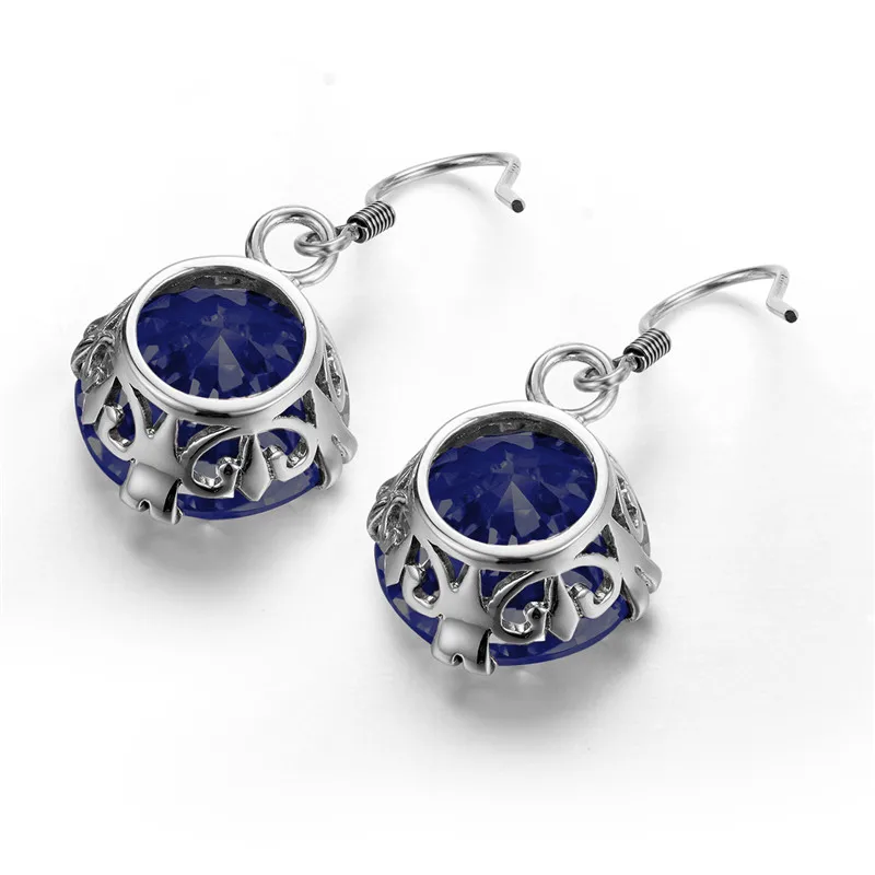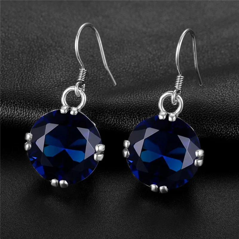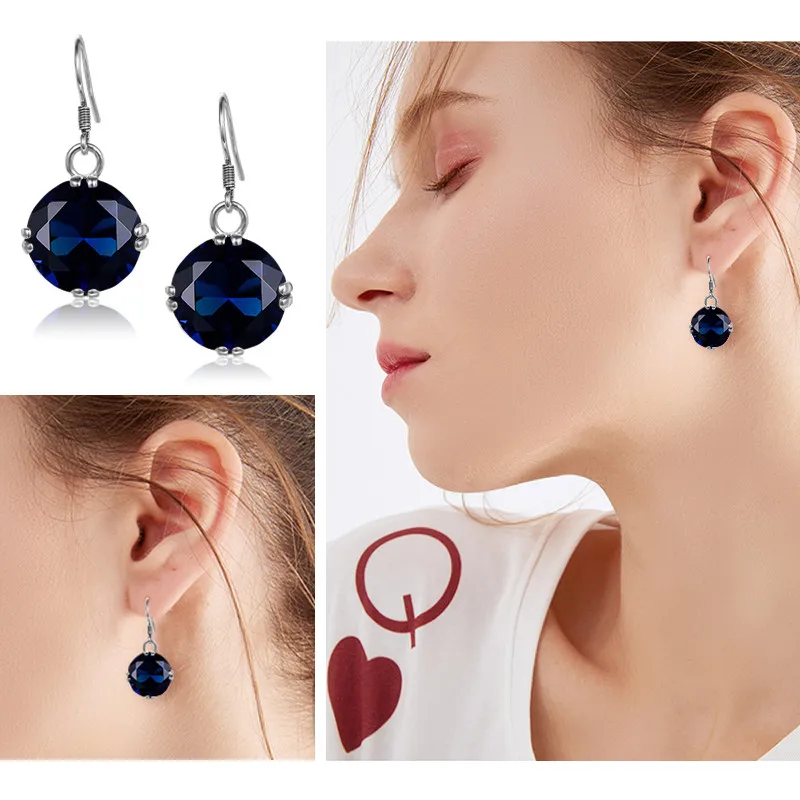 victoria’s vogue Blue Silver Earrings 925 Round Gemstone Vintage Earring Fine Jewellry Original Crystal Women Pendientes